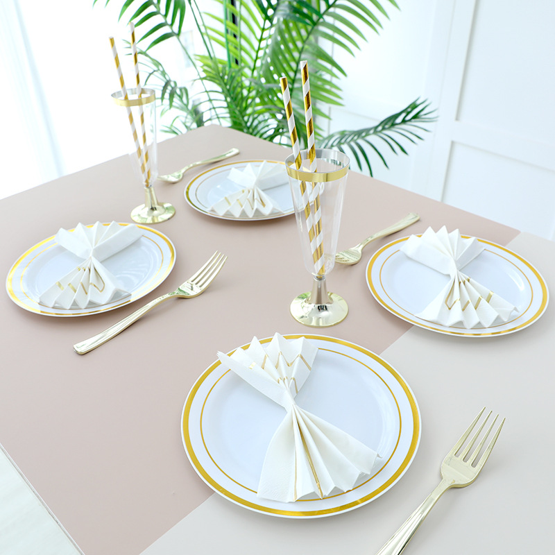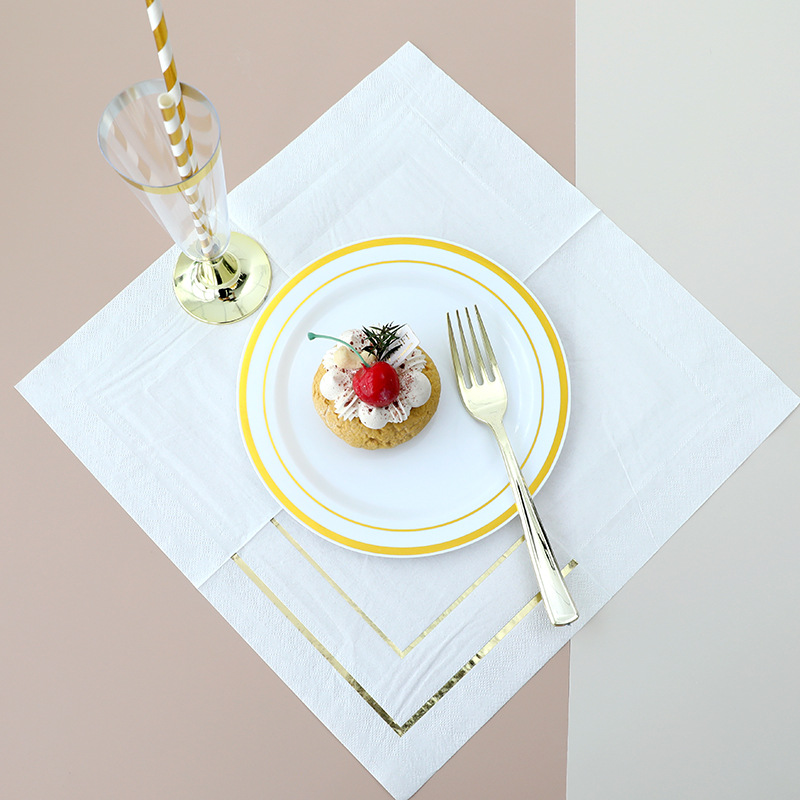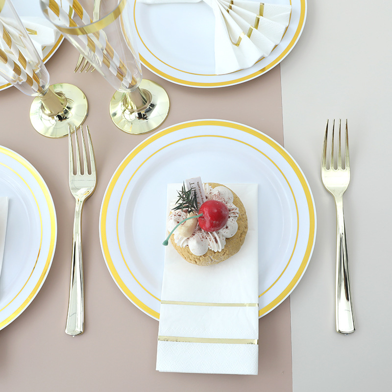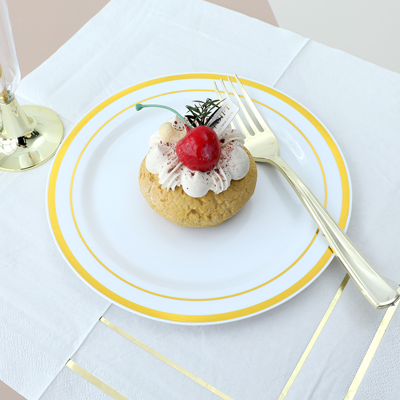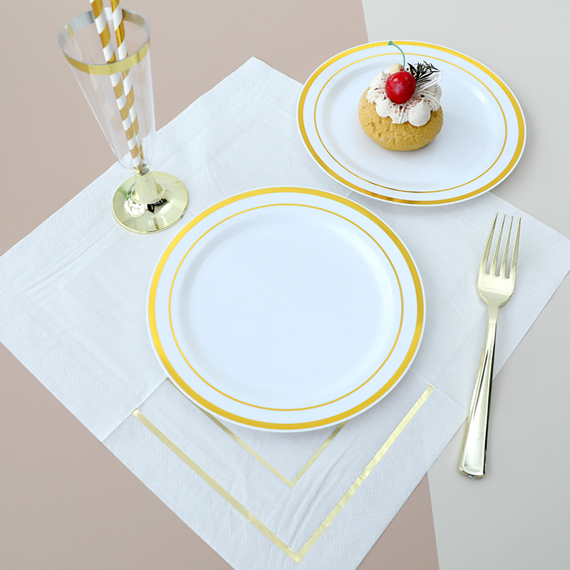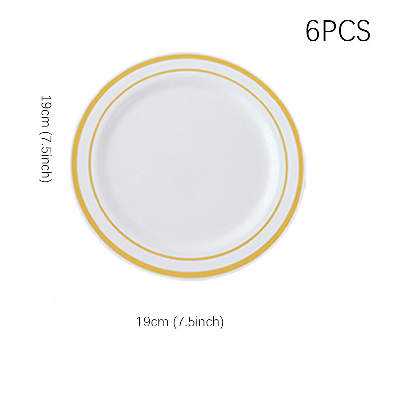 7.5 인치 일회용 생일 파티 식기 라운드 플라스틱 디너 플레이트 황금 식품 등급 PS 플레이트 재고 도매