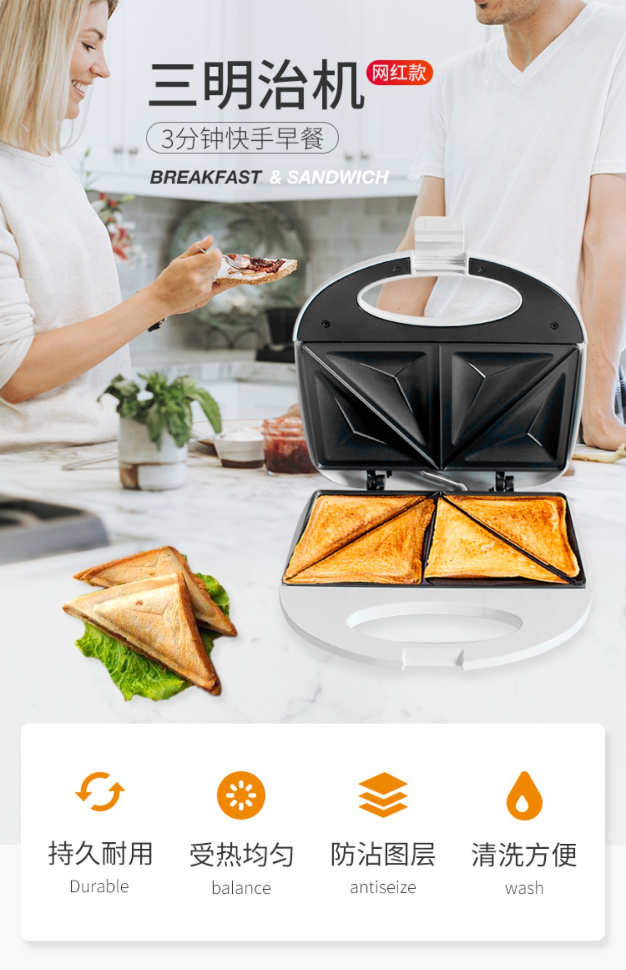 • 싱글 샌드위치 플레이트 [15분 안에 타이머 설정 가능]