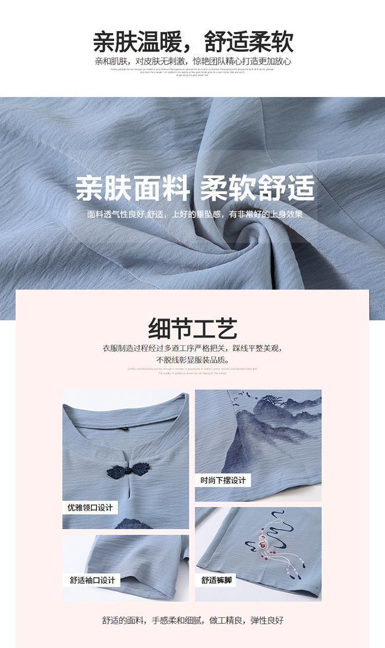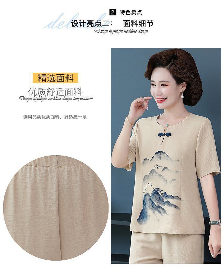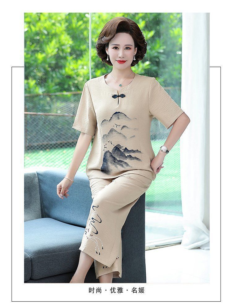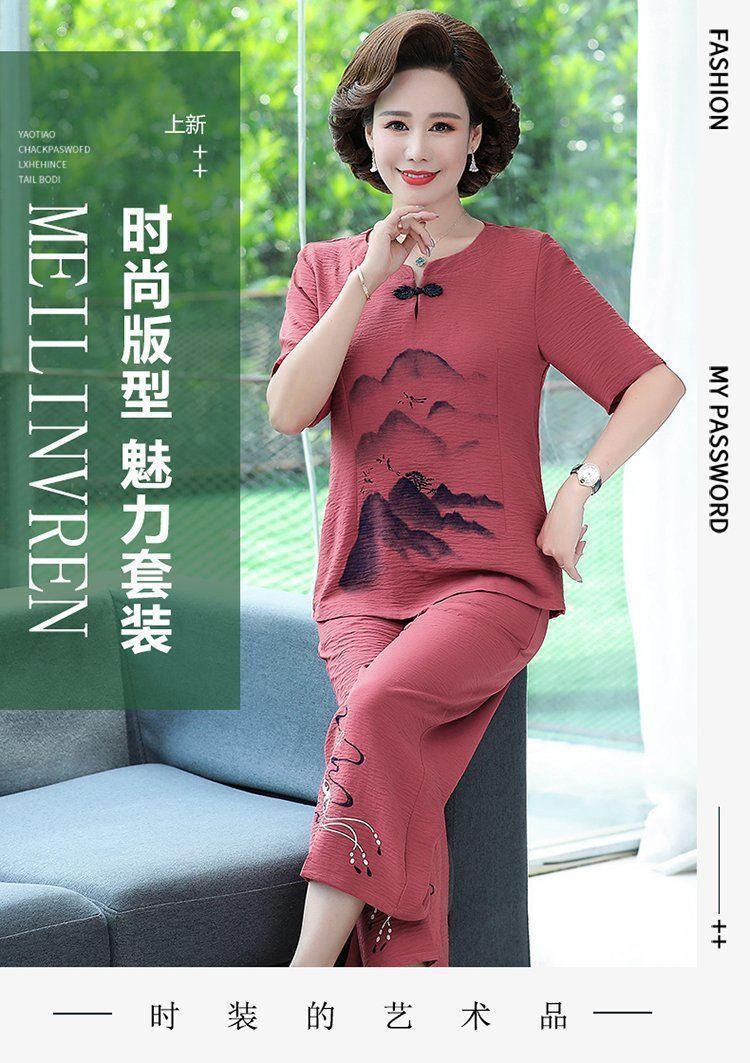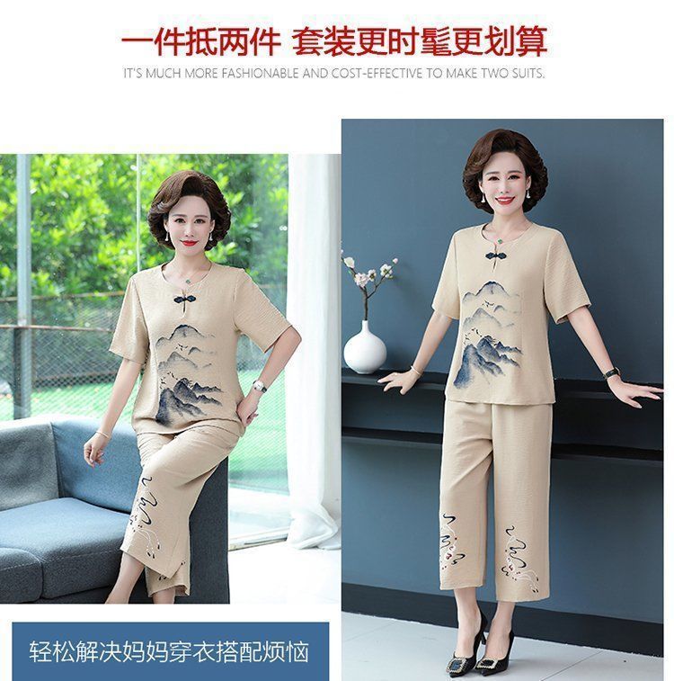 어머니의 여름 캐주얼 세트 서양식 연령 감소 5060 세 여성 느슨한 플러스 사이즈 탑 바지 투피스 세트스토어 가기