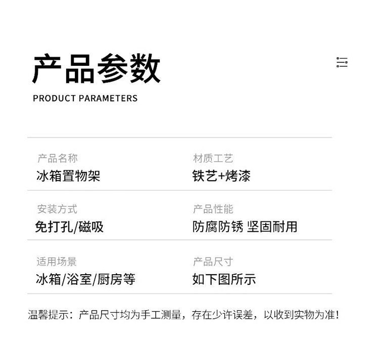 냉장고 외부 구멍이없는 벽걸이 형 주방 및 홈 컨디셔닝 스토리지 랙 용 두꺼운 자기 흡수 스토리지 랙