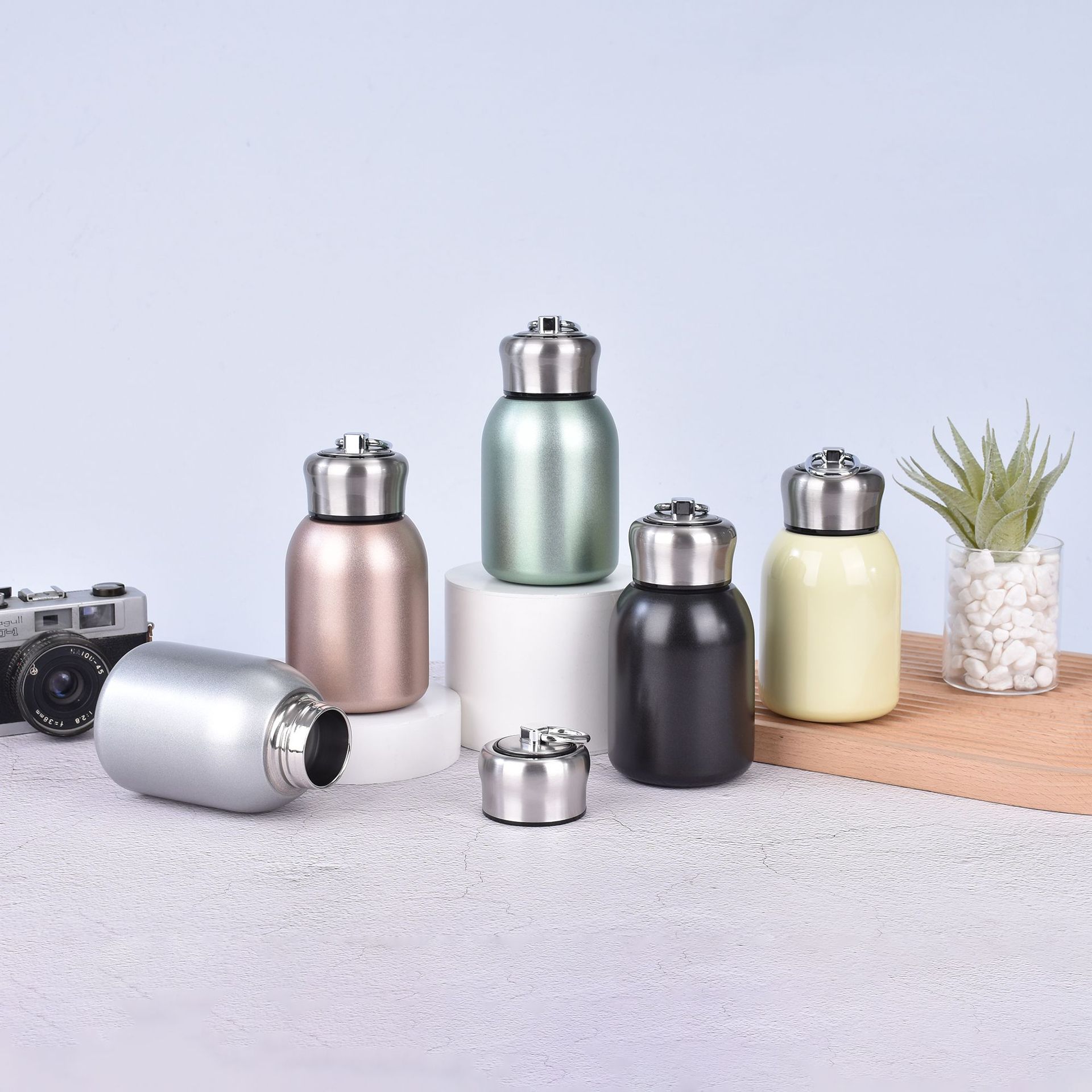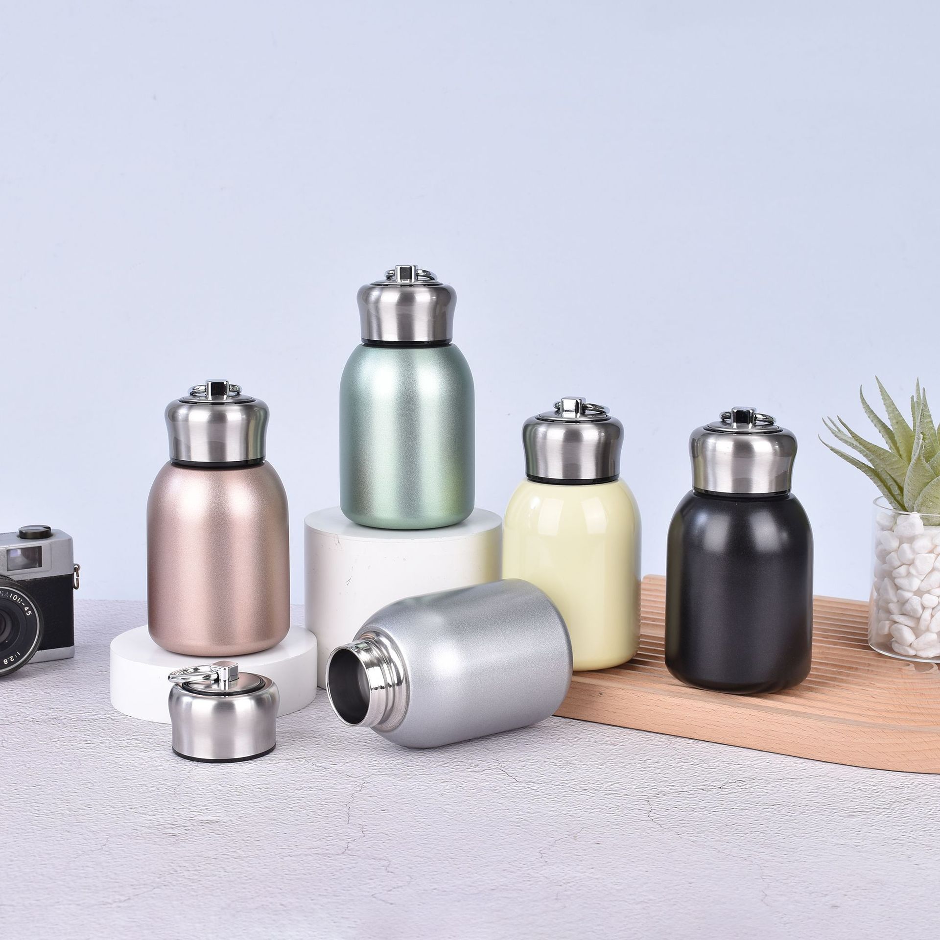 국경 미니 316 스테인레스 스틸 작은 지방 보온병 컵 핸들 링 포켓 컵 진공 더블 레이어 휴대용 컵
