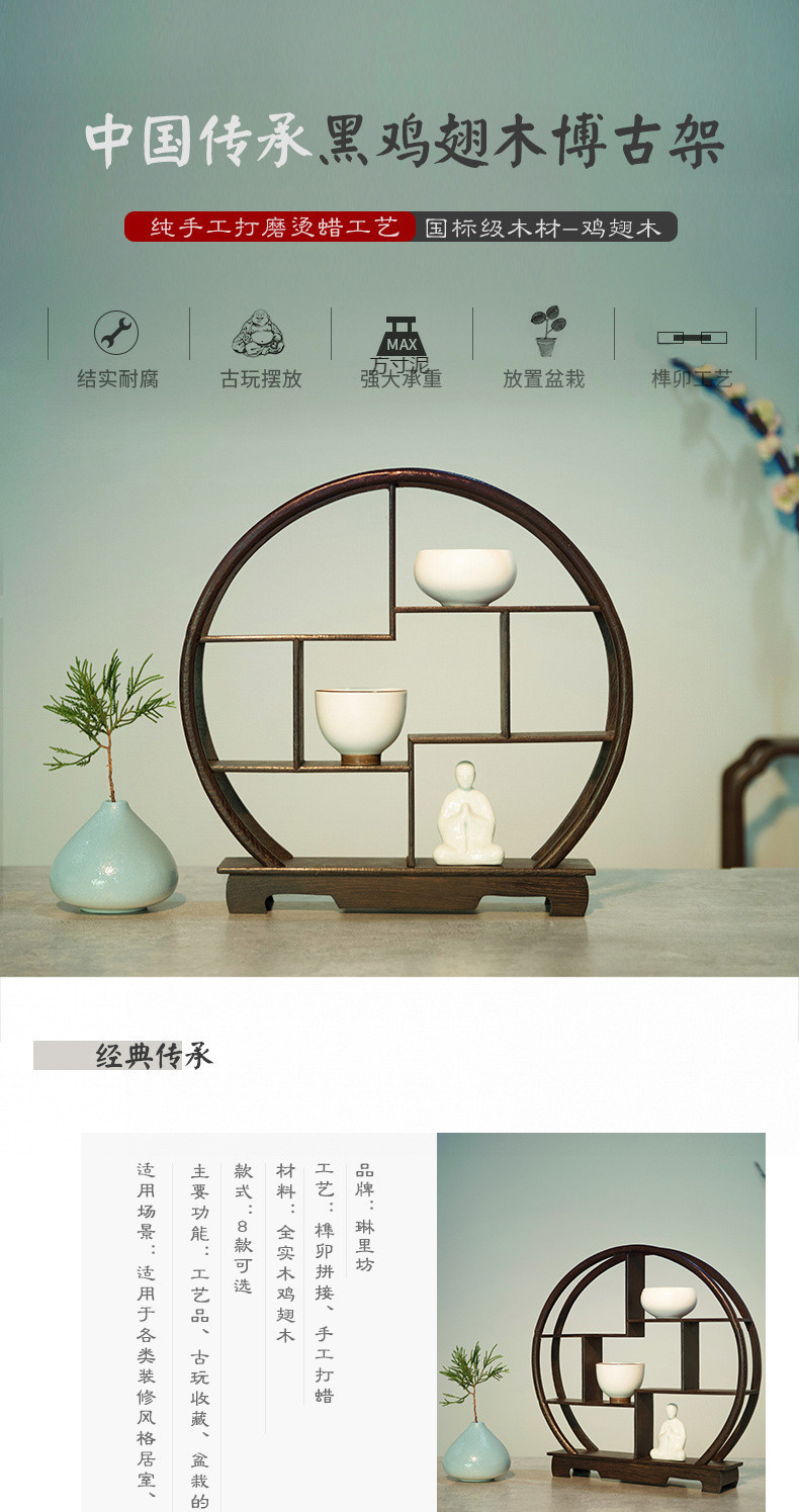 골동품 랙 작은 데스크탑 골동품 랙 고고학 고대 단단한 나무 저장 랙 차 테이블 장식품 랙 공장 공급망 도매