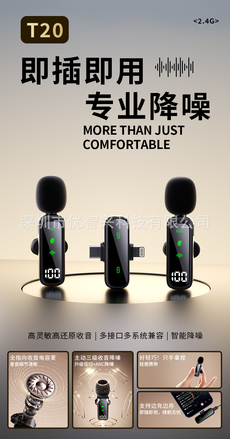 새로운 개인 모델 T20 디지털 디스플레이 무선 lavalerian 마이크 2 대 1 라이브 VLOG 촬영 라디오 소음 감소 마이크스토어 가기