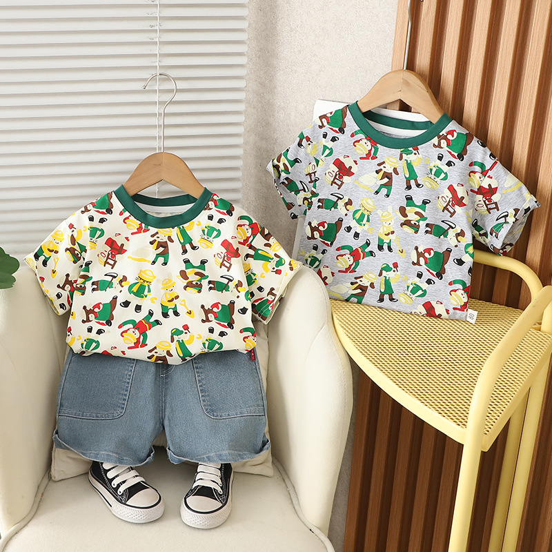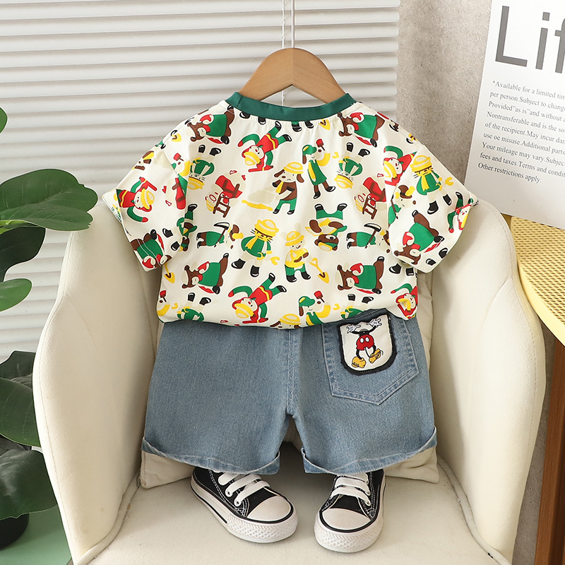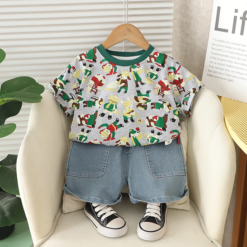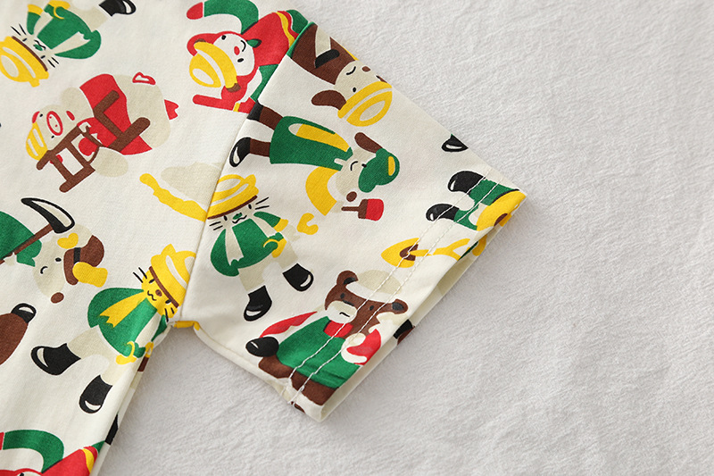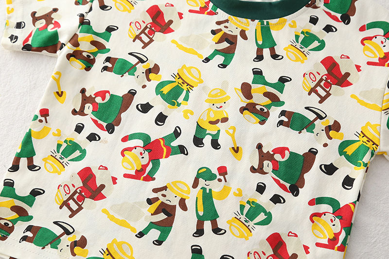 남자들의 여름 서양식 인터넷 인기 반팔 세트 2025 년 새 여름 어린이 전체 인쇄 노동자 동물 반팔 세트