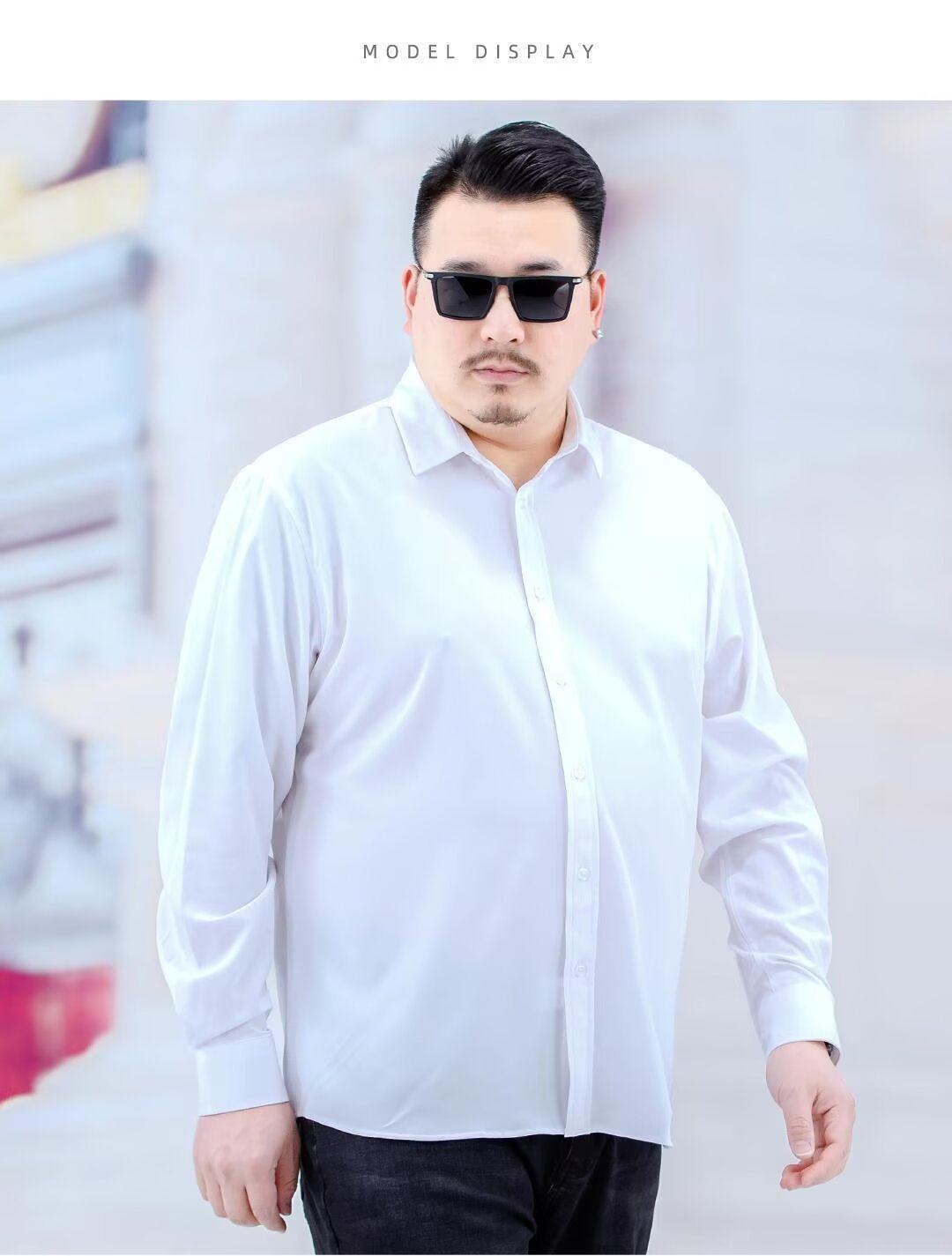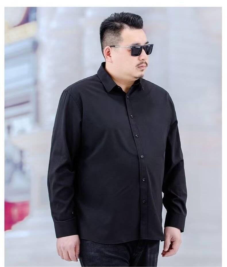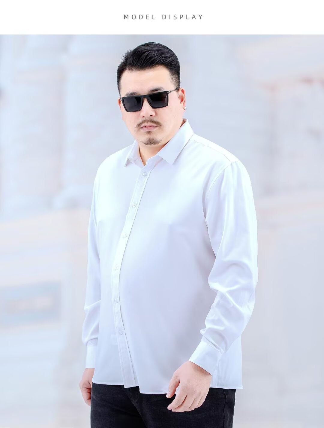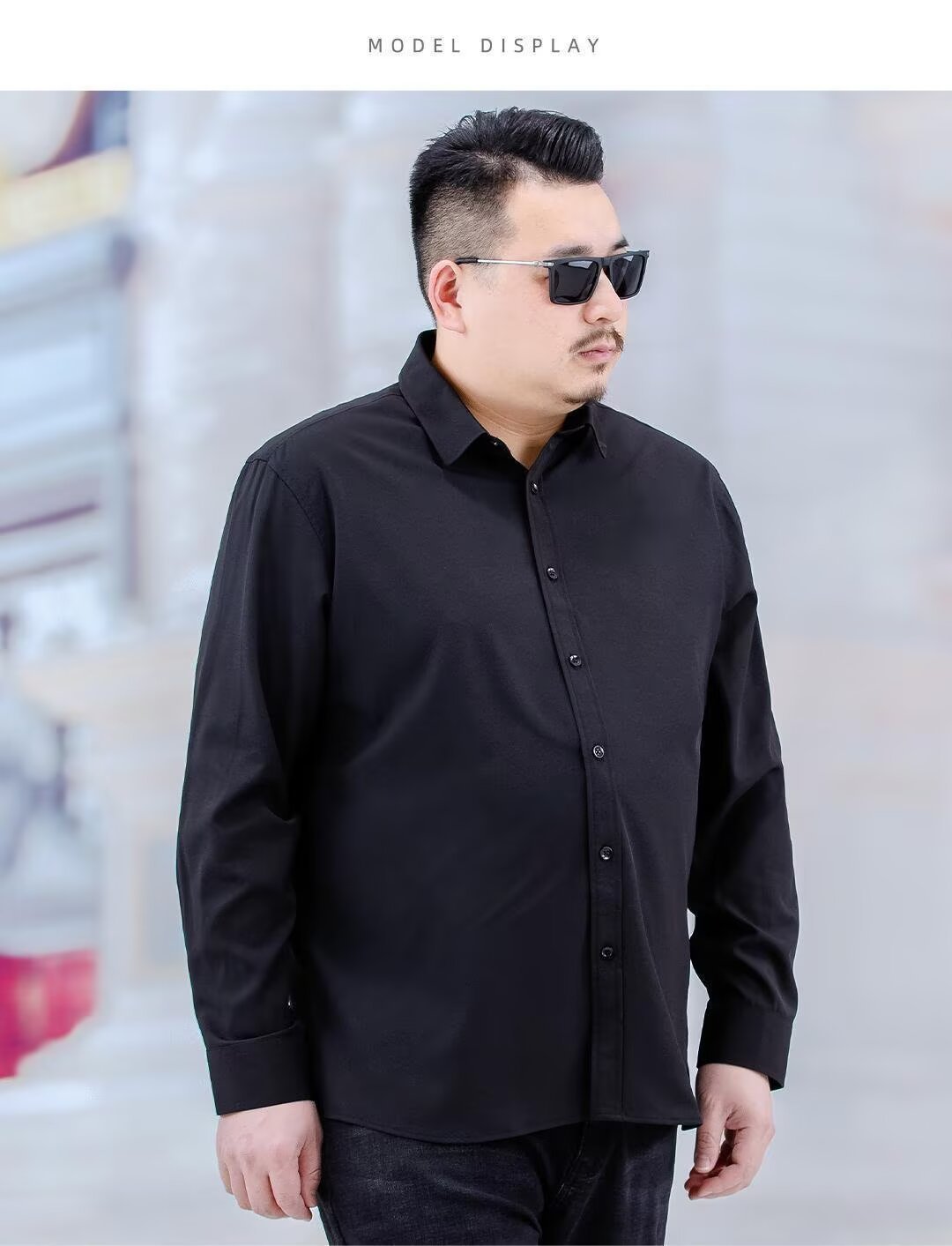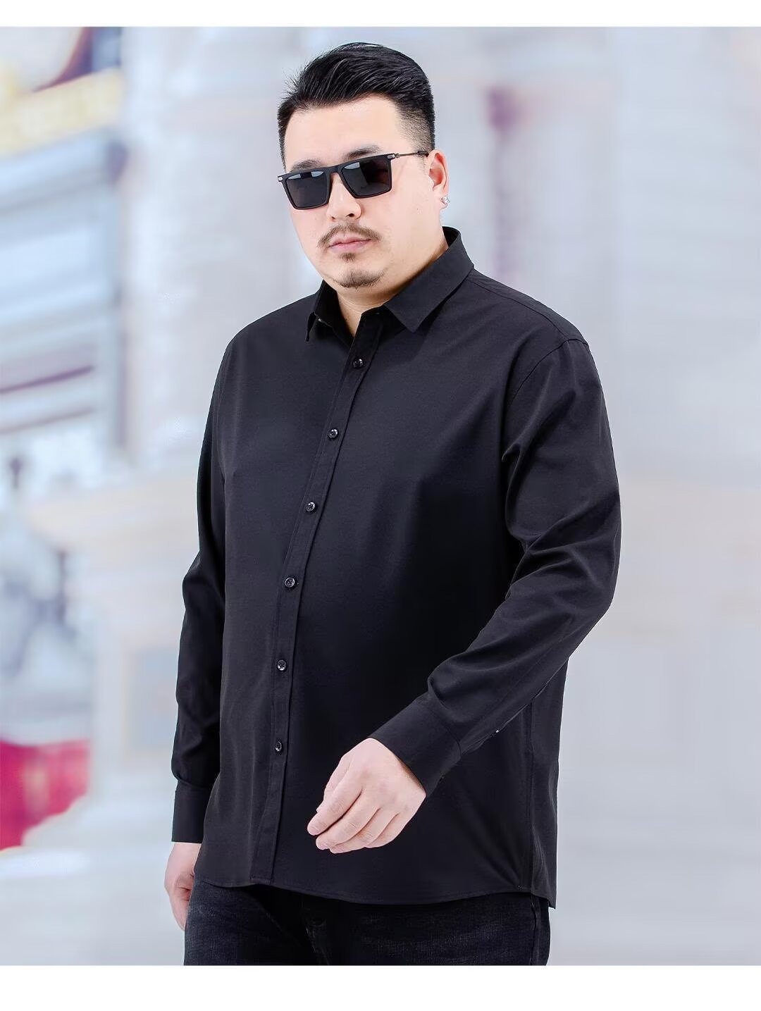 대외 무역 플러스 사이즈 긴팔 셔츠 플러스 대형 남성 봄과 여름 비즈니스 원피스 다림질 무료 단색 느슨한 셔츠