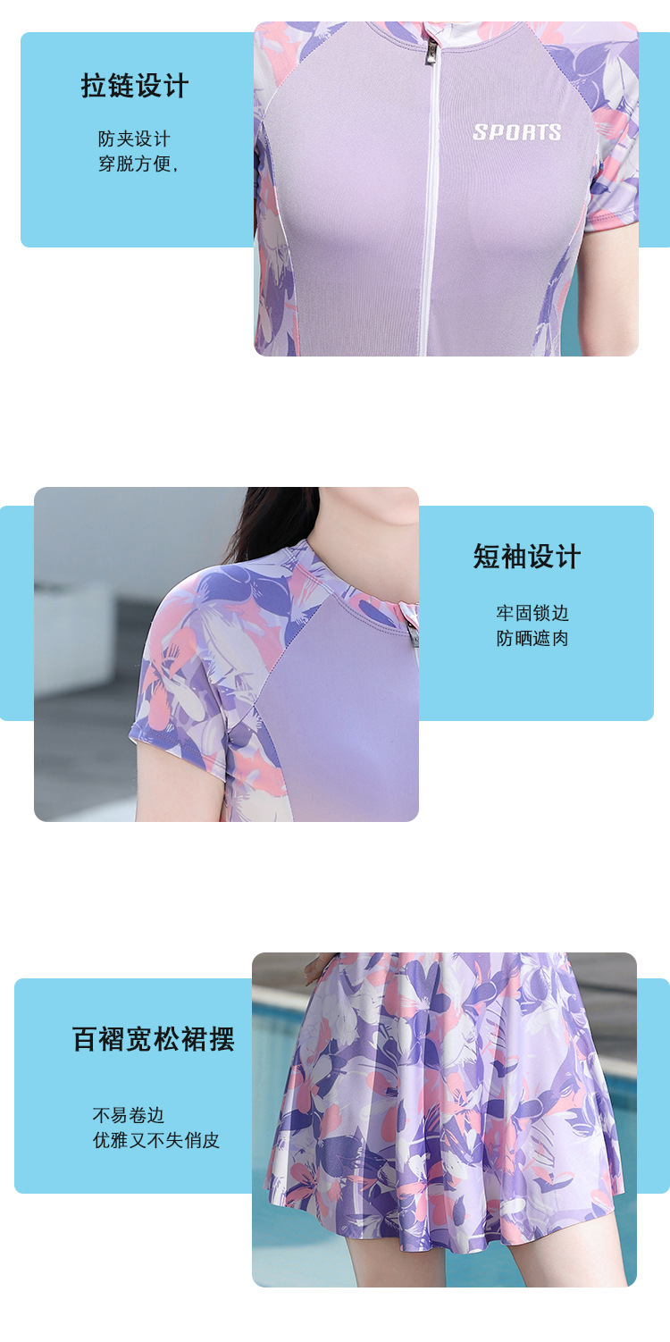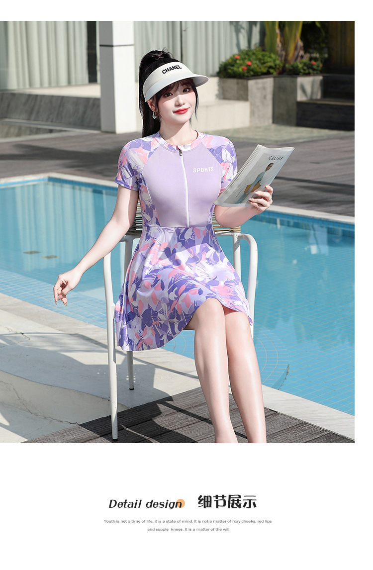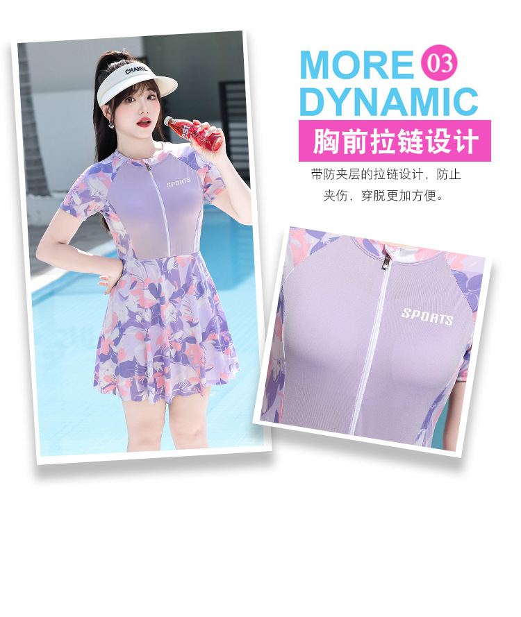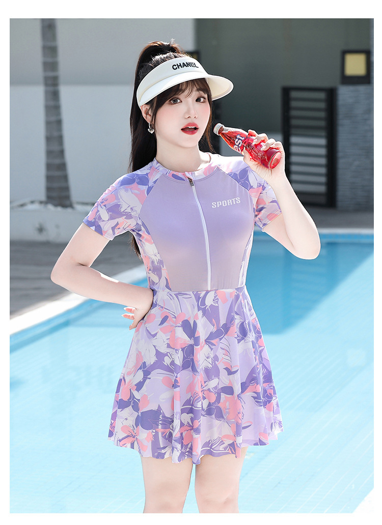 플러스 사이즈 수영복 여성 원피스 스커트 짧은 소매 학생 스포츠 보수적 인 배꼽 슬림 지방 MM200 kg 온천 수영복스토어 가기