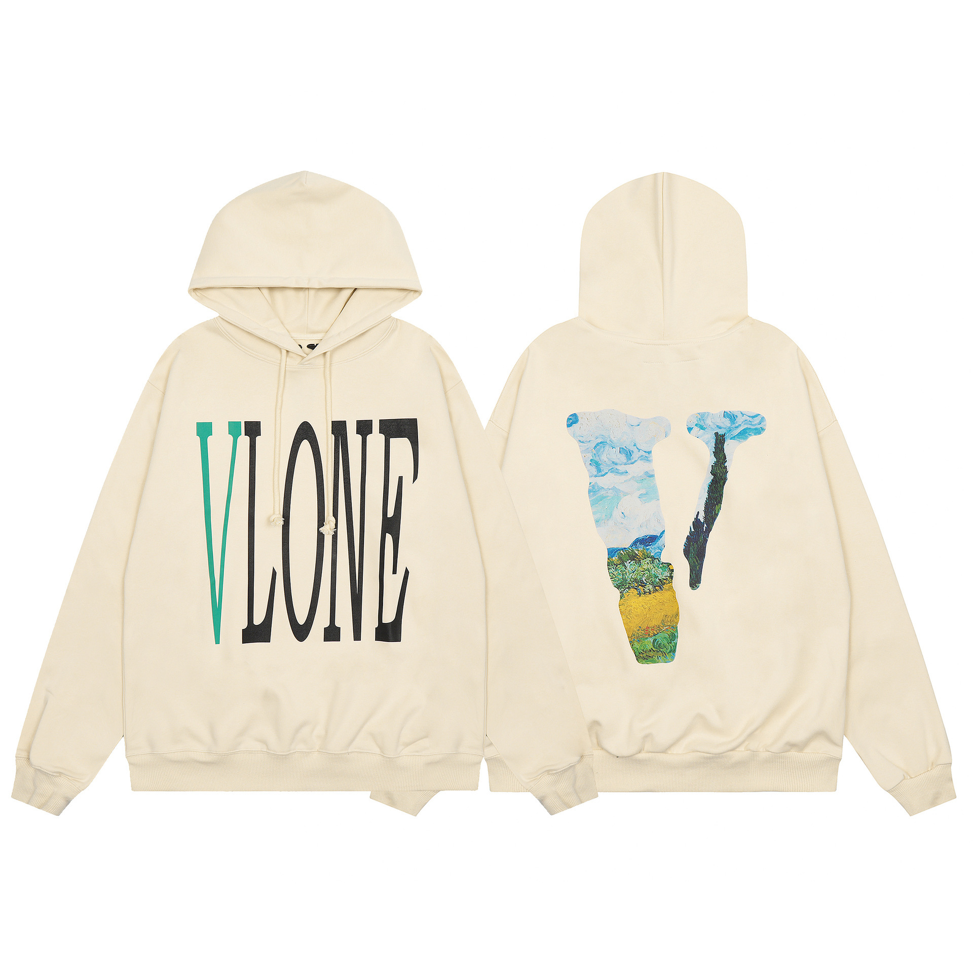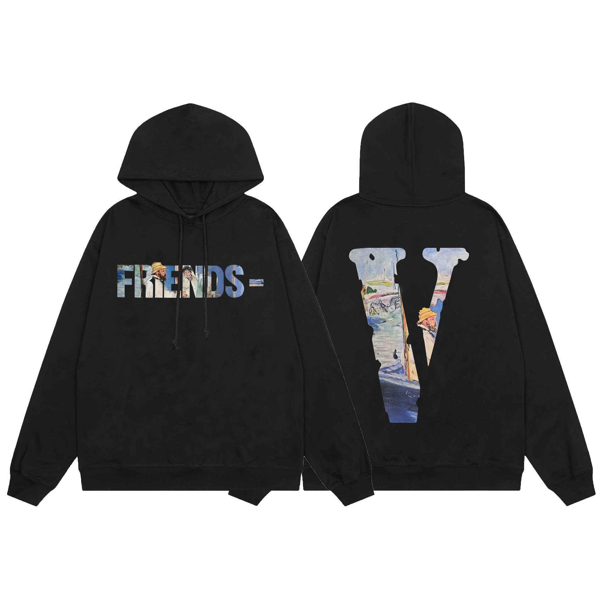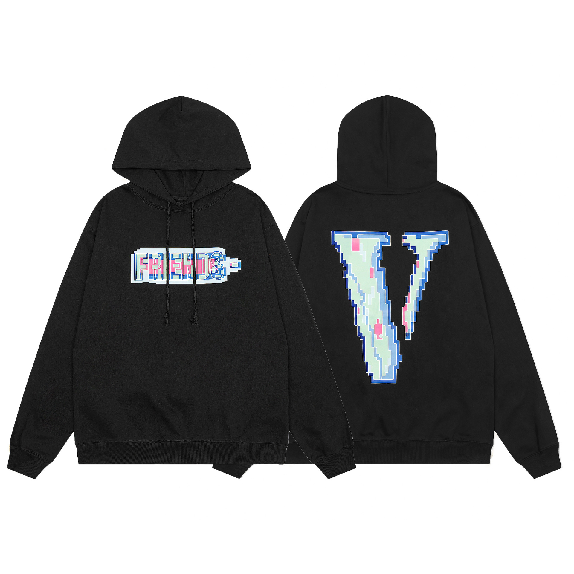 외부 싱글 Vlone FOG 모자이크 친구 요소 스타일 미국 빅 V 후드 시리즈 스웨터 헤비 후드스토어 가기