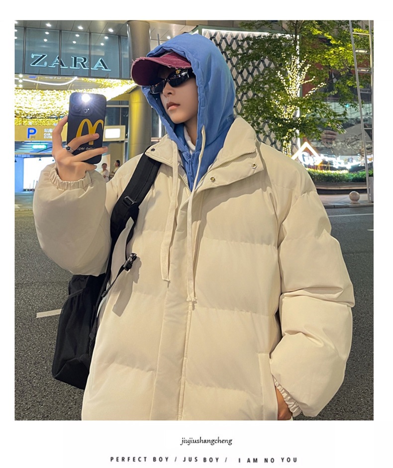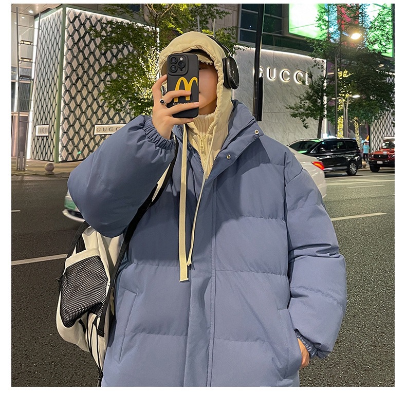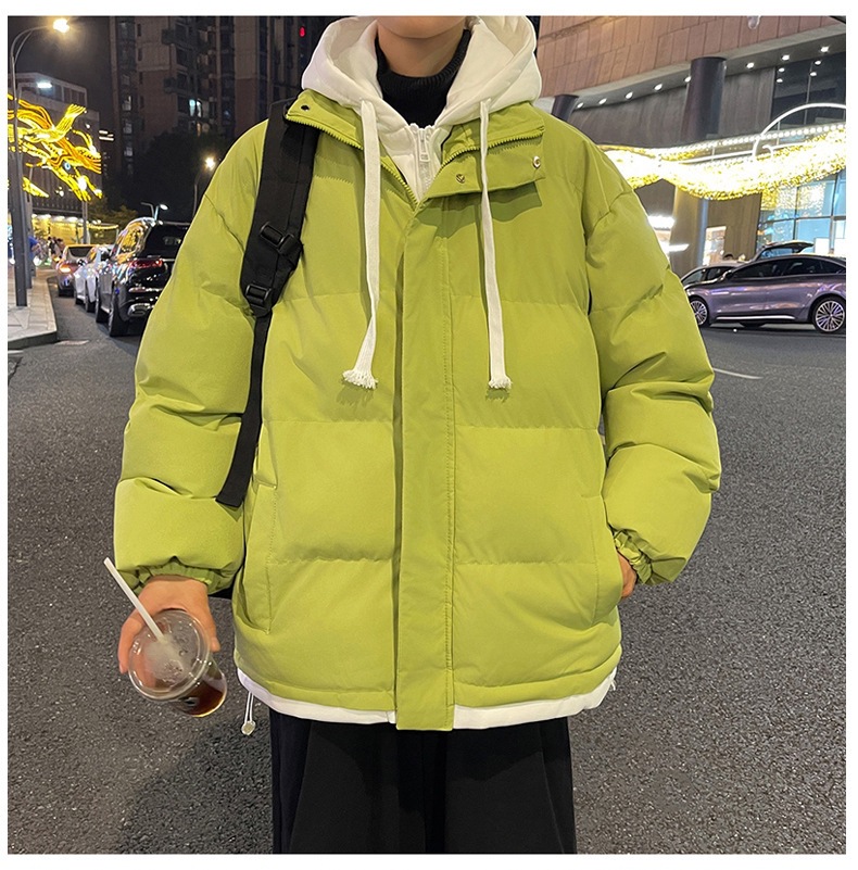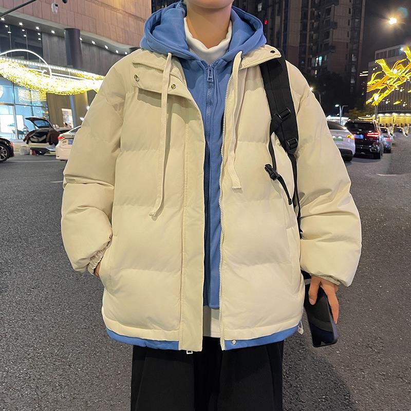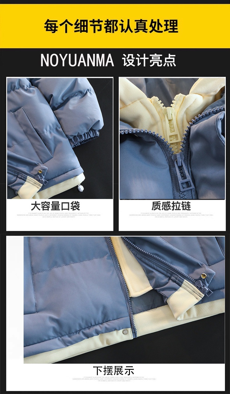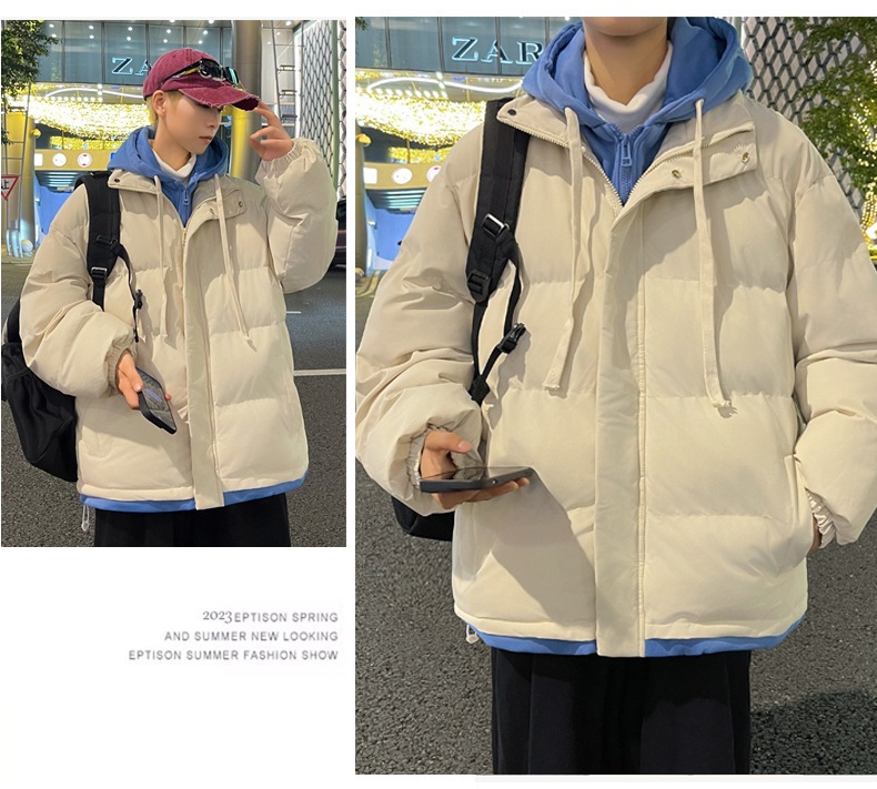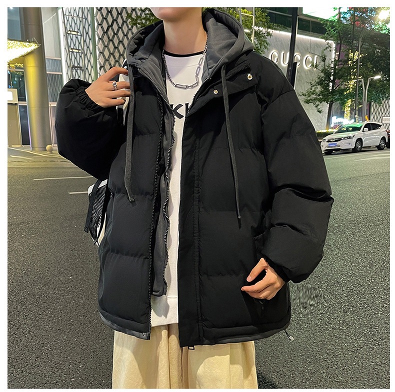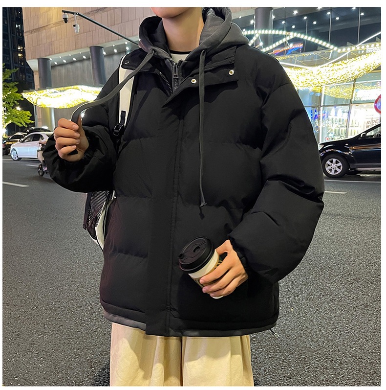 2301 겨울 대비 색상 바느질 가짜 투피스 커플 면 패딩 재킷 유행 후드 두꺼운 면 패딩 의류 남성용 루즈 따뜻한스토어 가기