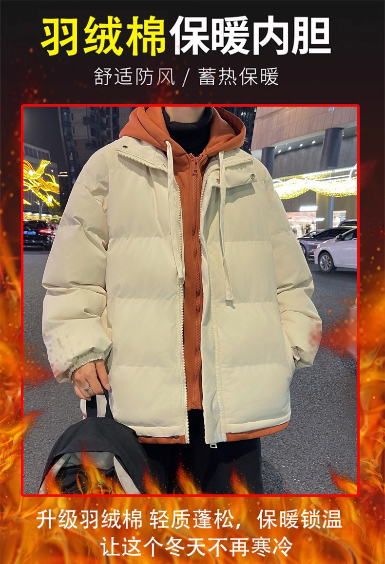 2301 겨울 대비 색상 바느질 가짜 투피스 커플 면 패딩 재킷 유행 후드 두꺼운 면 패딩 의류 남성용 루즈 따뜻한