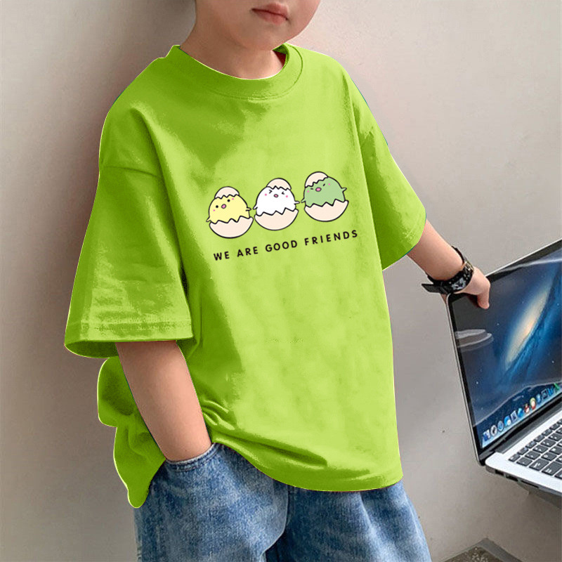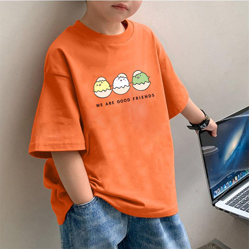 2193 # 여름 반팔 티셔츠 만화 치킨 패턴 소년의 아기 느슨한 반소매 크루 넥 탑