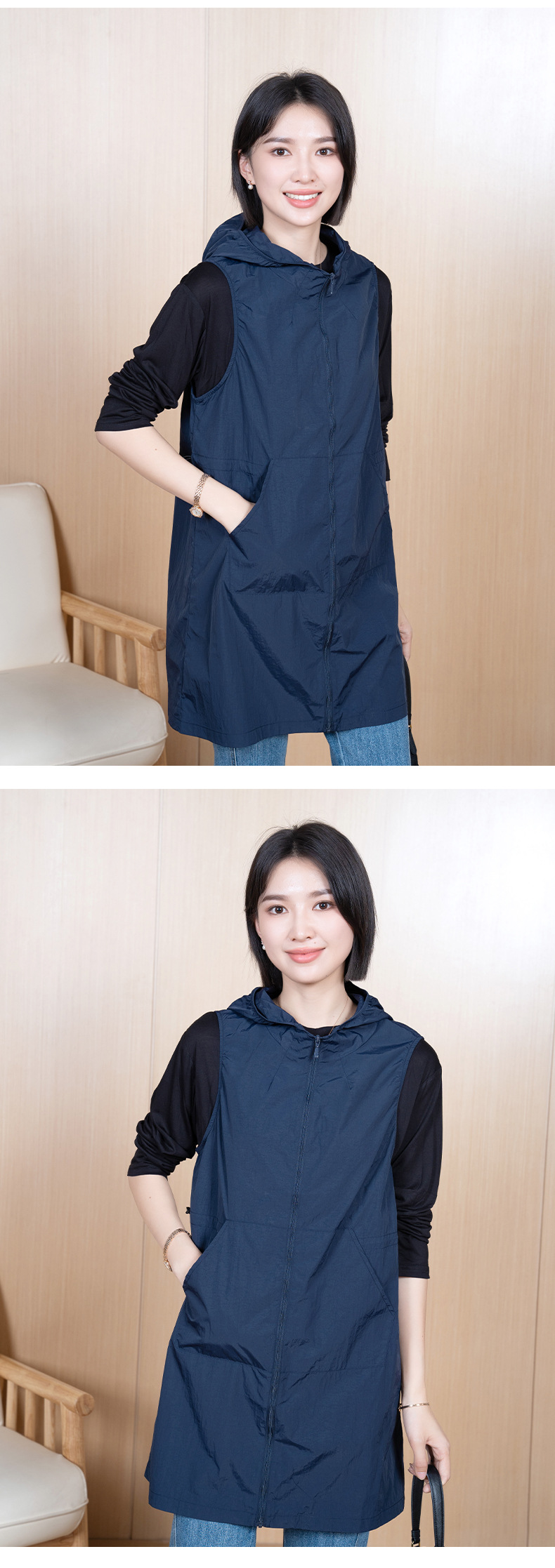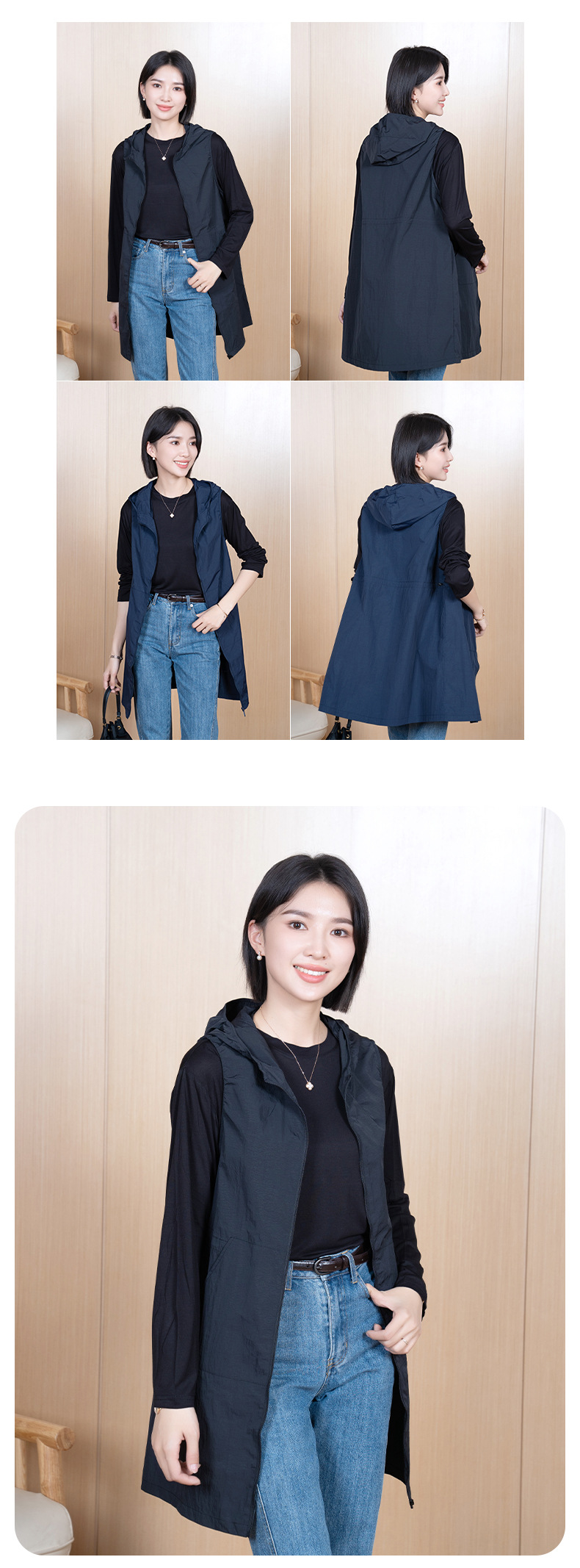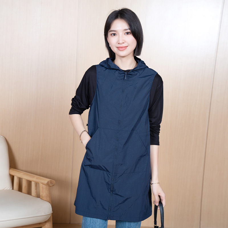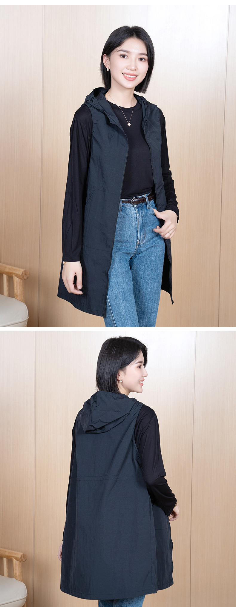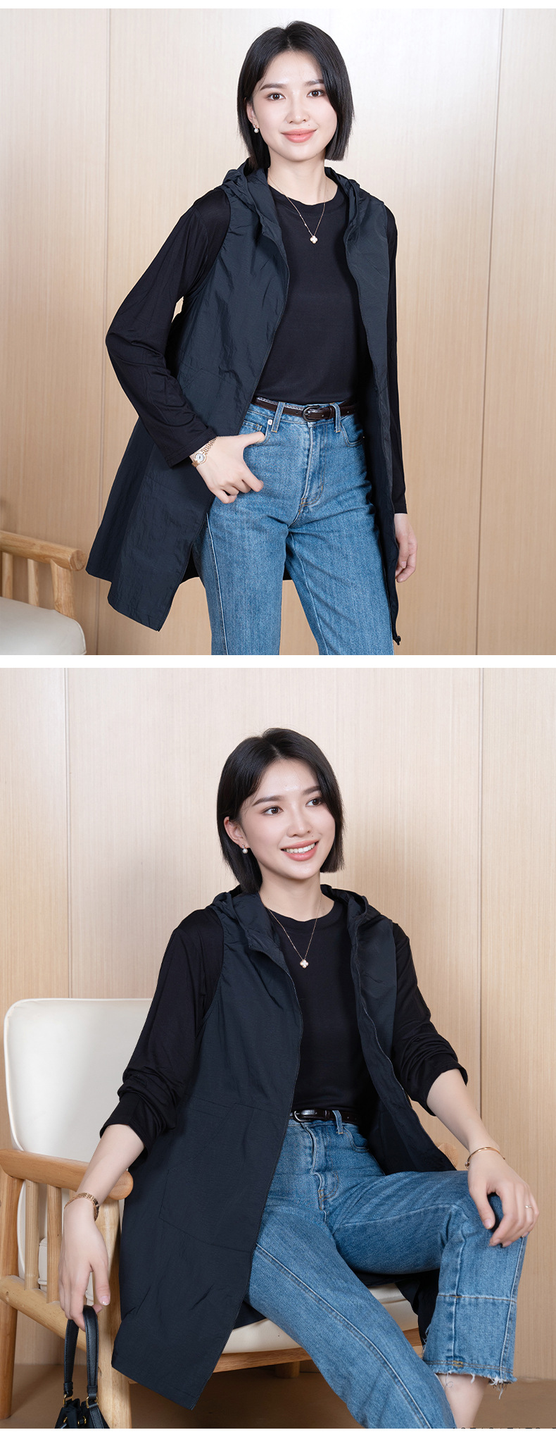 YUN Yun 2025 새 봄과 여름 중간 길이 느슨한 후드 허리 방수 캐주얼 조끼 코트