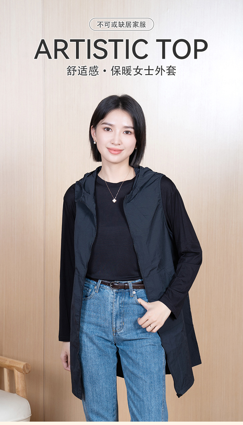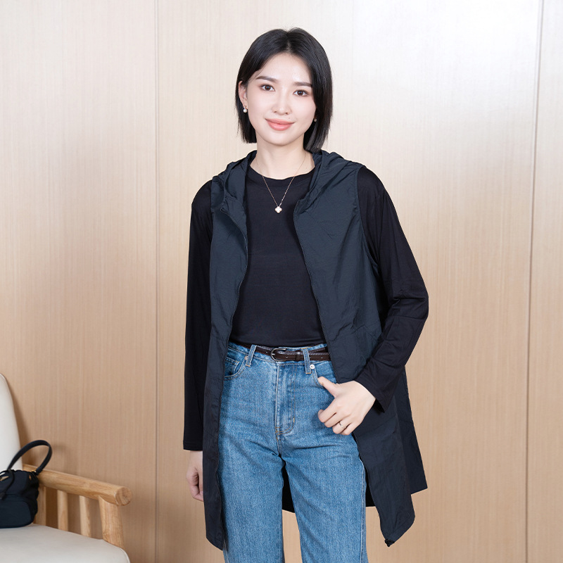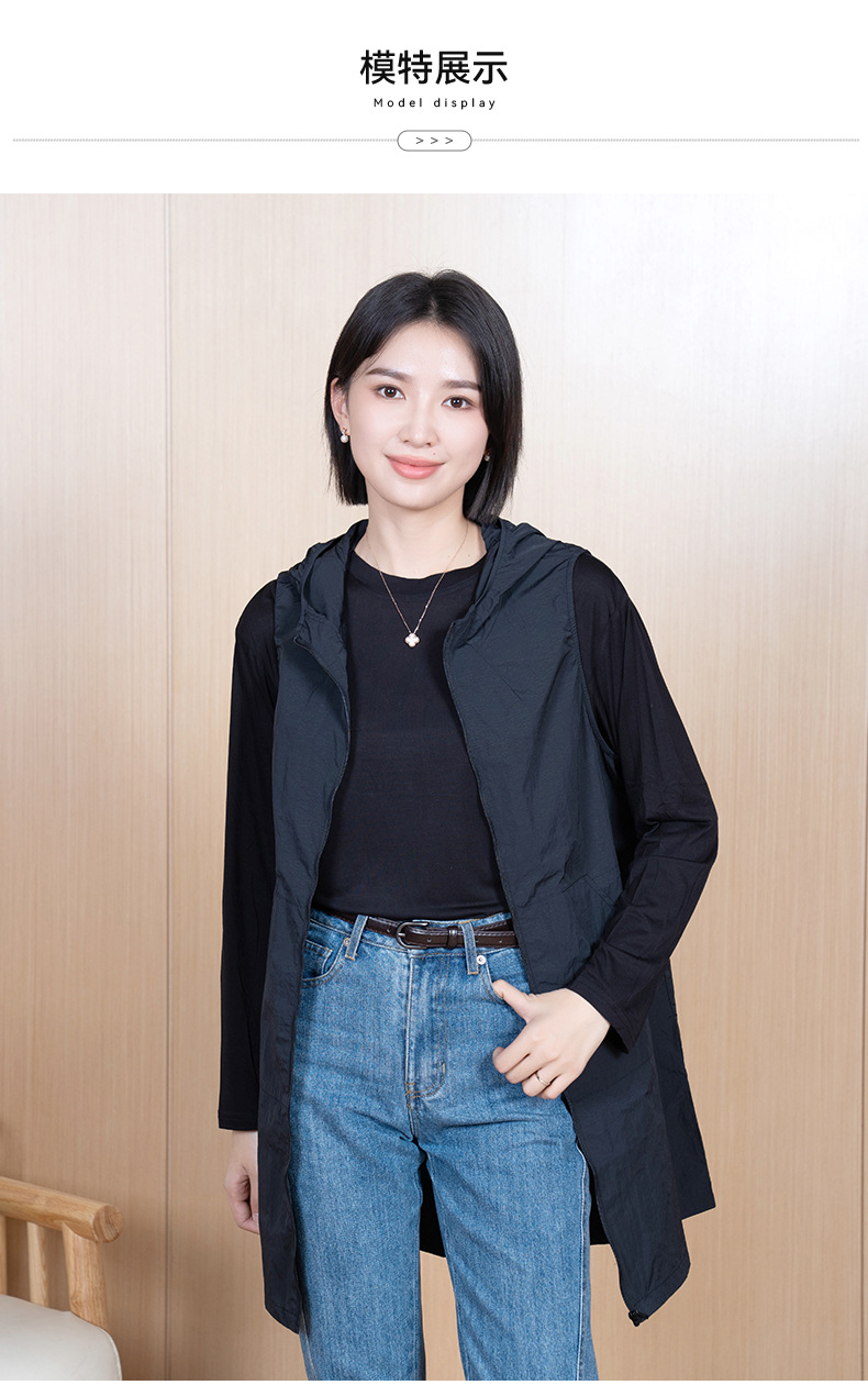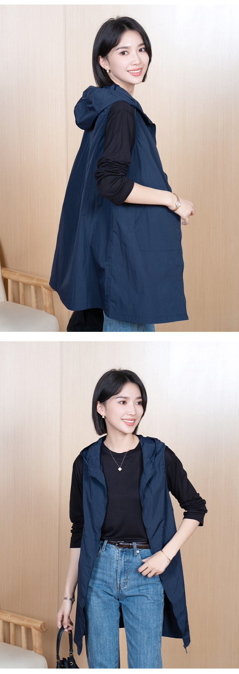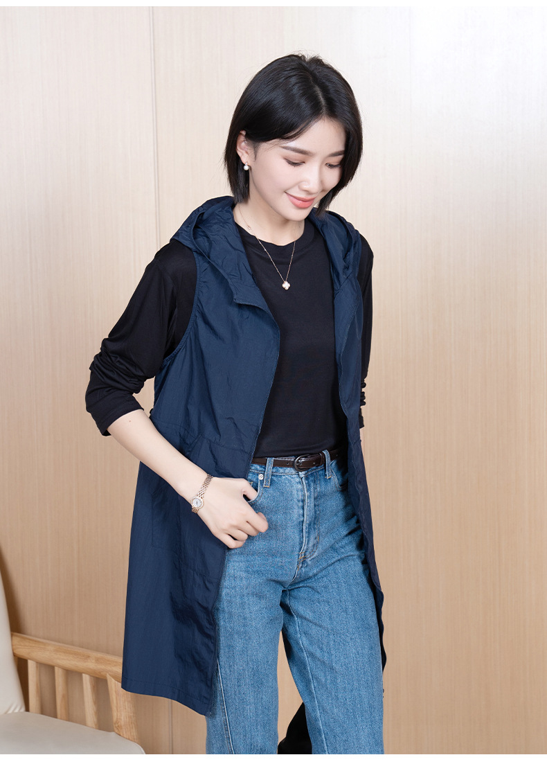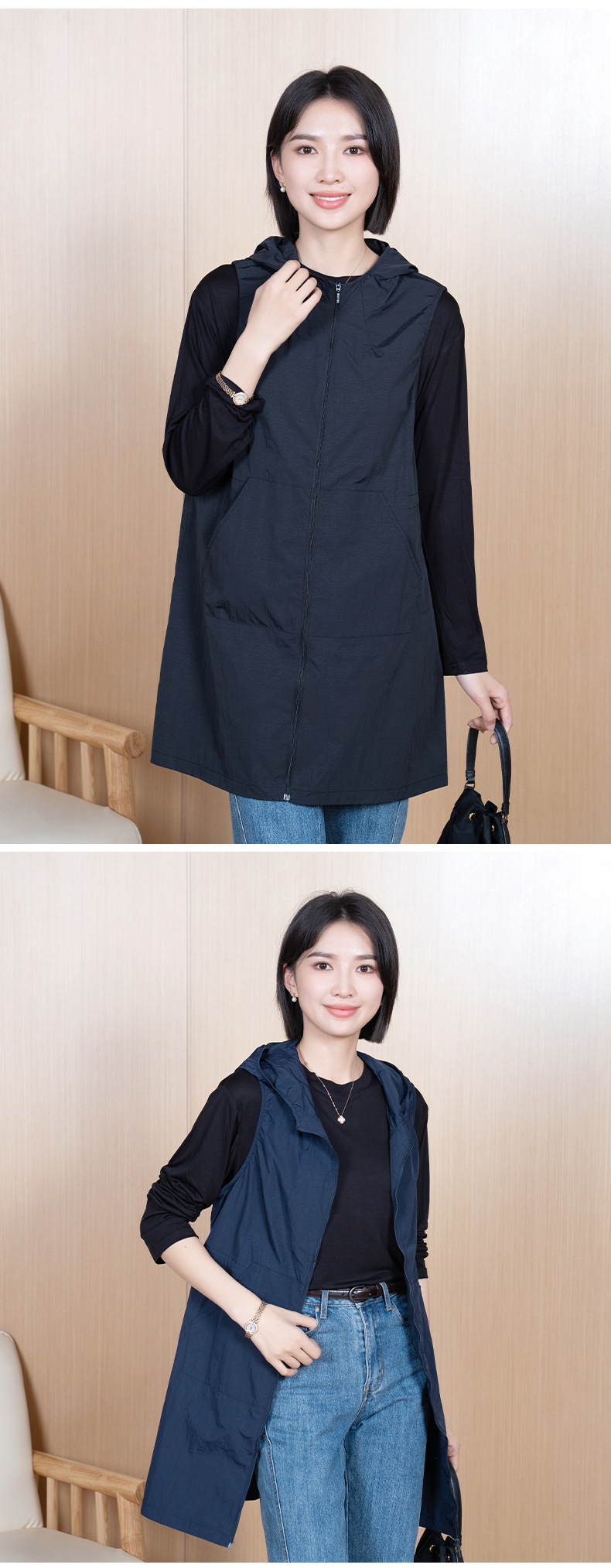 YUN Yun 2025 새 봄과 여름 중간 길이 느슨한 후드 허리 방수 캐주얼 조끼 코트