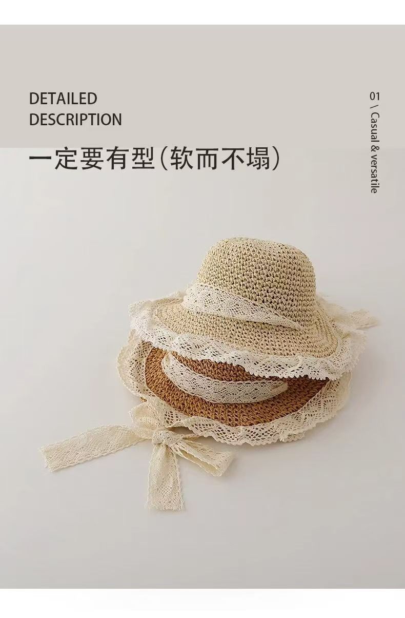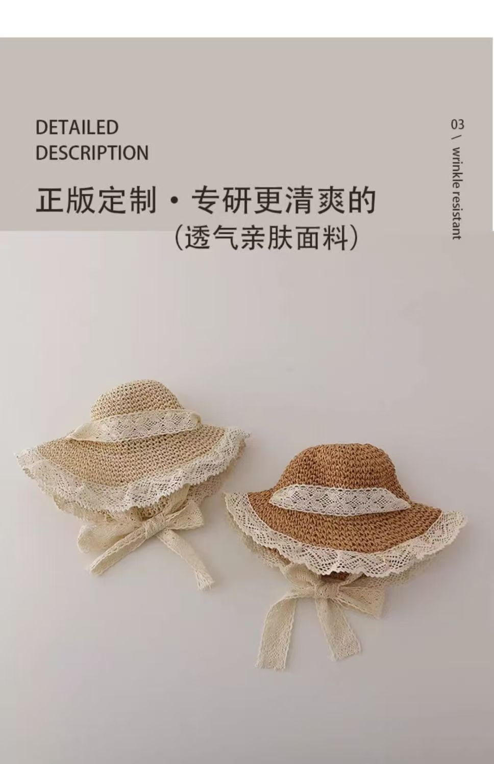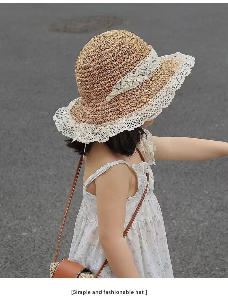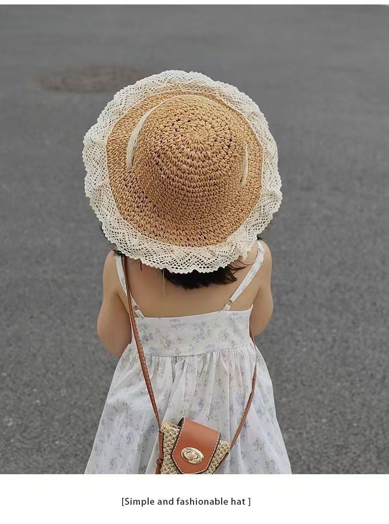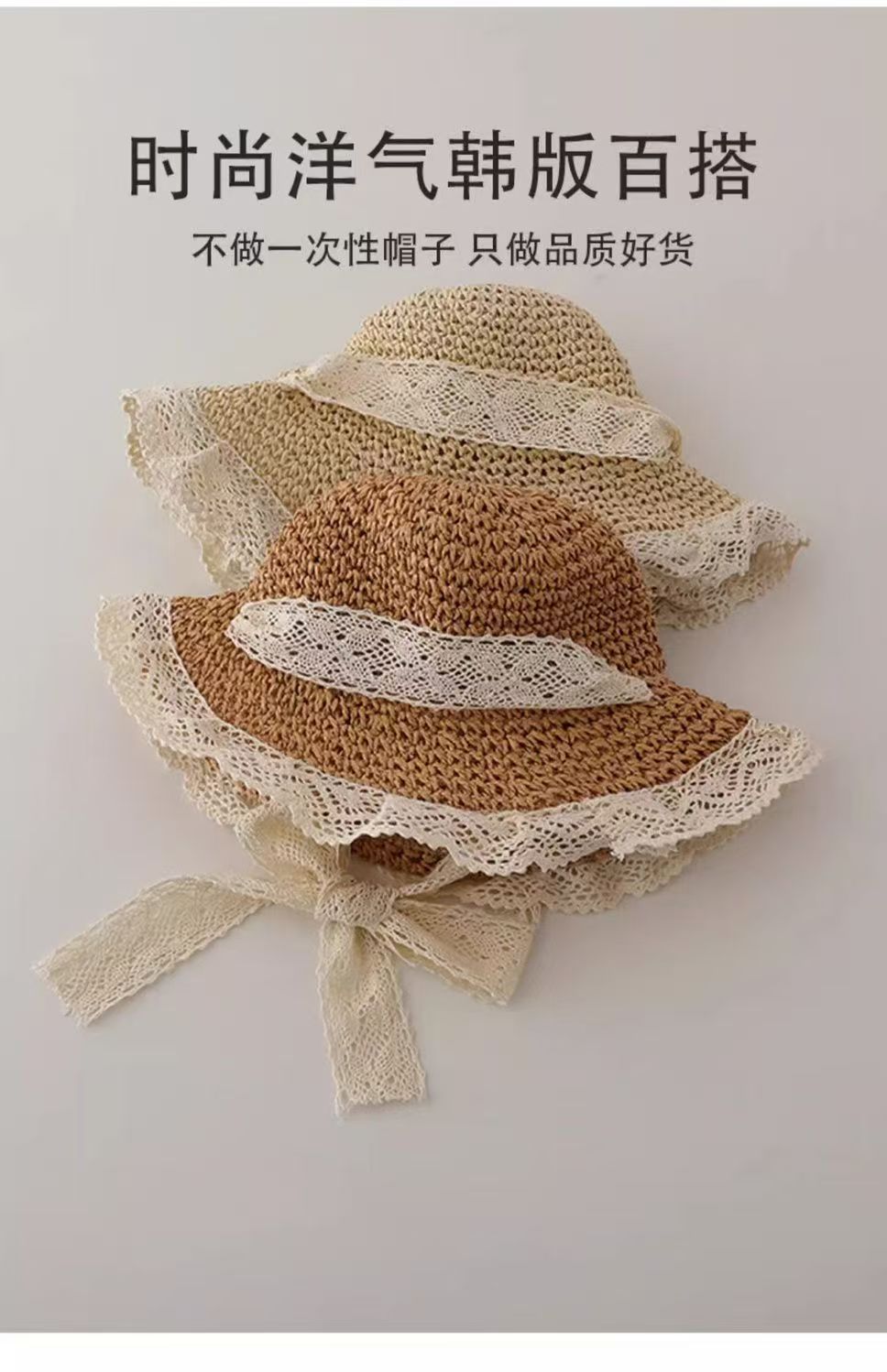 한국 스타일 여름 어린이 휴가 해변 모자 레이스 밀짚 모자 아기 부모-아이 소녀 봄과 가을 태양 보호 모자