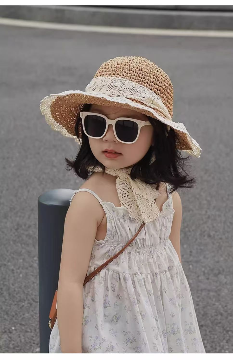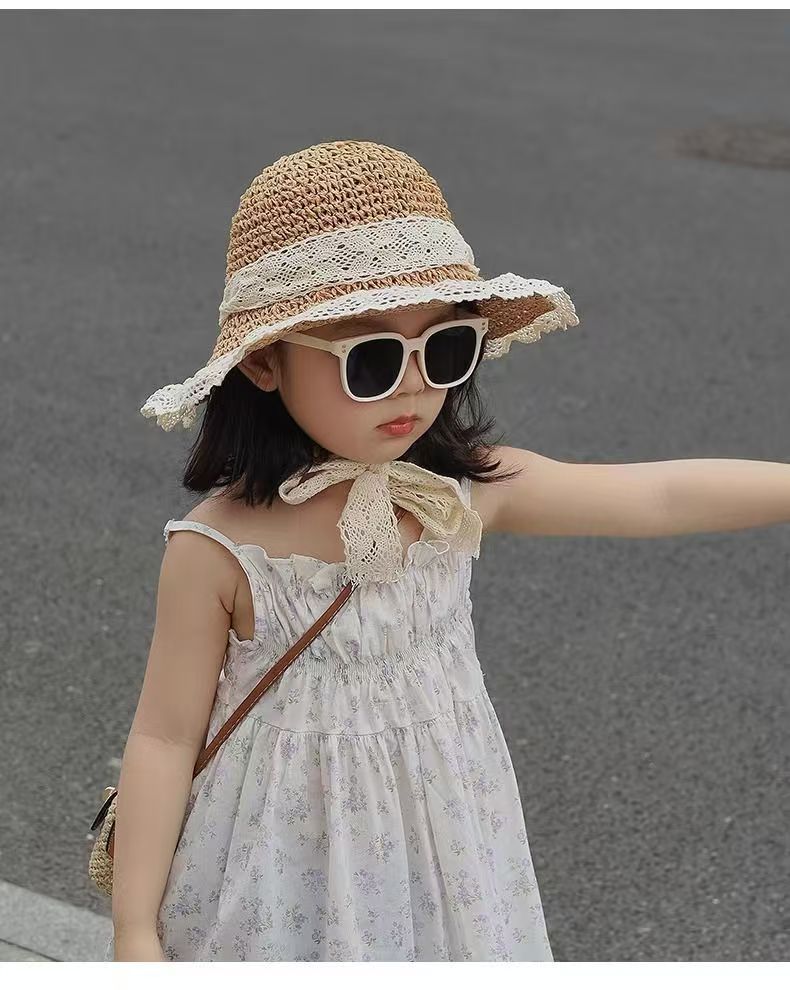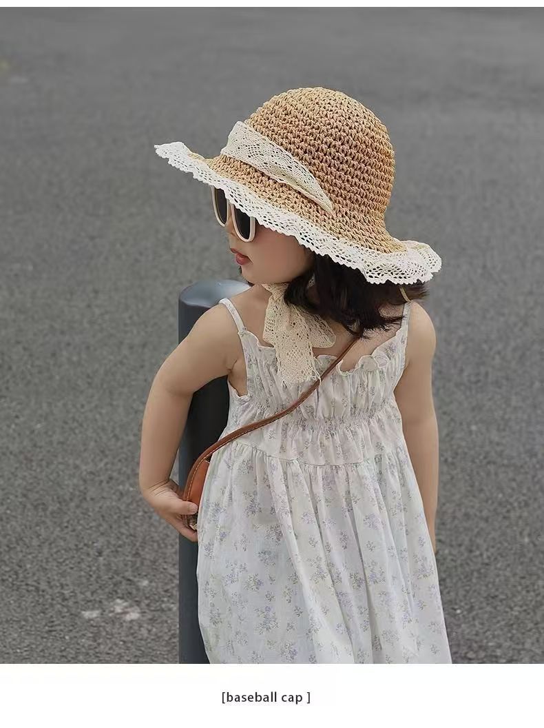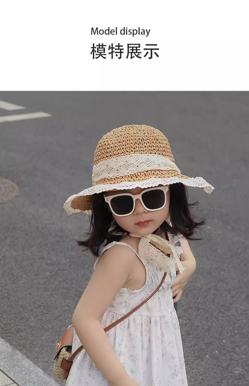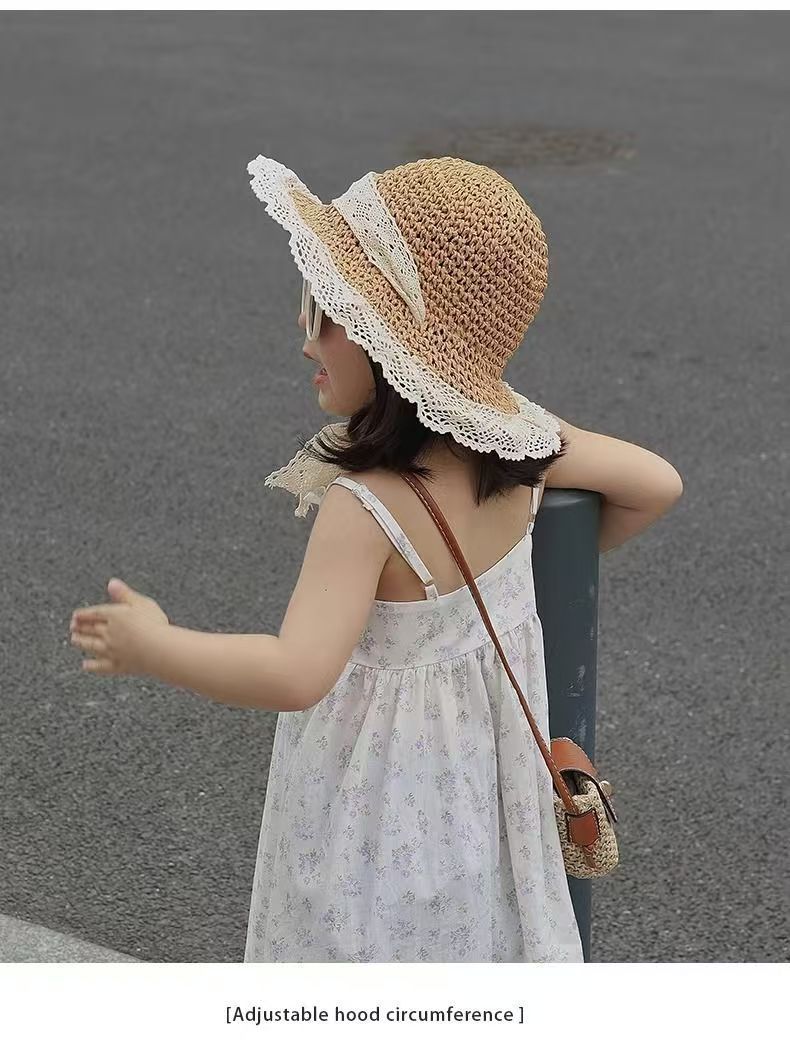 한국 스타일 여름 어린이 휴가 해변 모자 레이스 밀짚 모자 아기 부모-아이 소녀 봄과 가을 태양 보호 모자