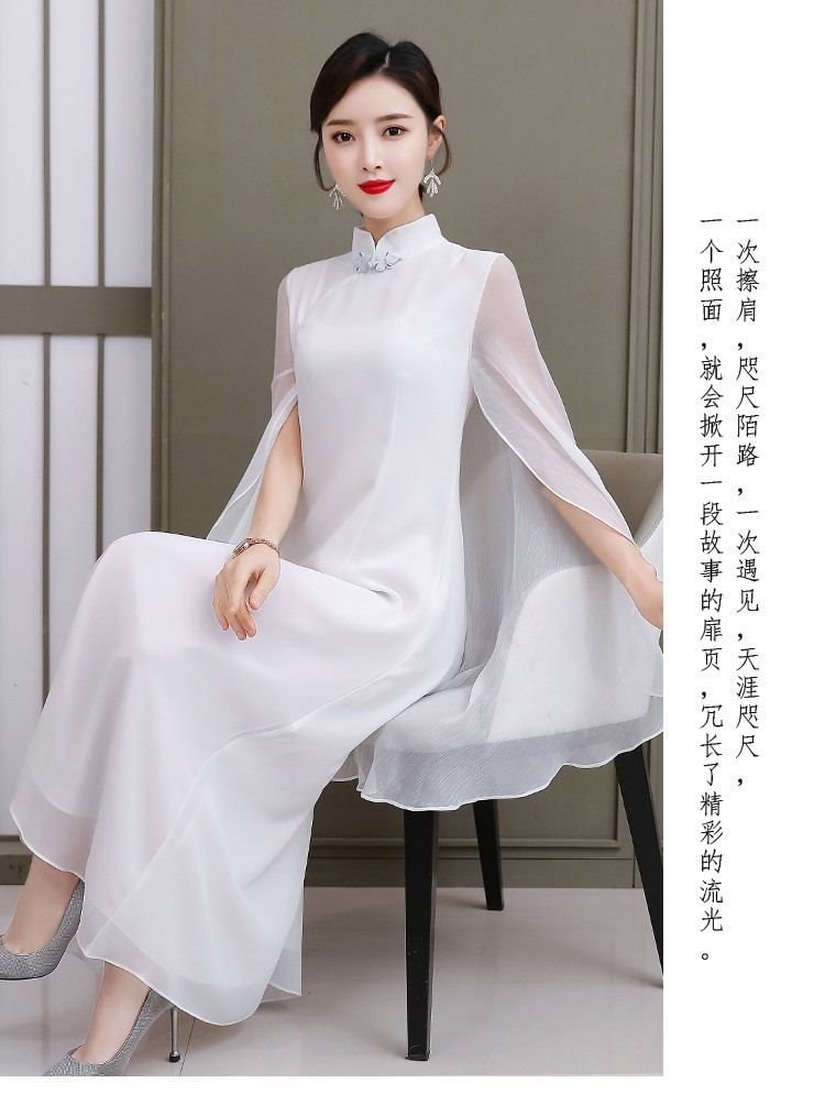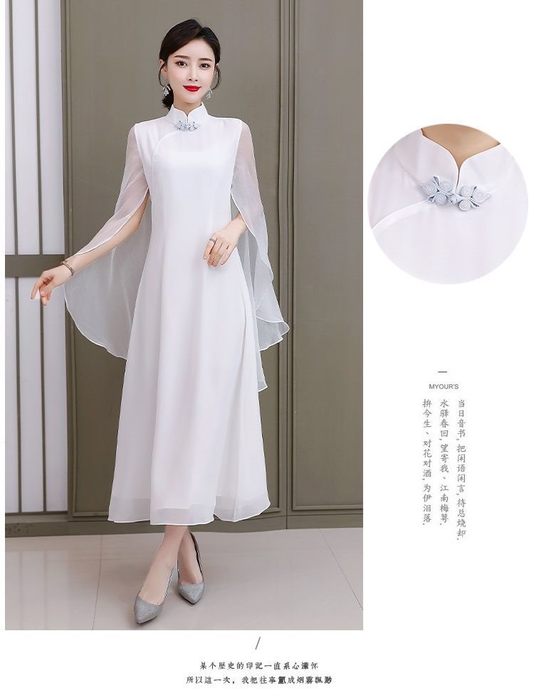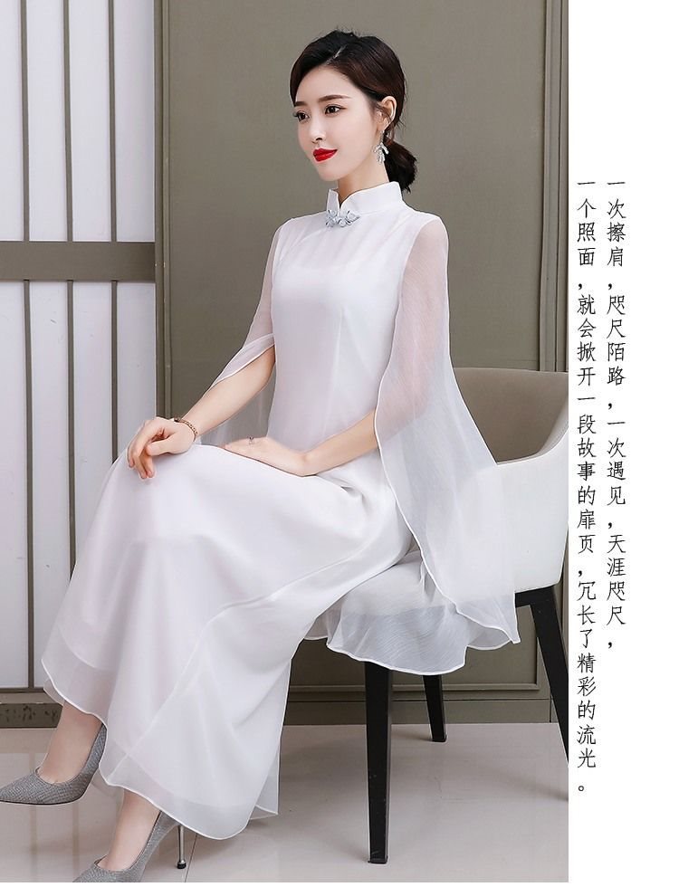중국 여성의 향상된 선 스타일 중국 흰 목도리 불멸의 원피스 불멸의 기질 개선 청삼 한푸 복고풍 여름