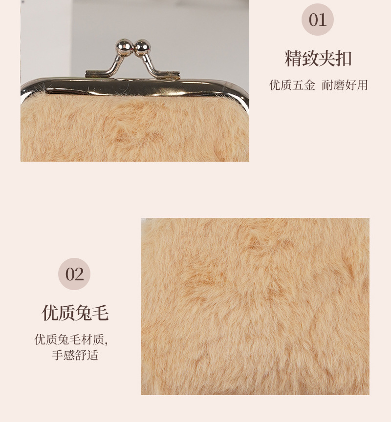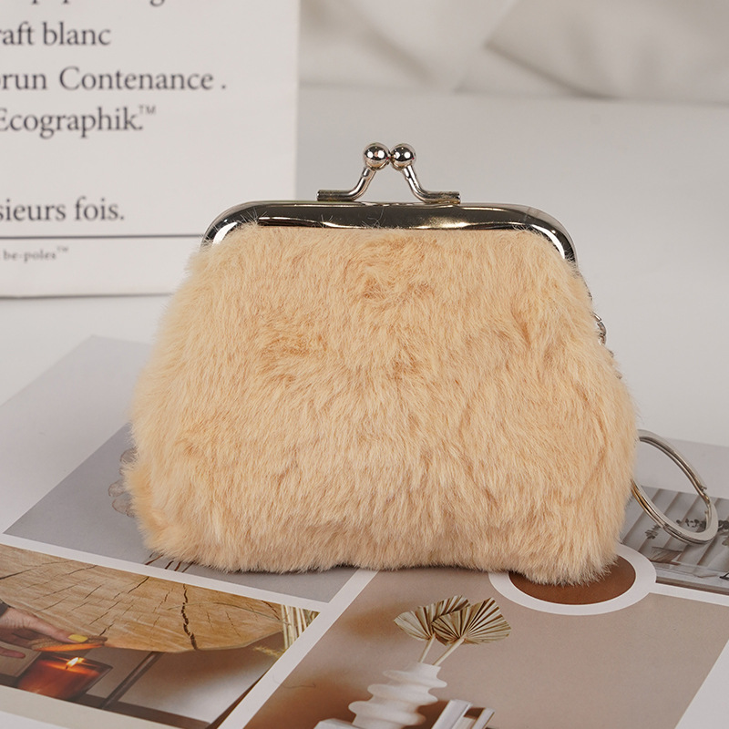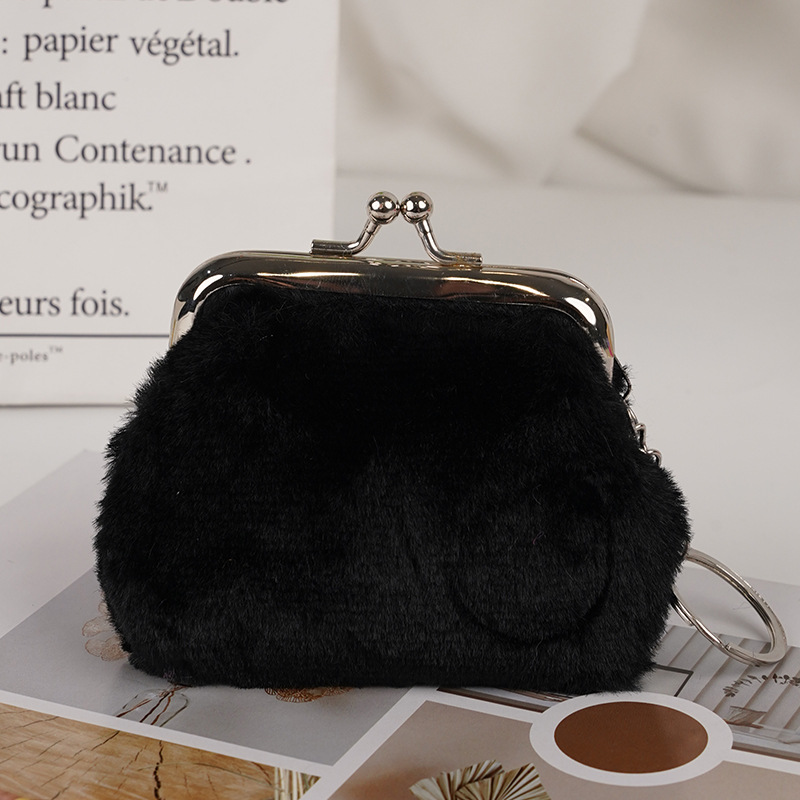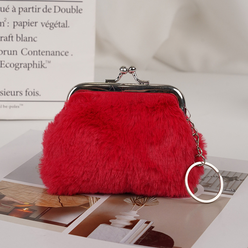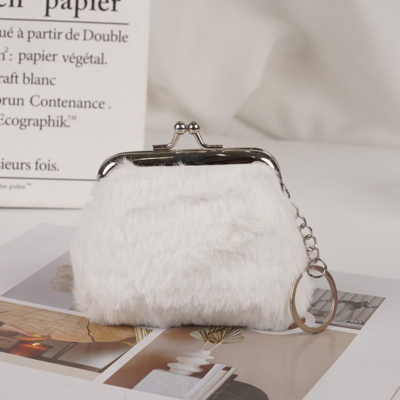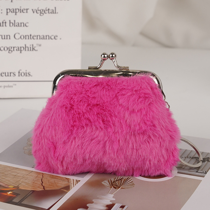 레트로 여성용 가방 동전 지갑 여성용 짧은 지갑 버클 토끼털 핸드백 동전 지갑 플러시 2025 신상스토어 가기