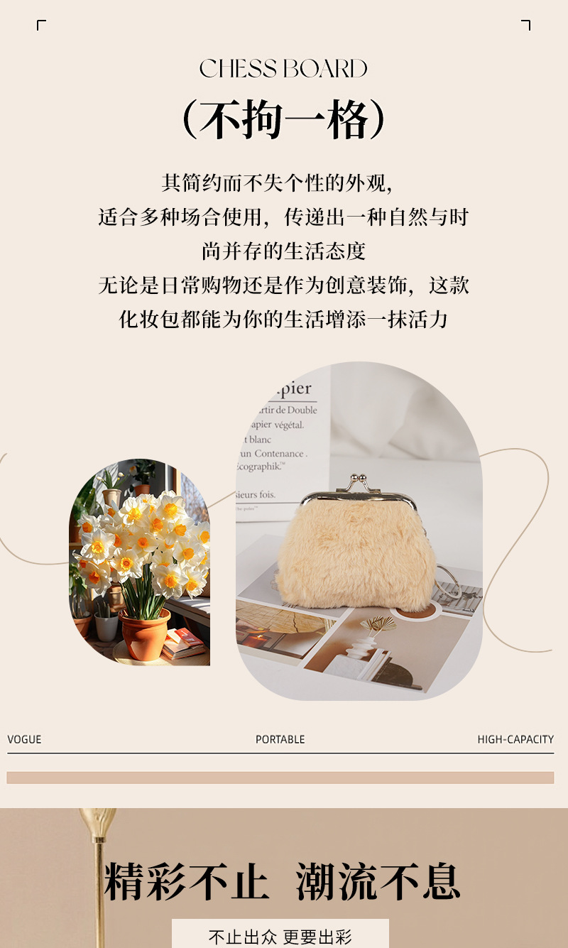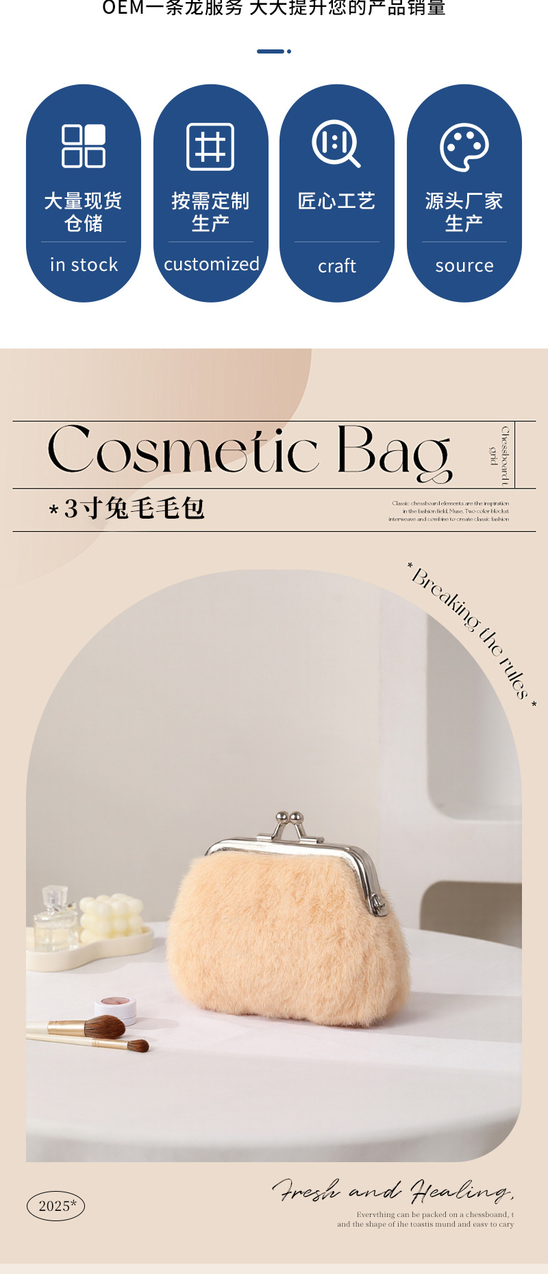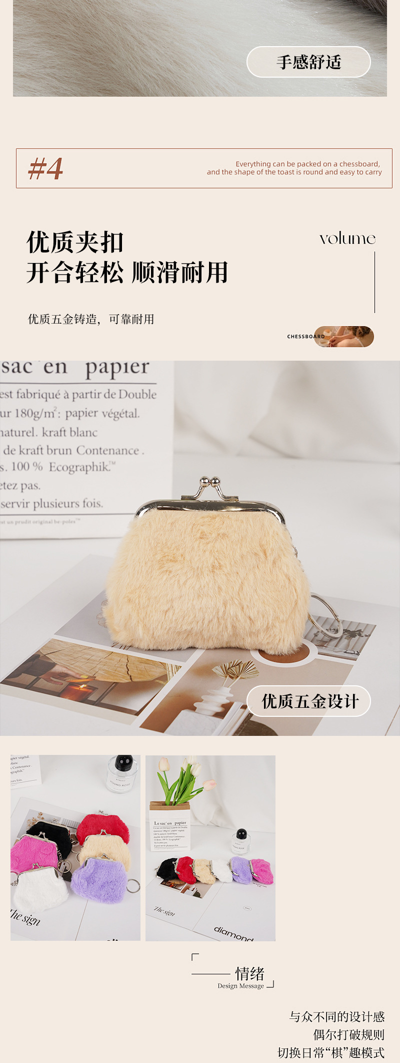 레트로 여성용 가방 동전 지갑 여성용 짧은 지갑 버클 토끼털 핸드백 동전 지갑 플러시 2025 신상스토어 가기