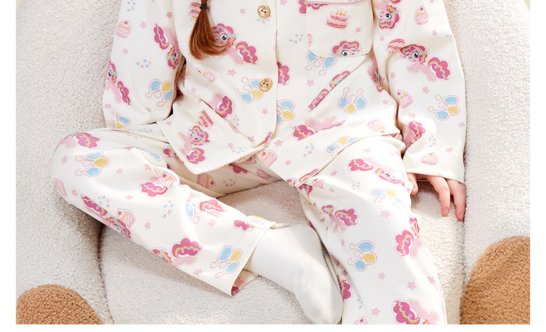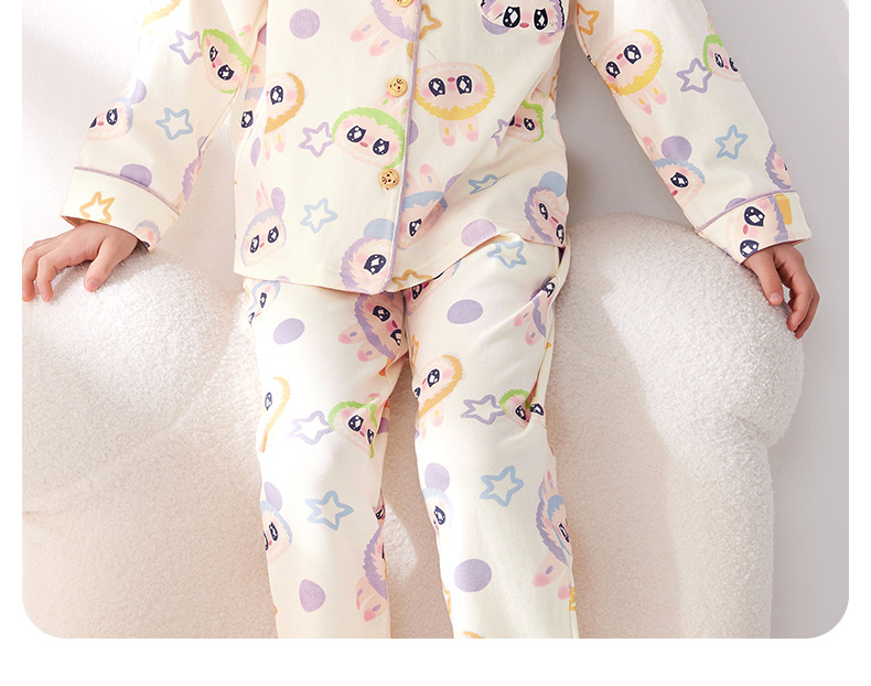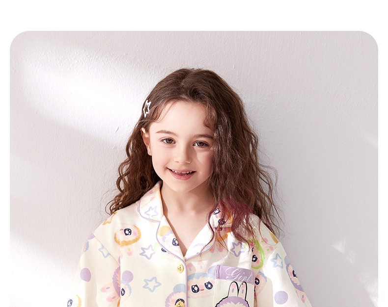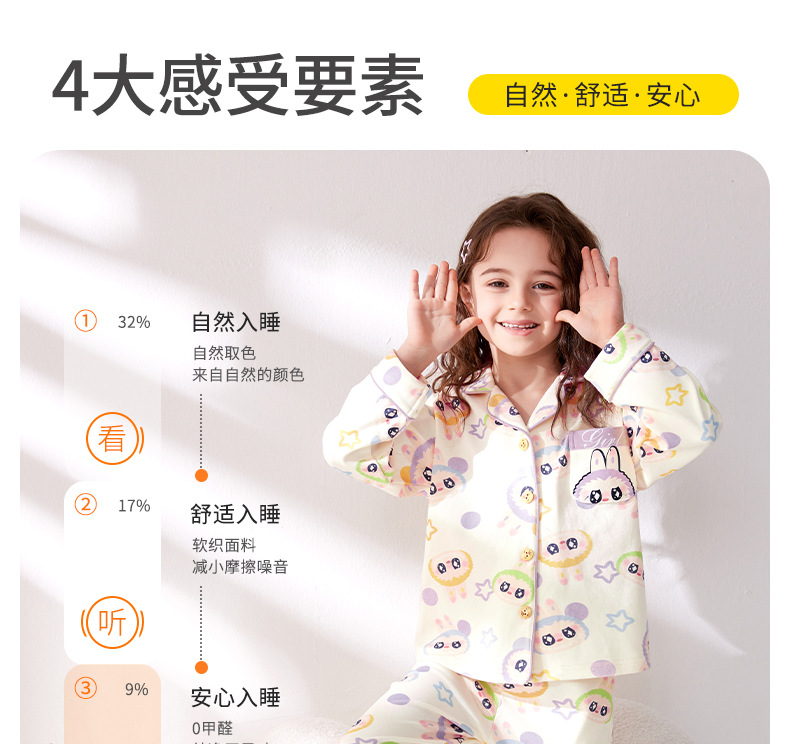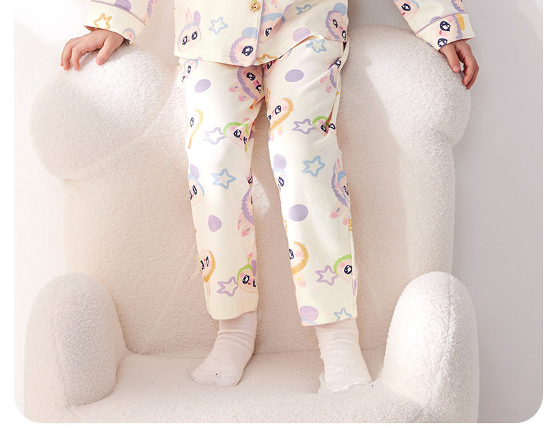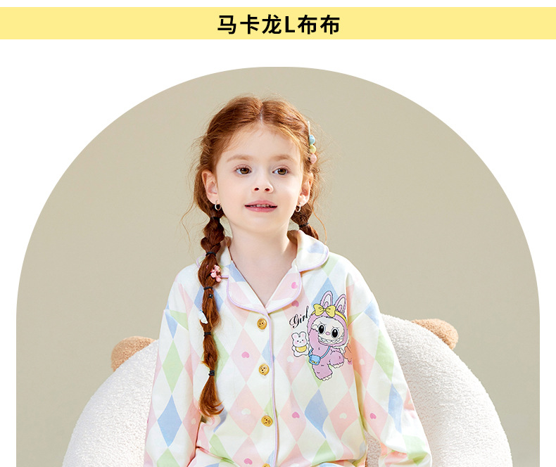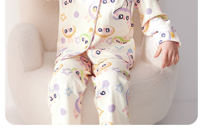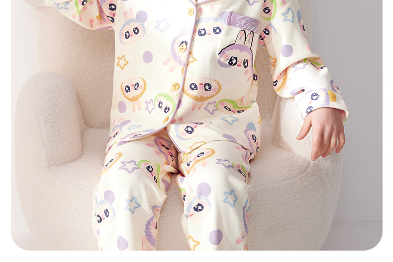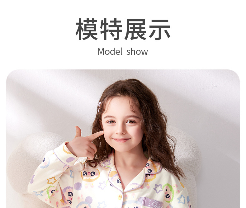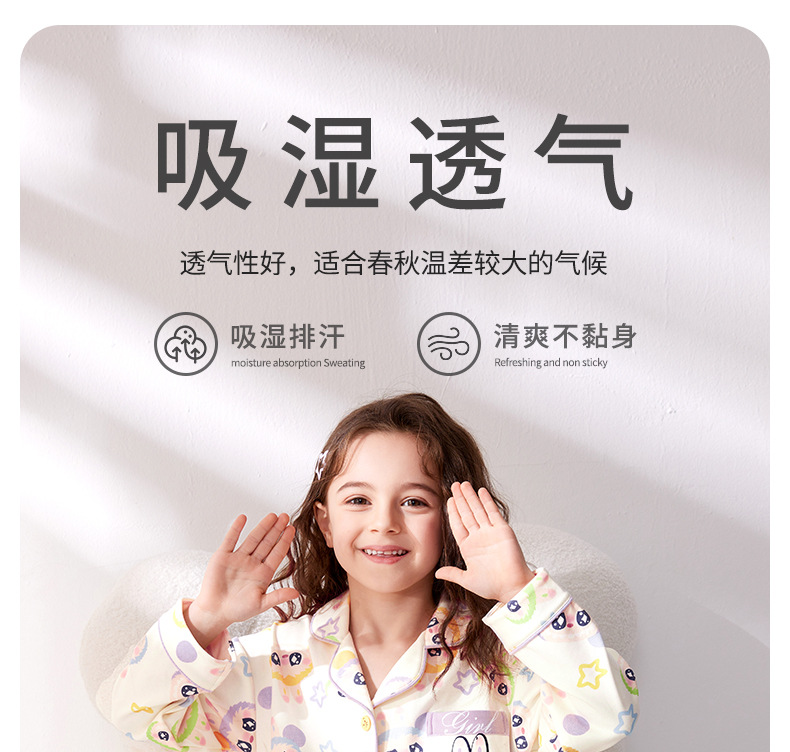 어린이 순면 잠옷 소녀의 봄과 가을 긴 소매 2025 새로운 스타일 큰 소년 소녀의 만화 홈 의류 세트스토어 가기