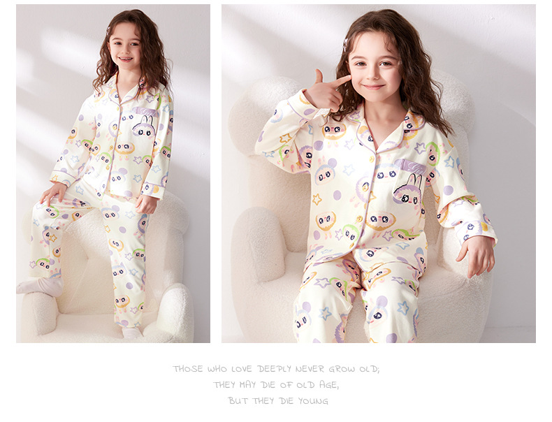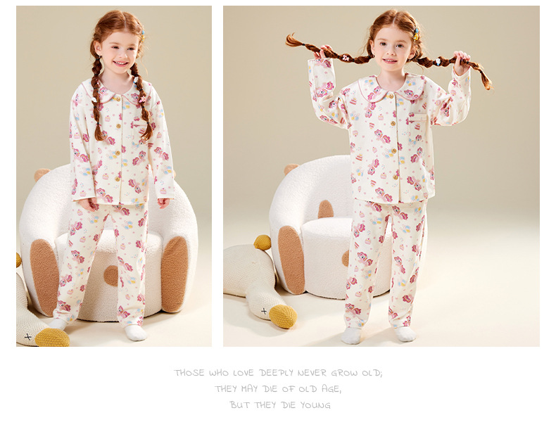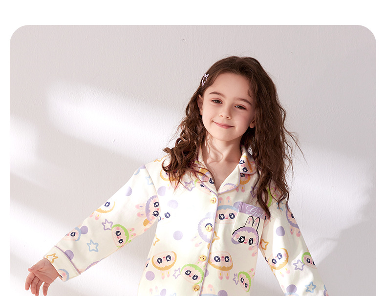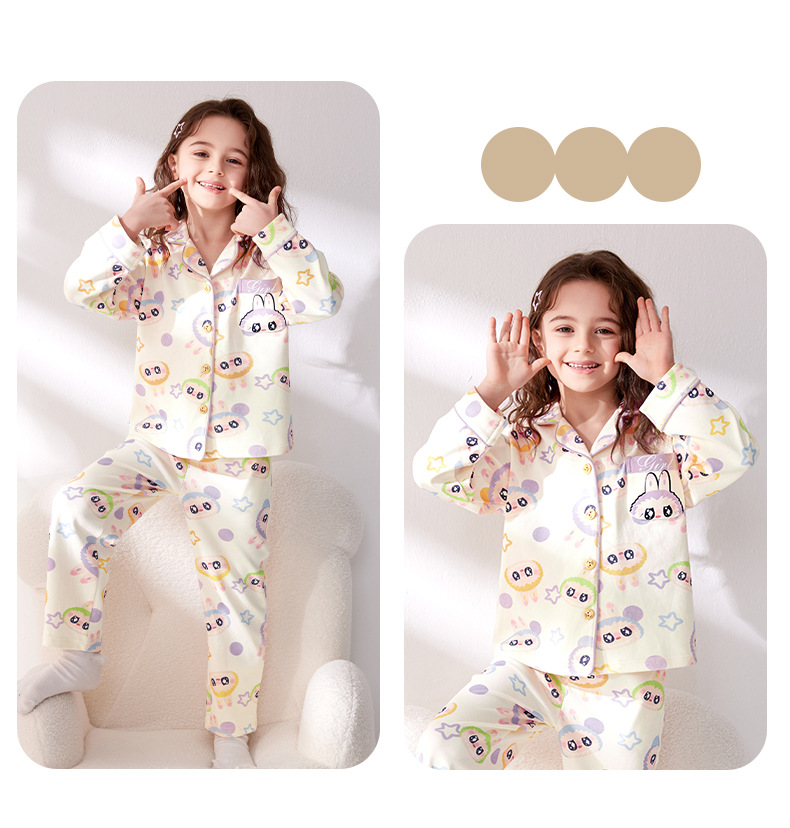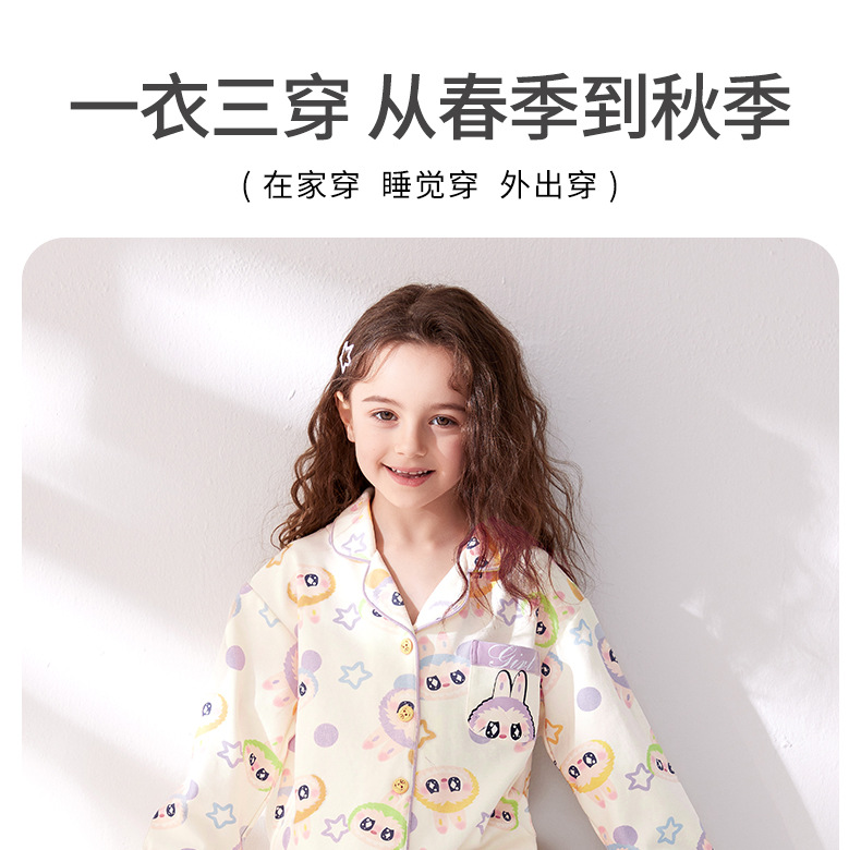 어린이 순면 잠옷 소녀의 봄과 가을 긴 소매 2025 새로운 스타일 큰 소년 소녀의 만화 홈 의류 세트