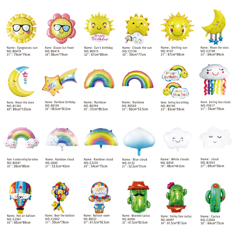 무지개 다리 알루미늄 호일 풍선 술 흰 구름 태양 만화 미소 귀여운 구름 해바라기 파티 장식 풍선스토어 가기