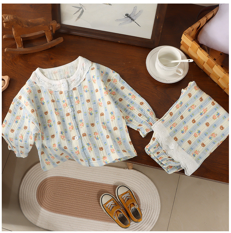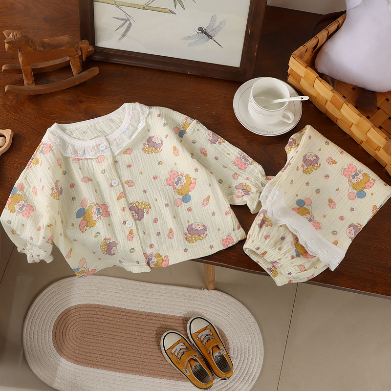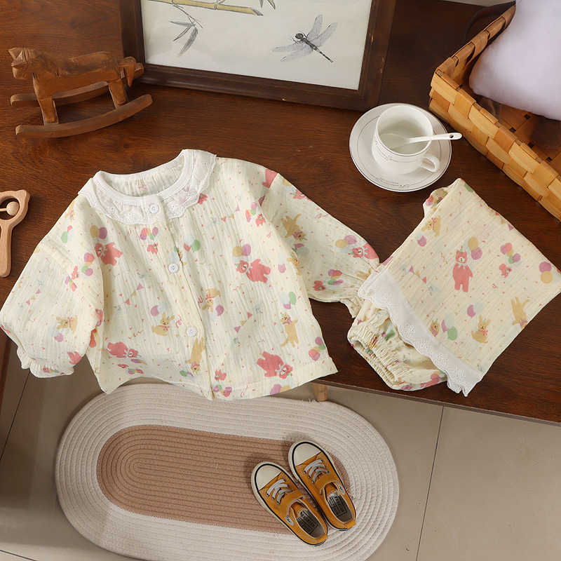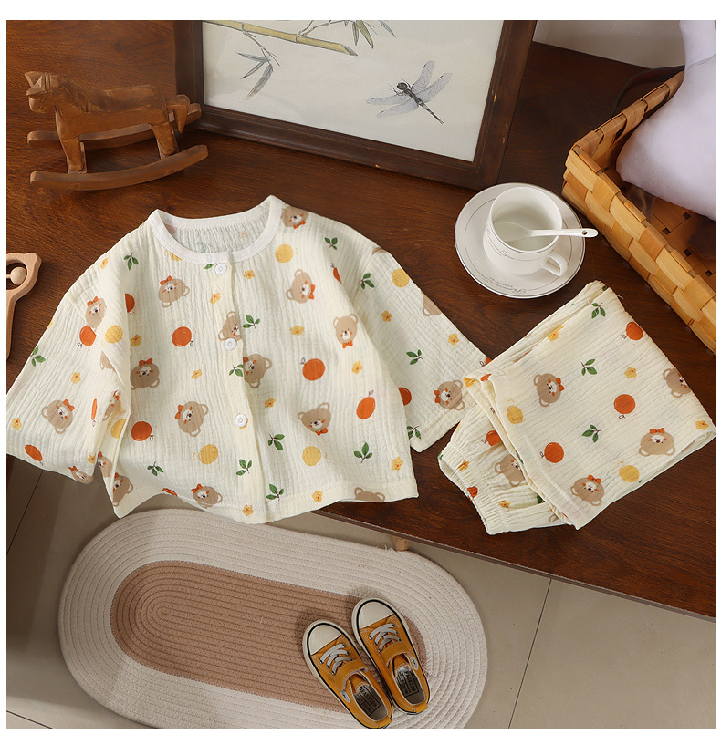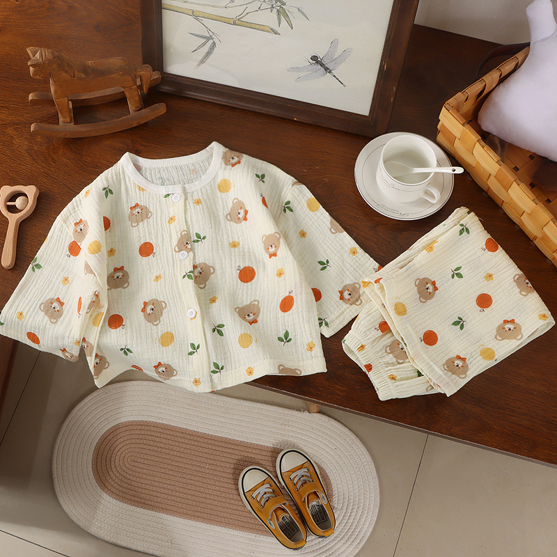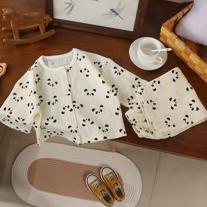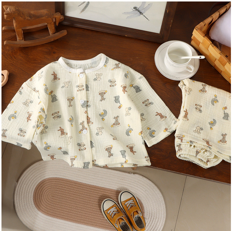 어린이 면사 홈 의류 여름 어린이 면화 파자마 세트 아기의 자른 소매 바지 땀 흡수 에어컨 옷스토어 가기