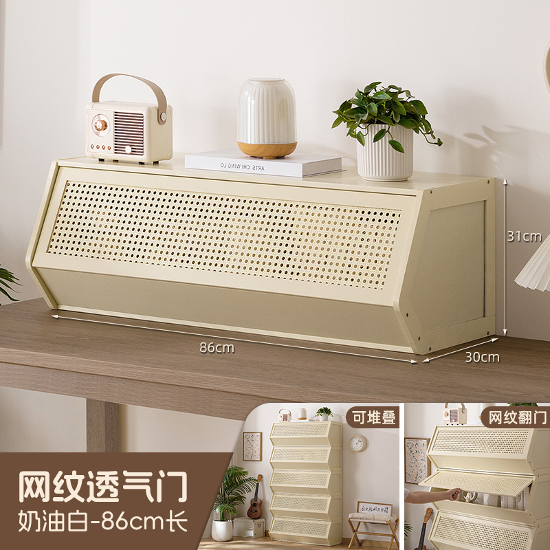 • [자유스태킹] 메쉬통기성 도어-크림화이트 86롱