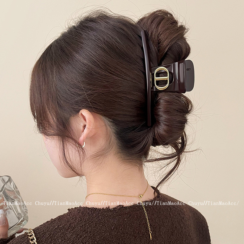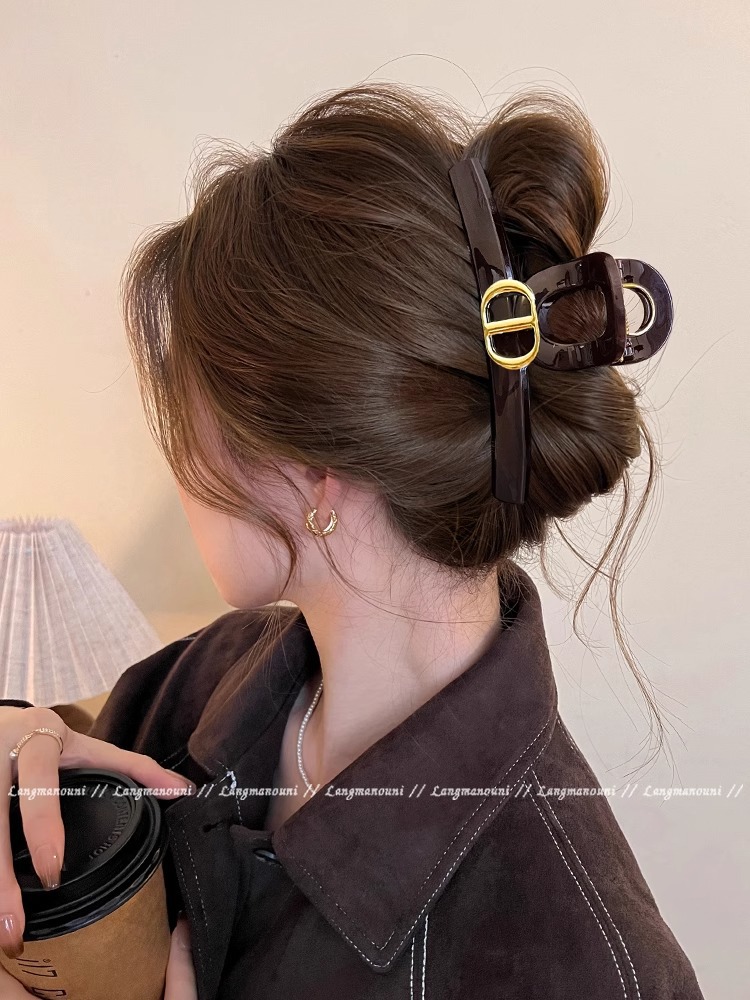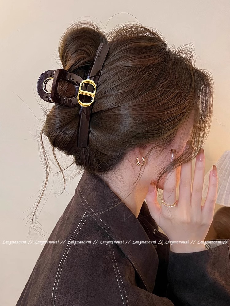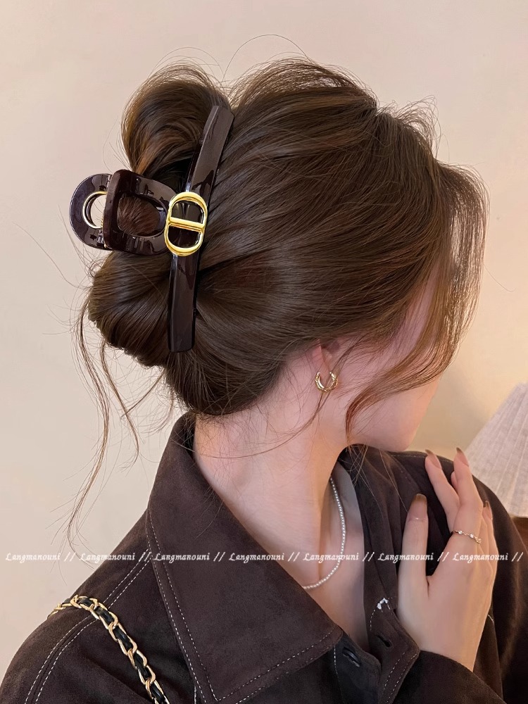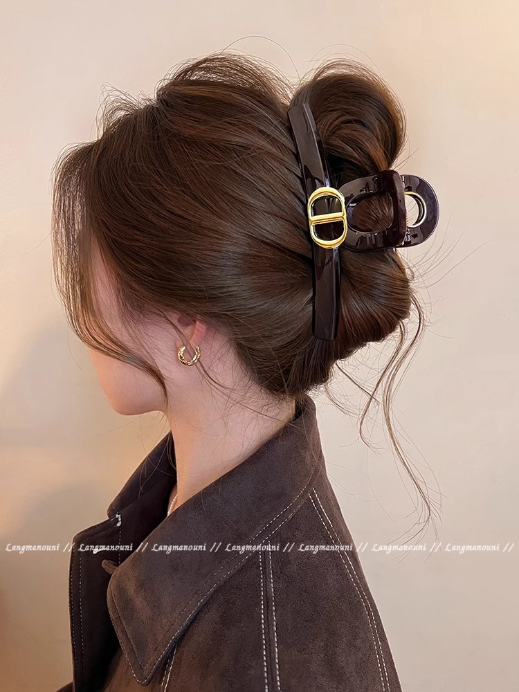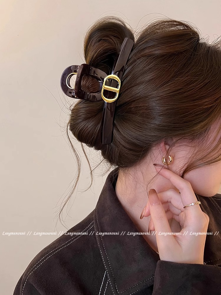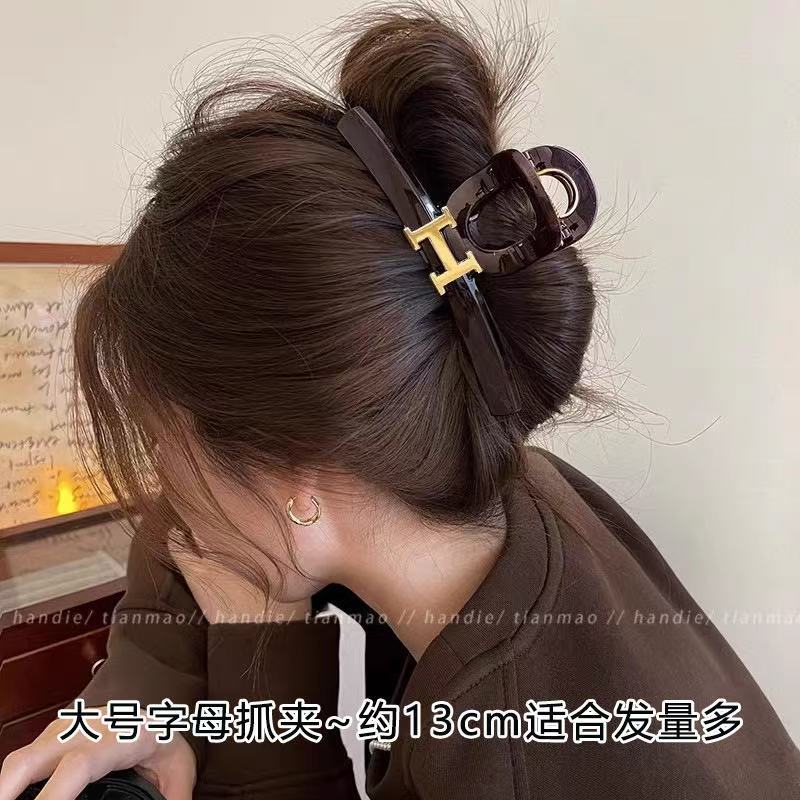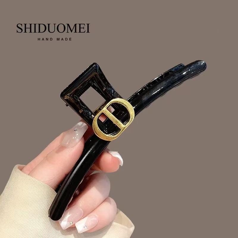 레트로 골드 라벨 대형 그랩 클립 여성용 하이 엔드 상어 클립 2025 새로운 스타일 헤어 클립 헤드 헤어 액세서리