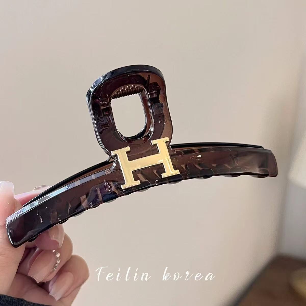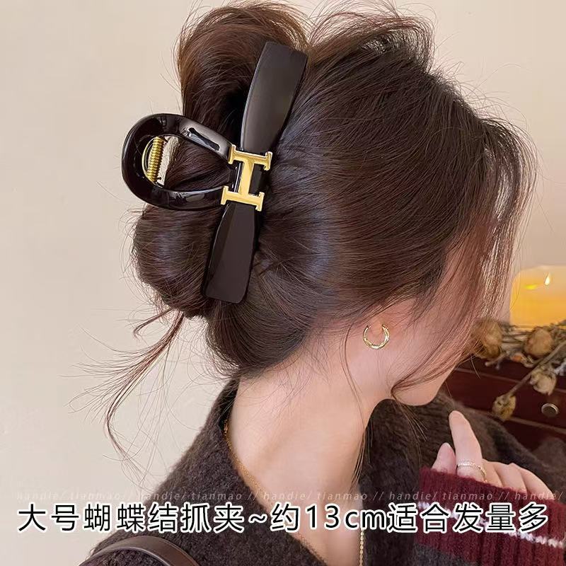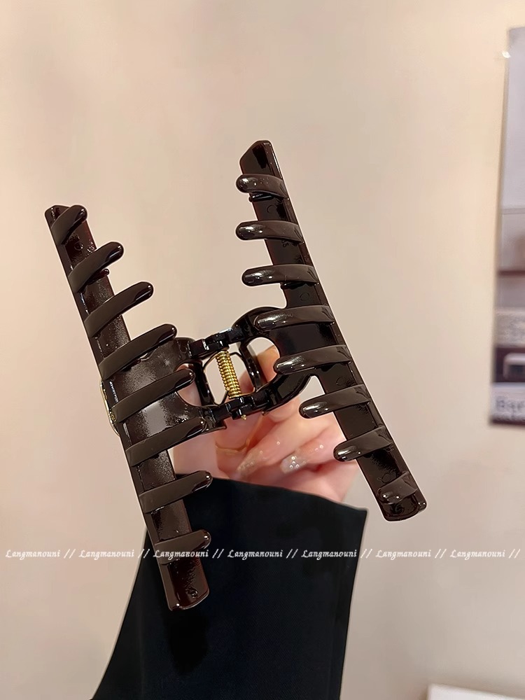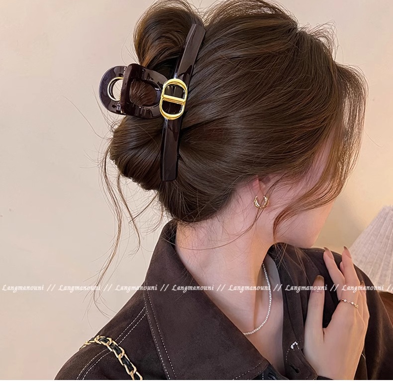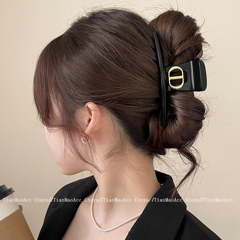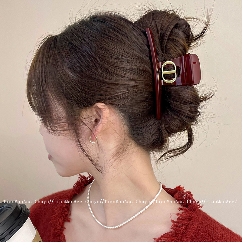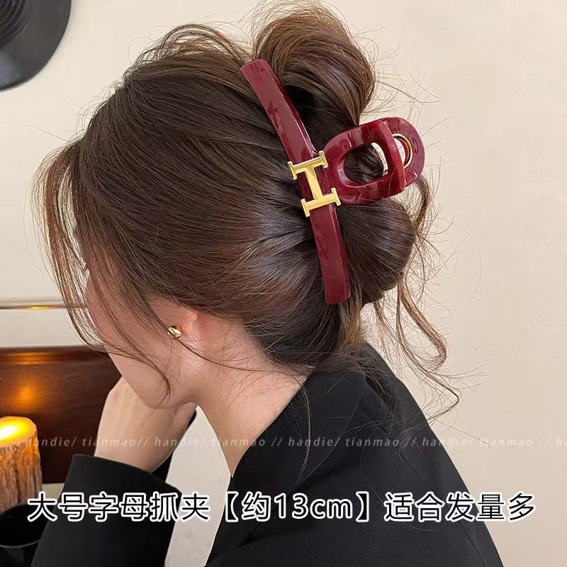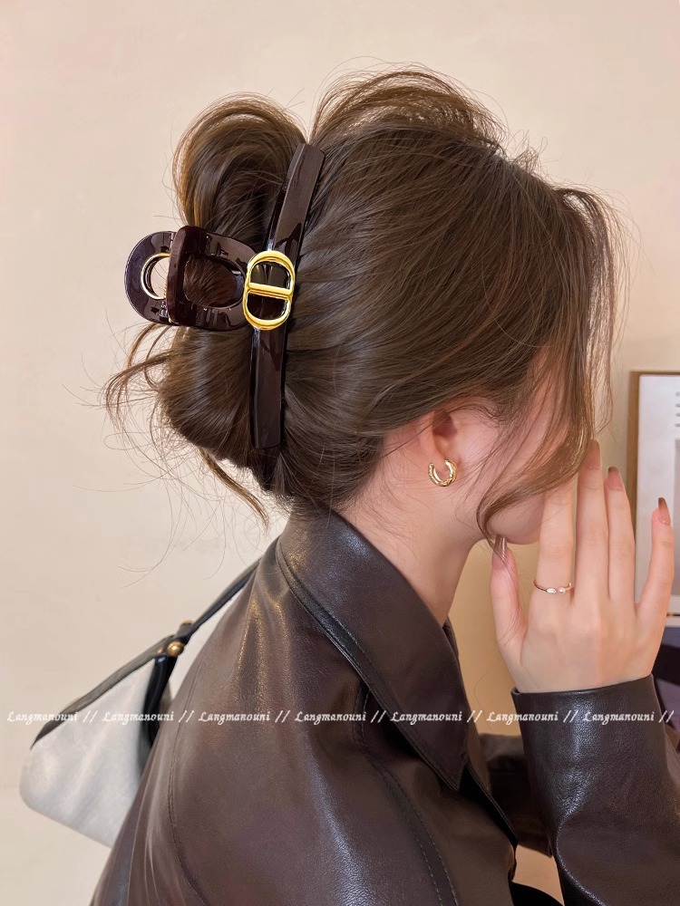 레트로 골드 라벨 대형 그랩 클립 여성용 하이 엔드 상어 클립 2025 새로운 스타일 헤어 클립 헤드 헤어 액세서리