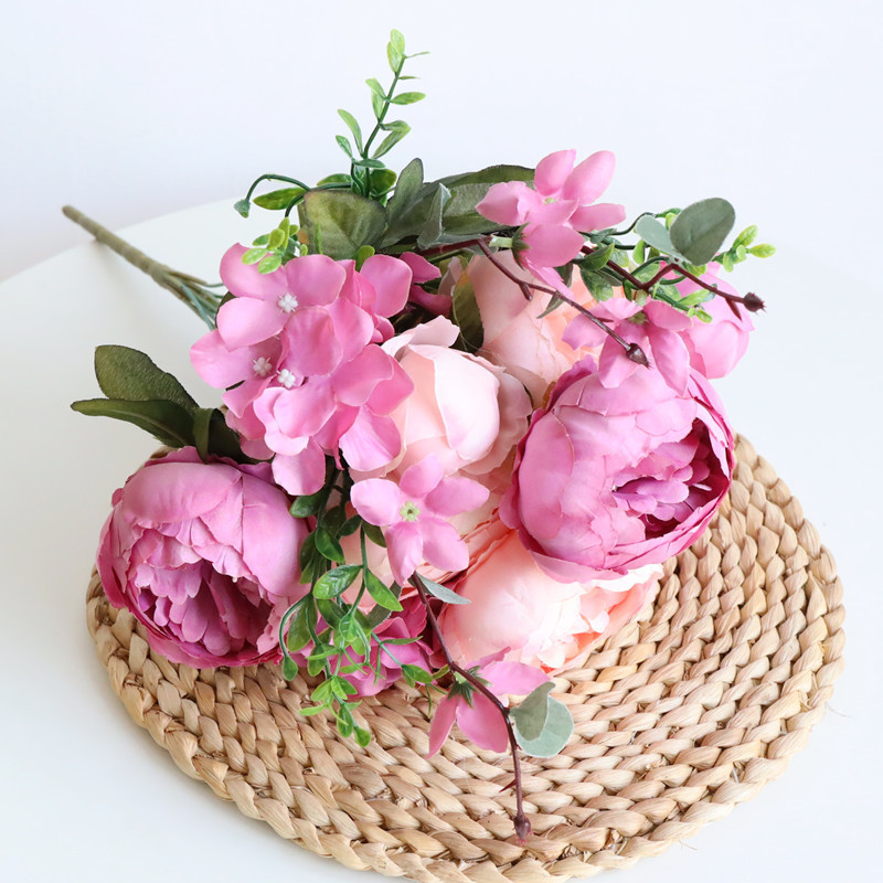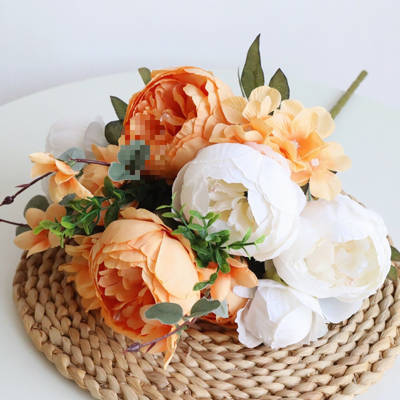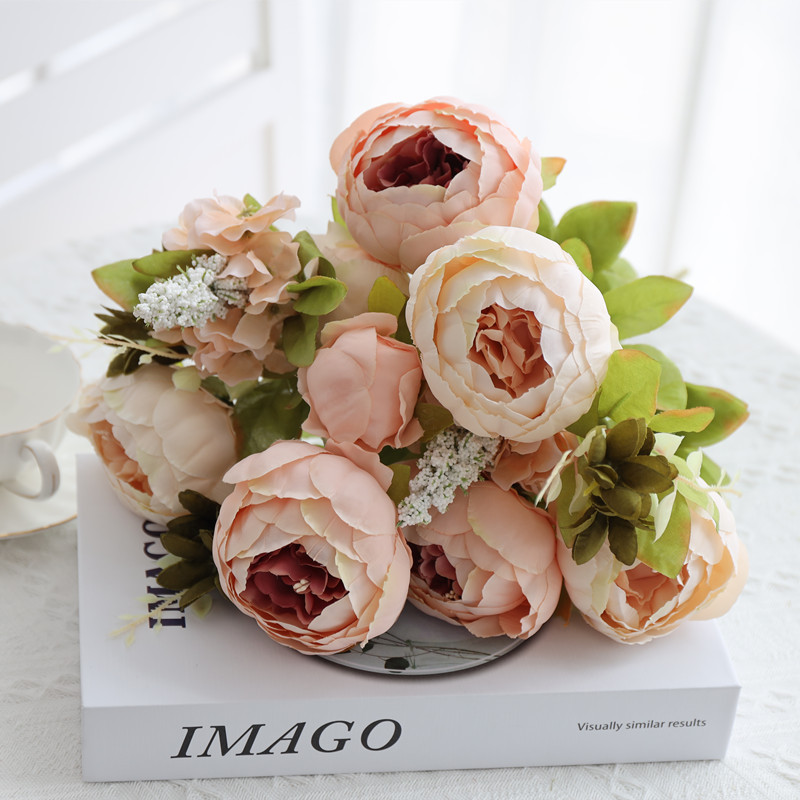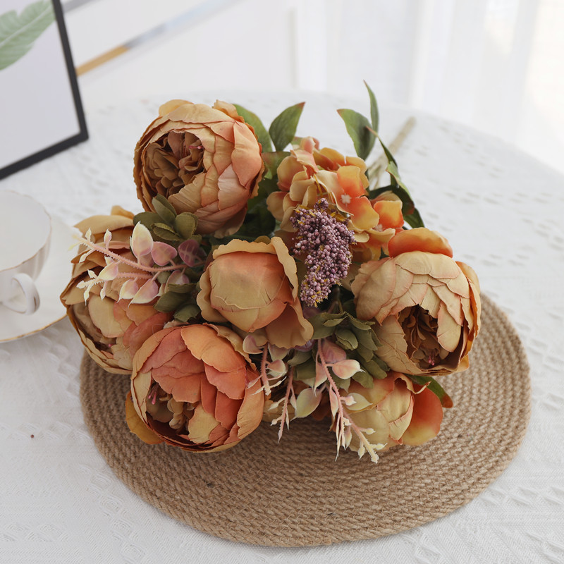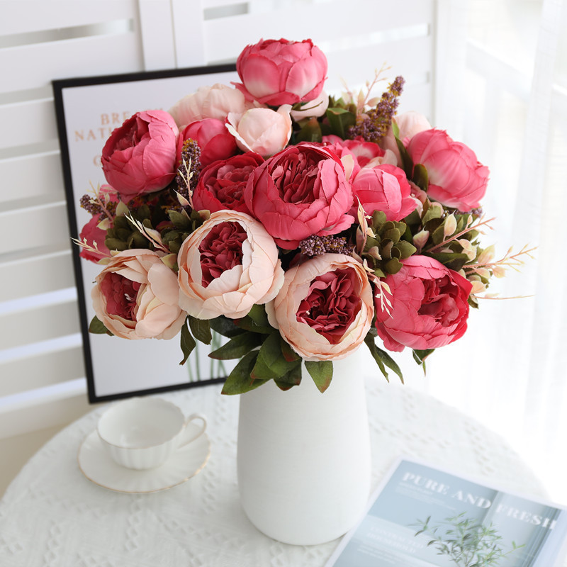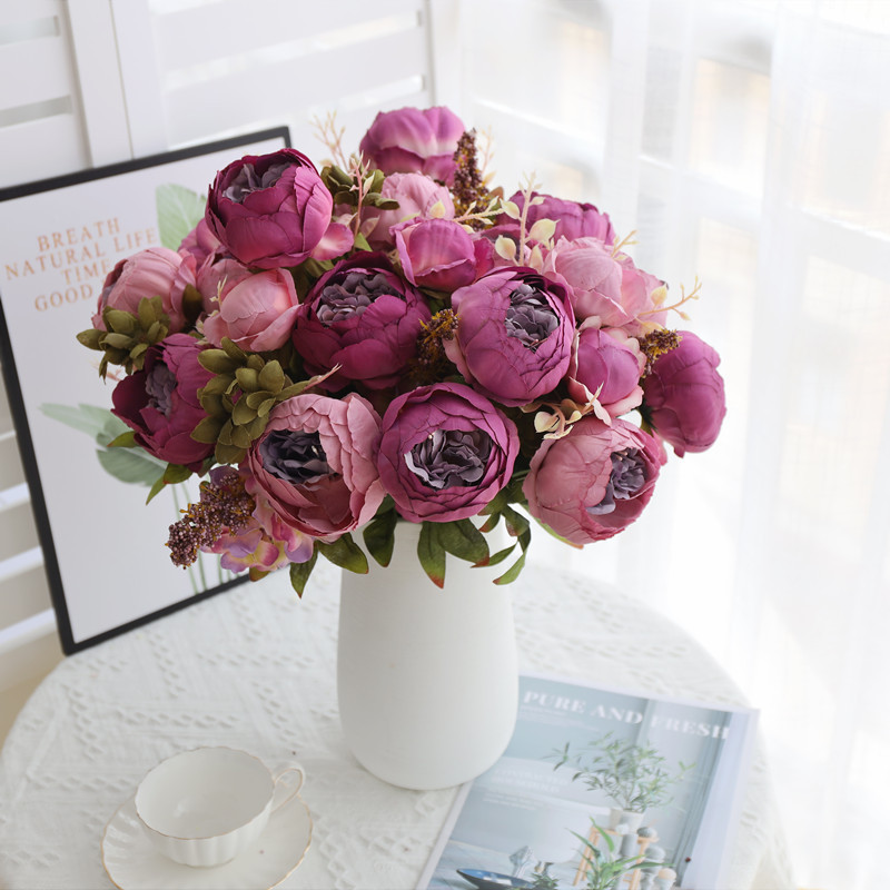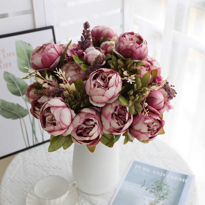 유럽 스타일 13 코어 포장 모란 모란 꽃 거실 홈 테이블 장식 꽃 가짜 꽃 장식품