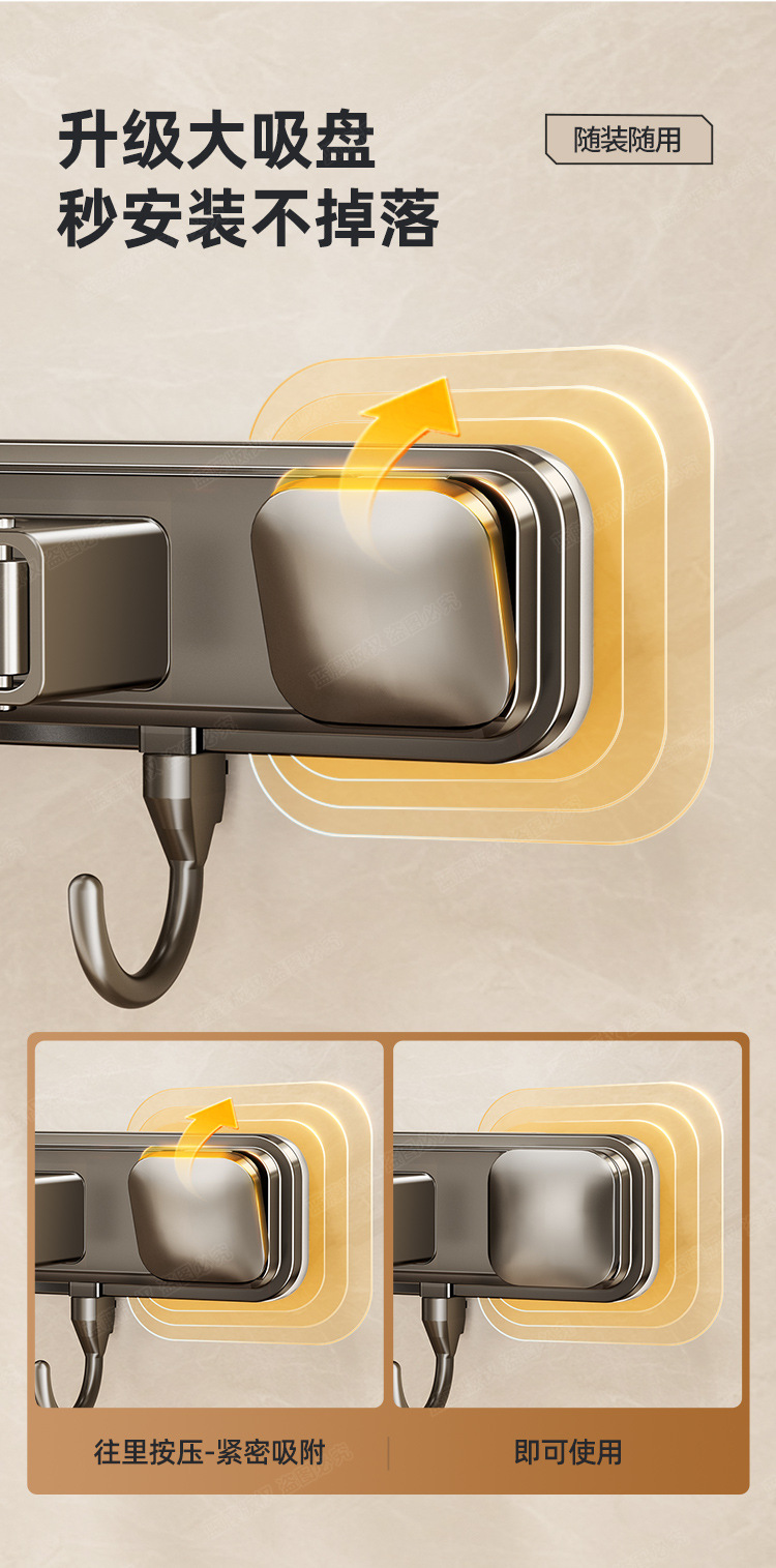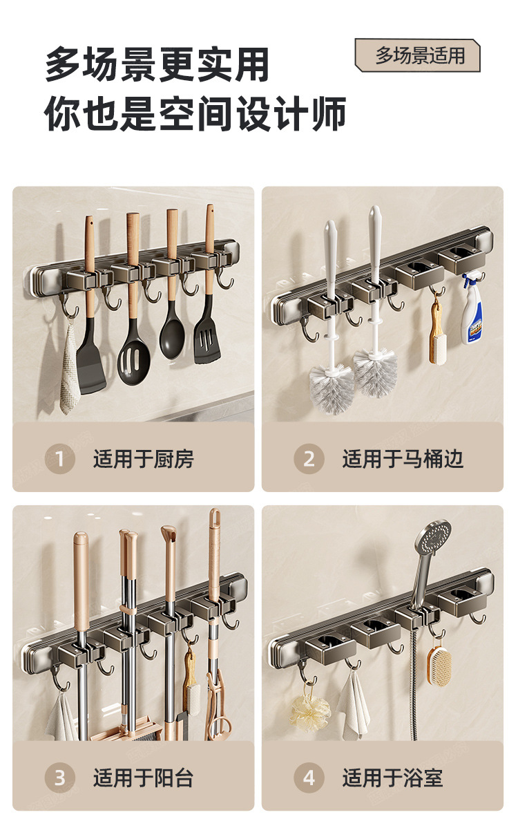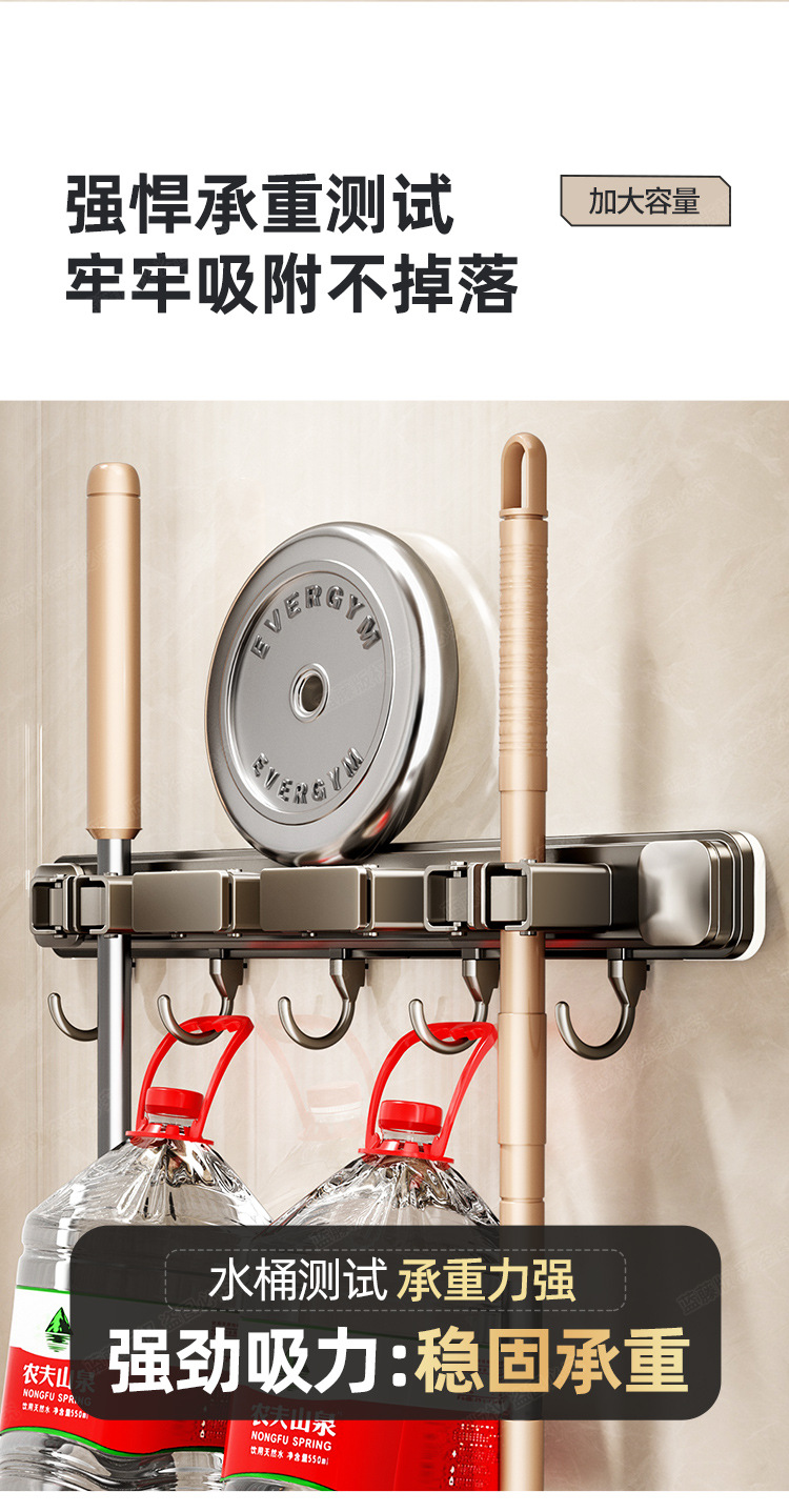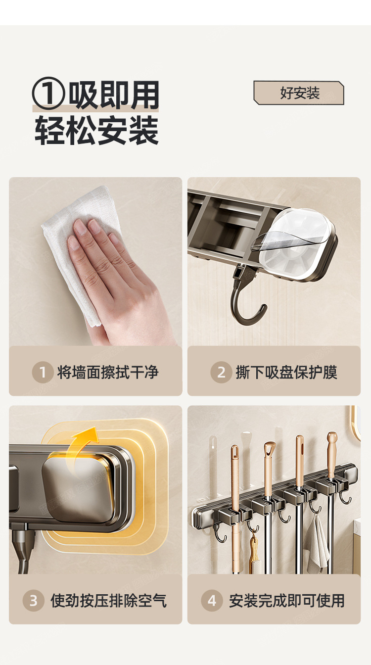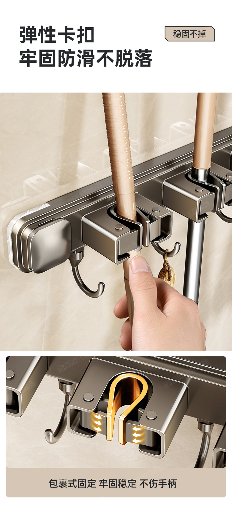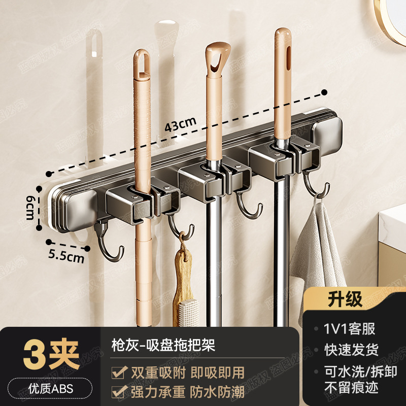 • 건 애쉬 - 흡입 컵 걸레 홀더 클립 3개 후크 4개