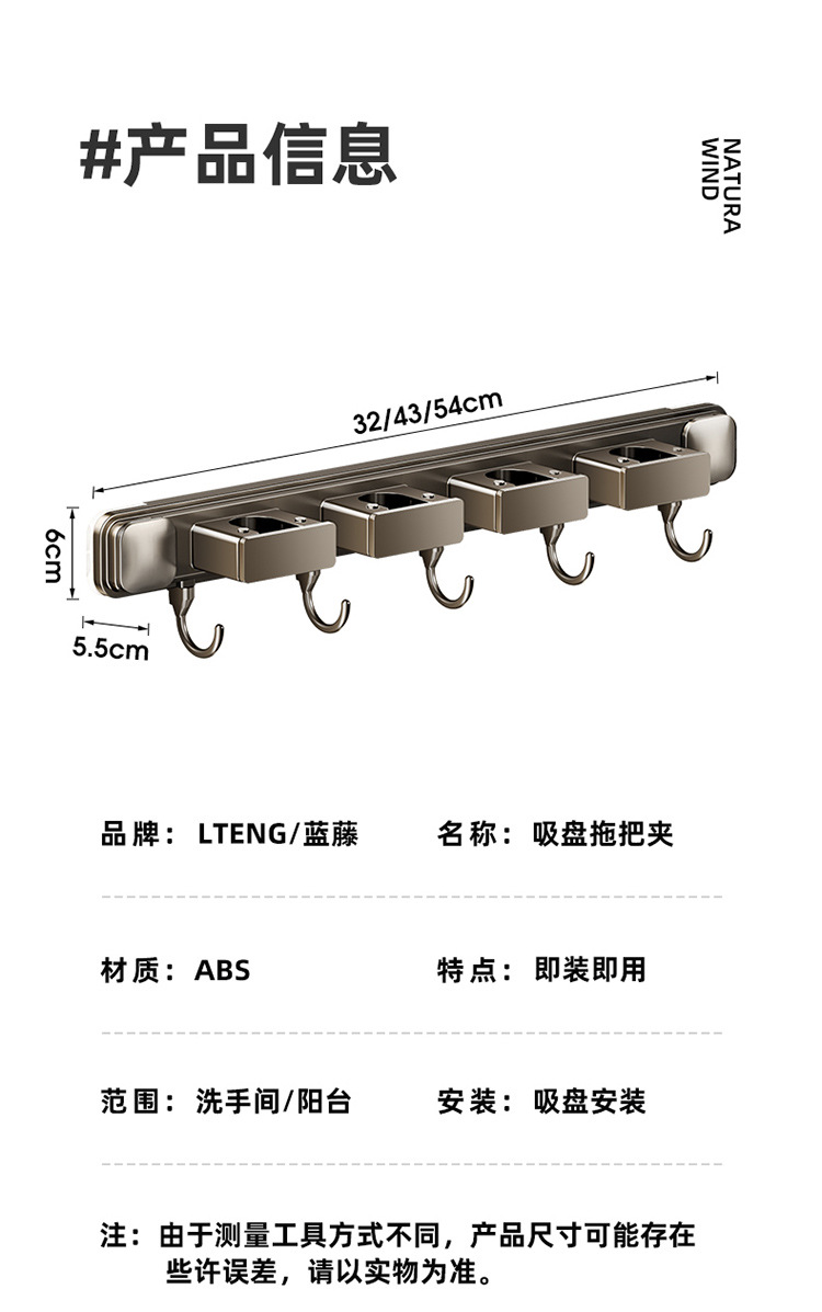 • Gun Ash - 흡입 컵 걸레 홀더 클립 4개 후크 5개