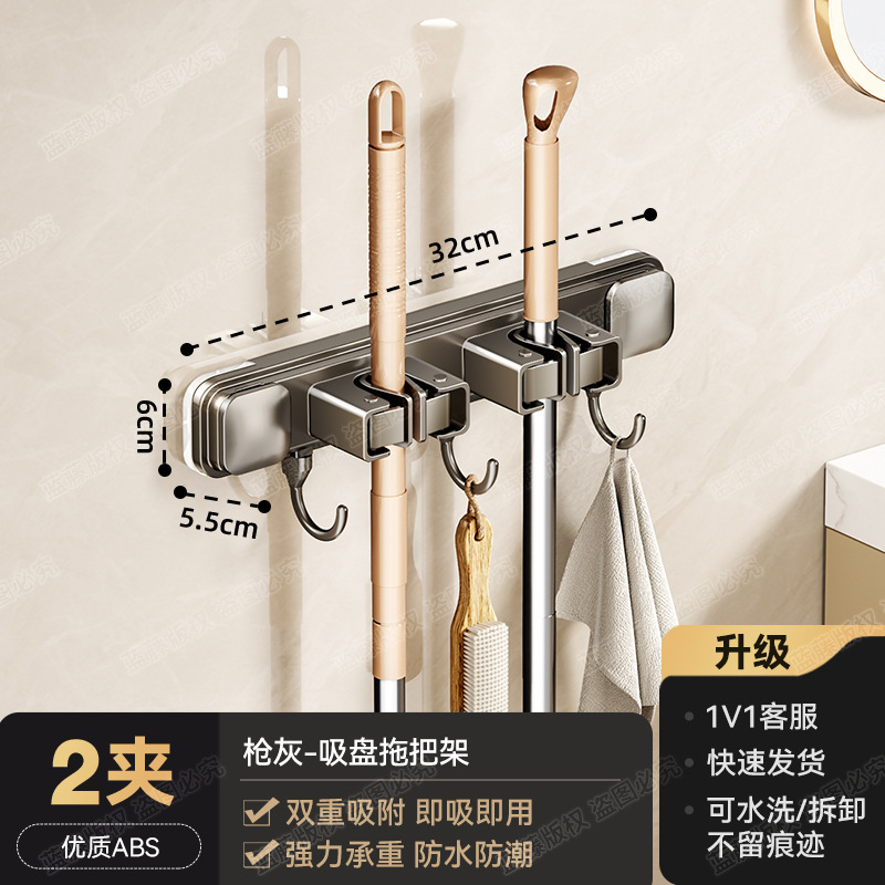 • 건 애쉬 - 흡입 컵 걸레 홀더 클립 2개 후크 3개