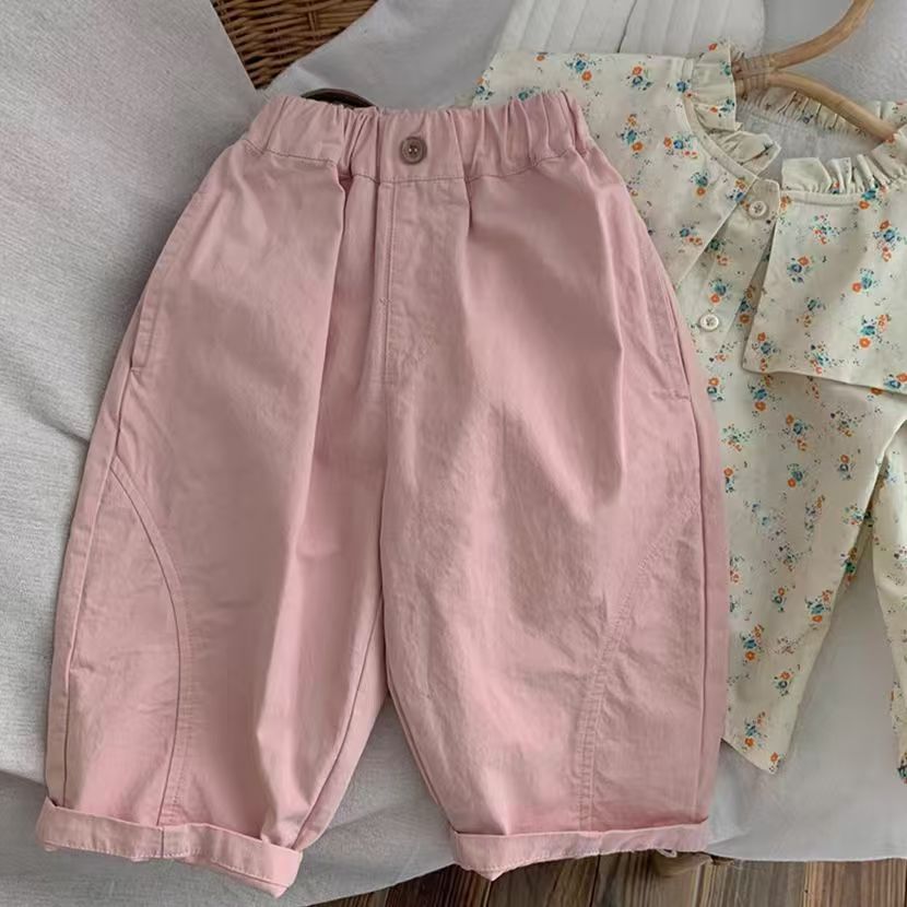 올매치 핑크 어린이 바지 2025 여름 얇은 유행 소녀 느슨한 할란 바지 봄과 가을 간단한 캐주얼 바지스토어 가기