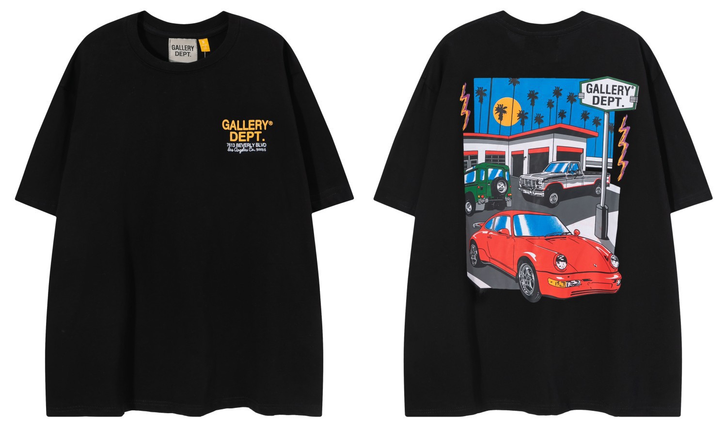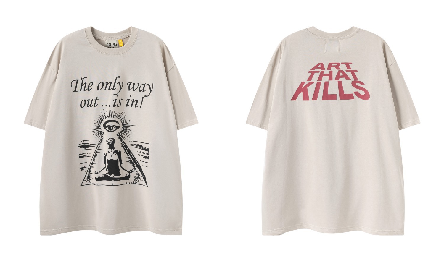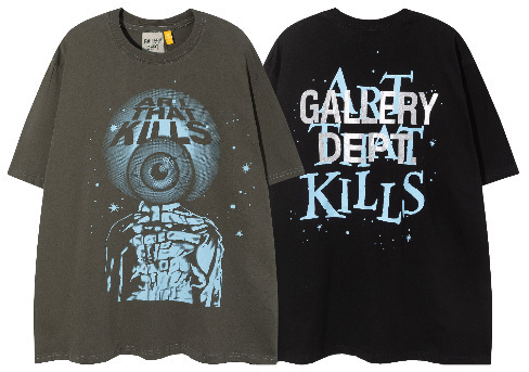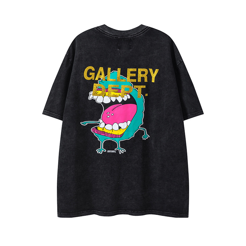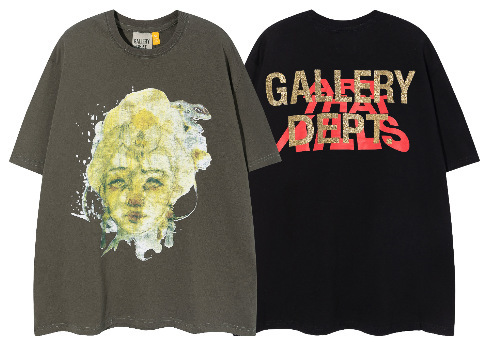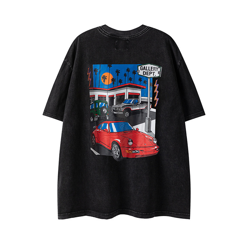 다양한 패션 브랜드 GALLERY DEPT 인쇄 여름 반팔 남성 라운드 넥 캐주얼 느슨한 티셔츠 남성과 여성스토어 가기