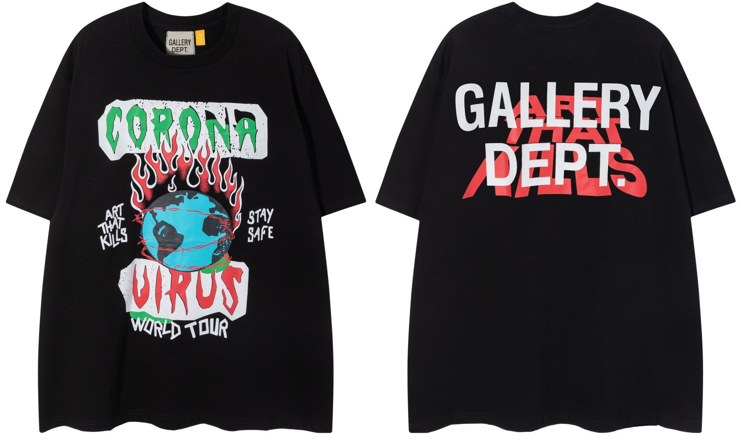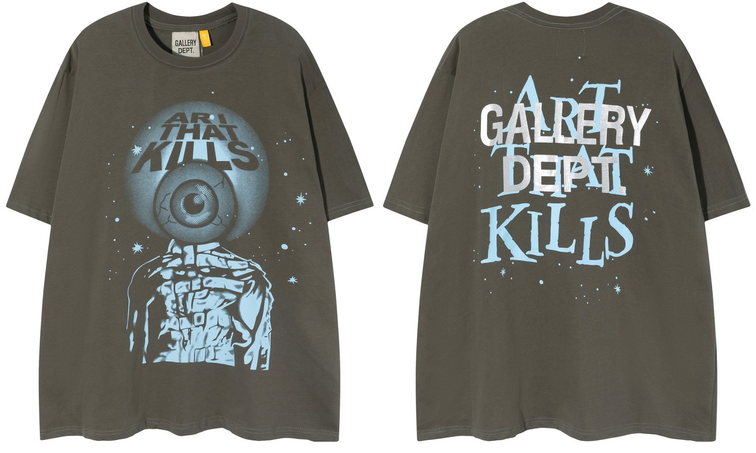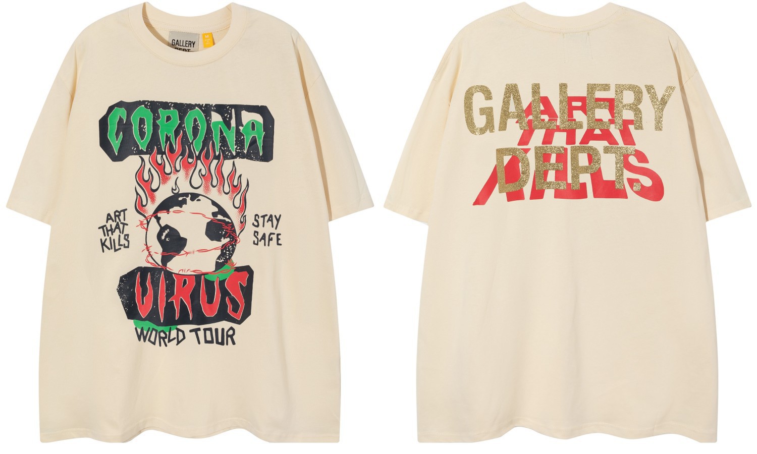 다양한 패션 브랜드 GALLERY DEPT 인쇄 여름 반팔 남성 라운드 넥 캐주얼 느슨한 티셔츠 남성과 여성스토어 가기