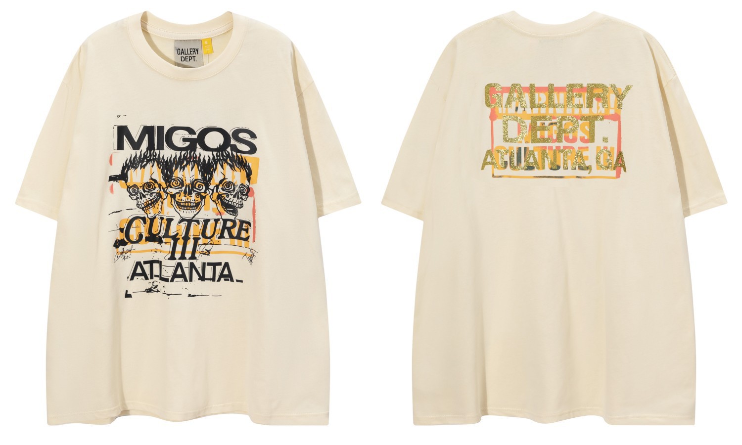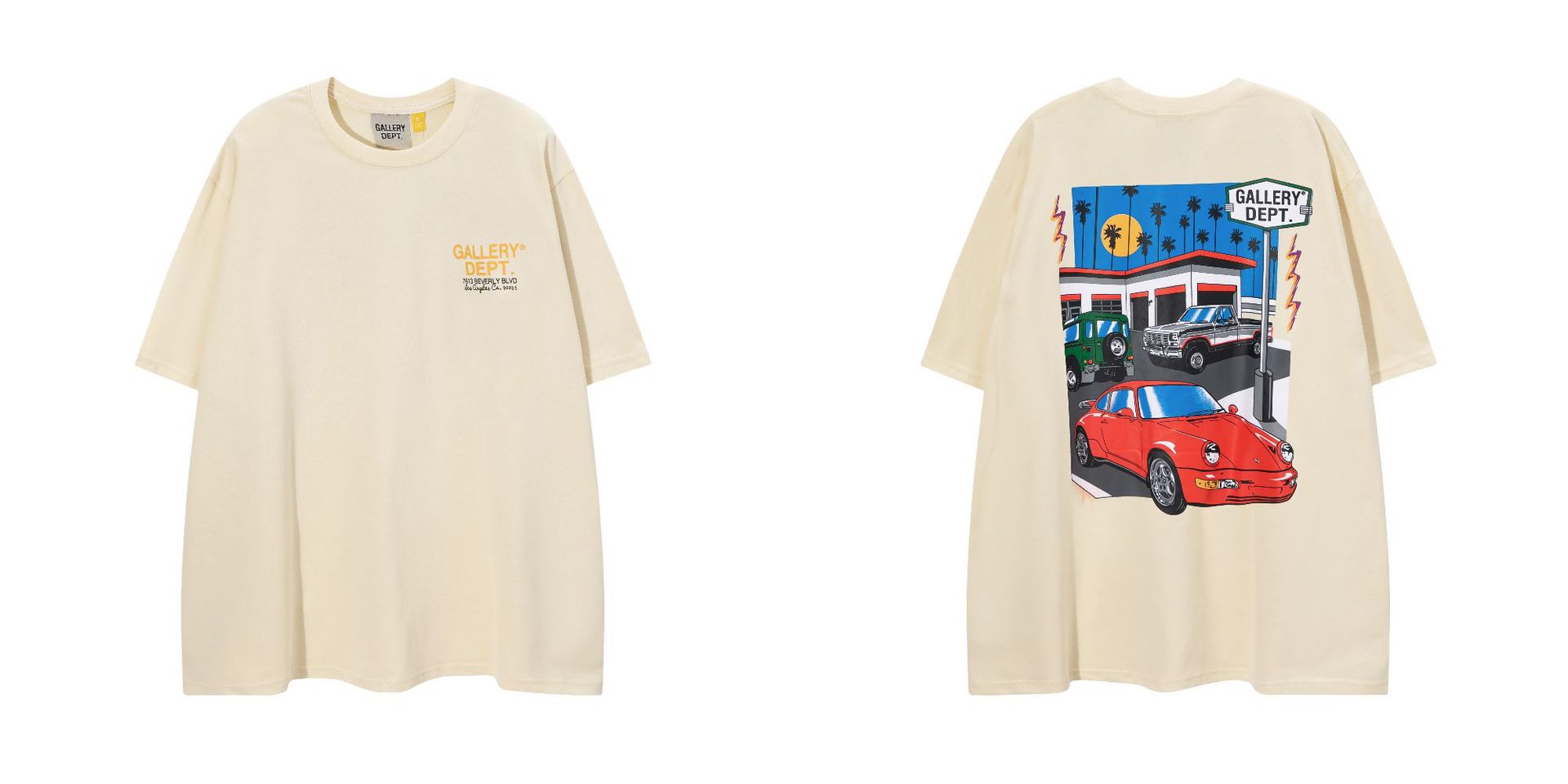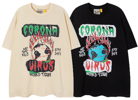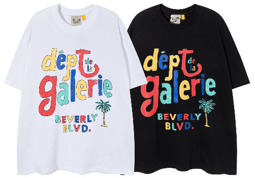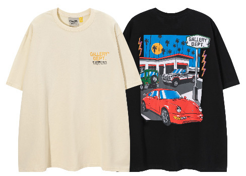 다양한 패션 브랜드 GALLERY DEPT 인쇄 여름 반팔 남성 라운드 넥 캐주얼 느슨한 티셔츠 남성과 여성