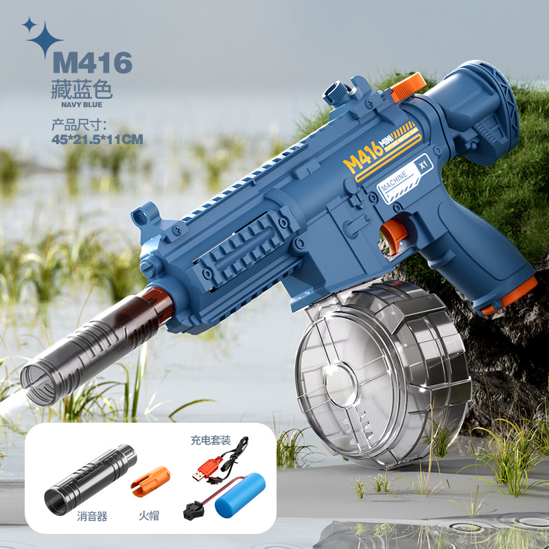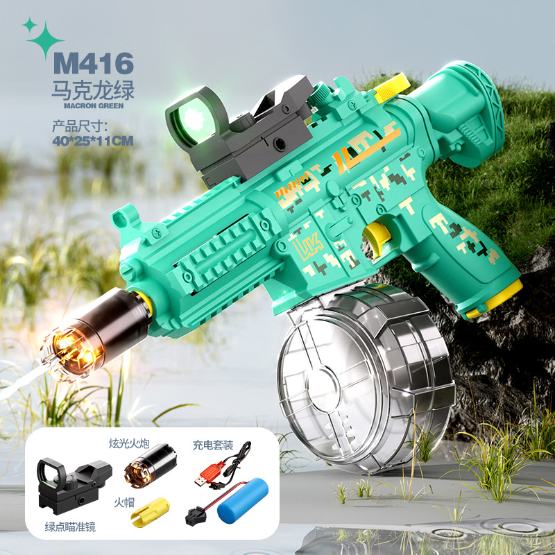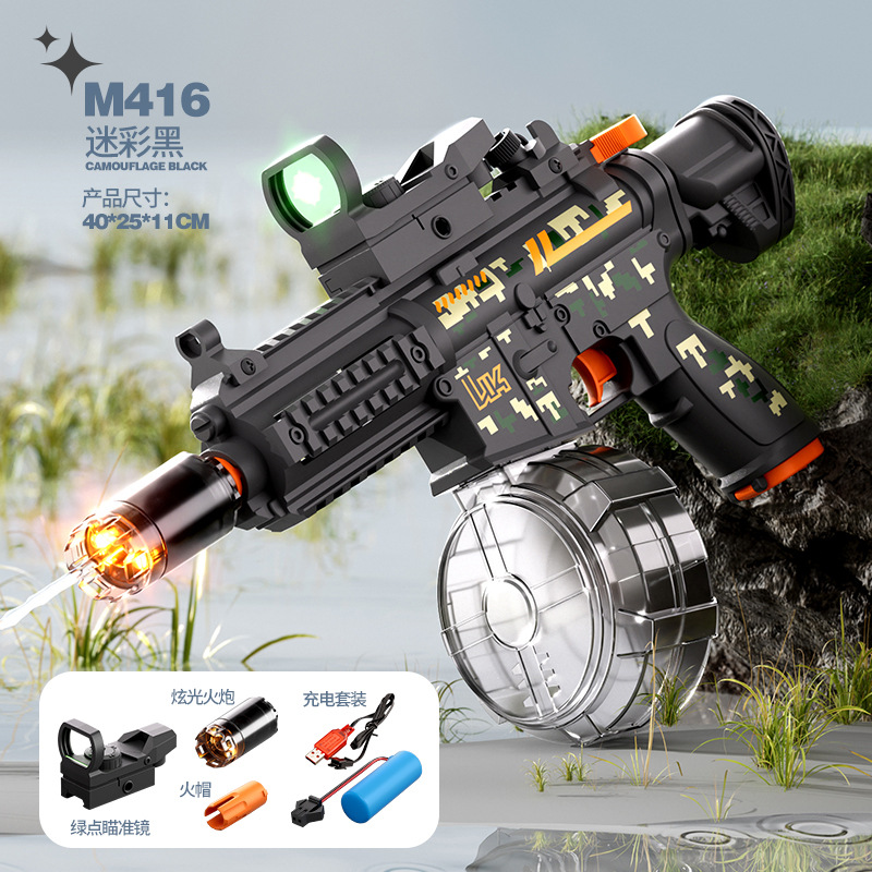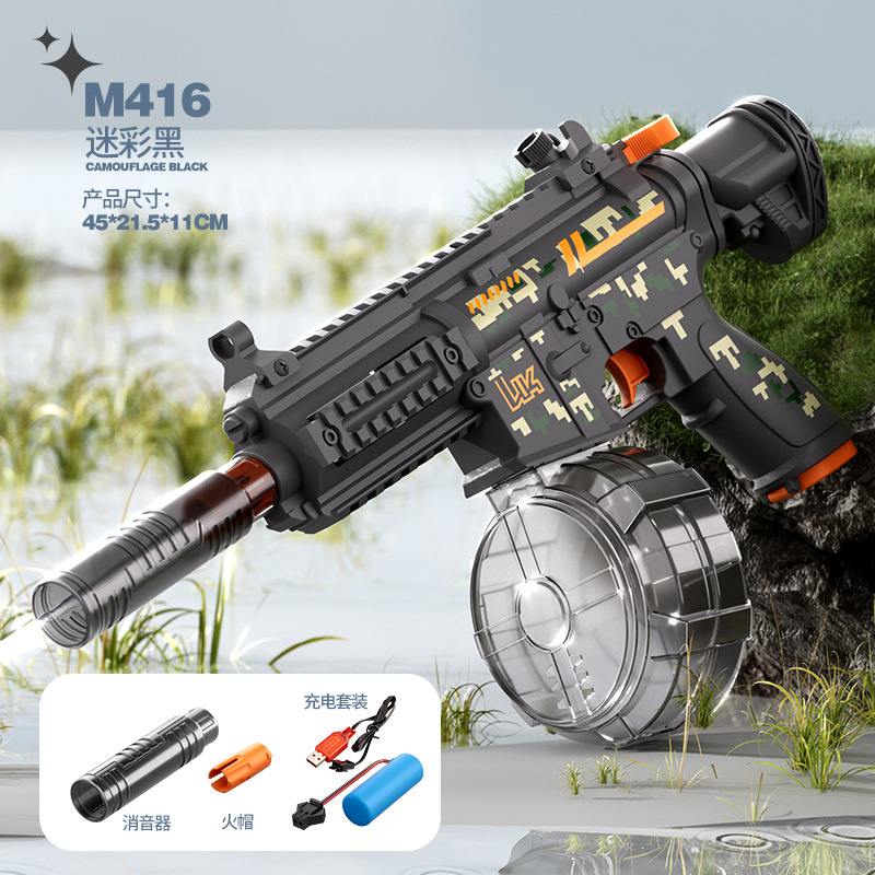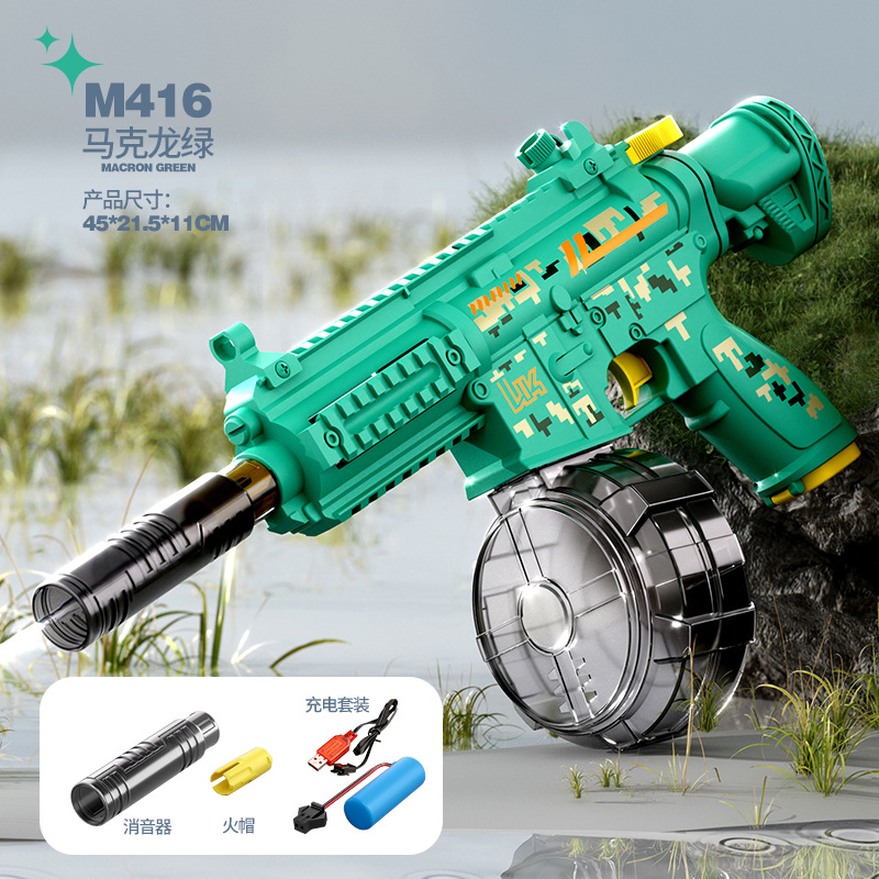 국경 간 M416 전기 물 총 고압 강한 물 스프레이 물 총 대용량 어린이 해변 물 장난감 잡아