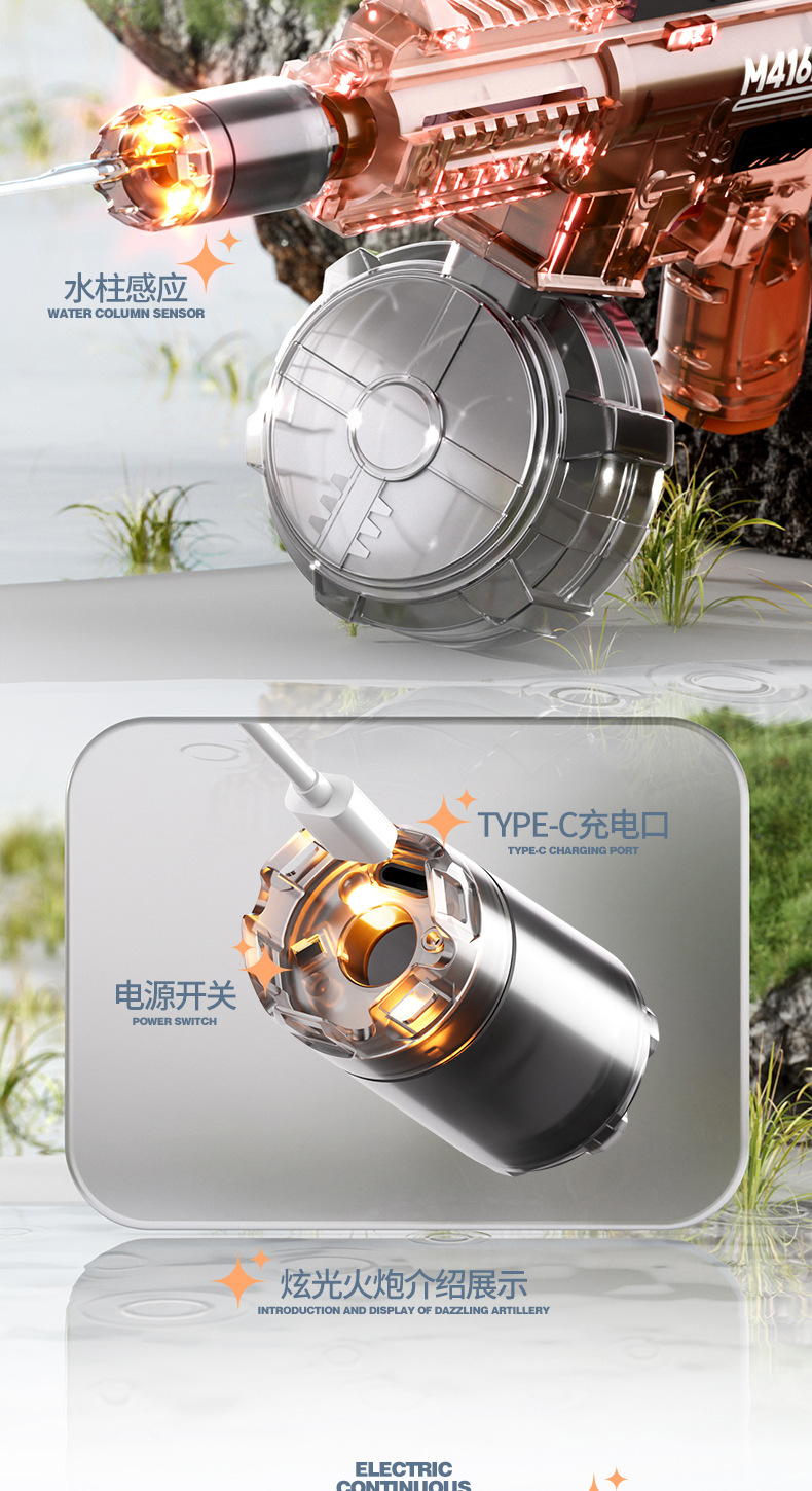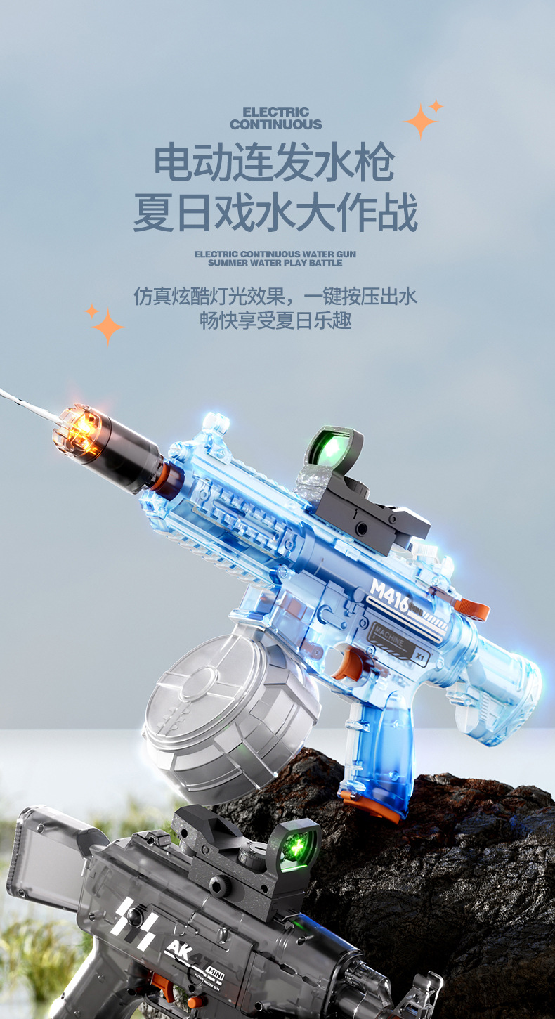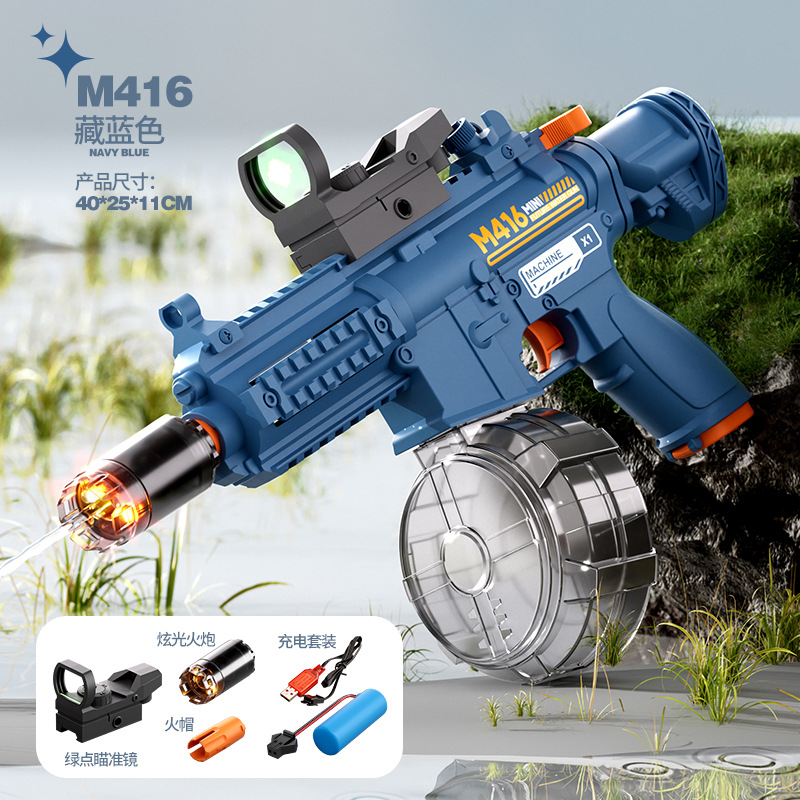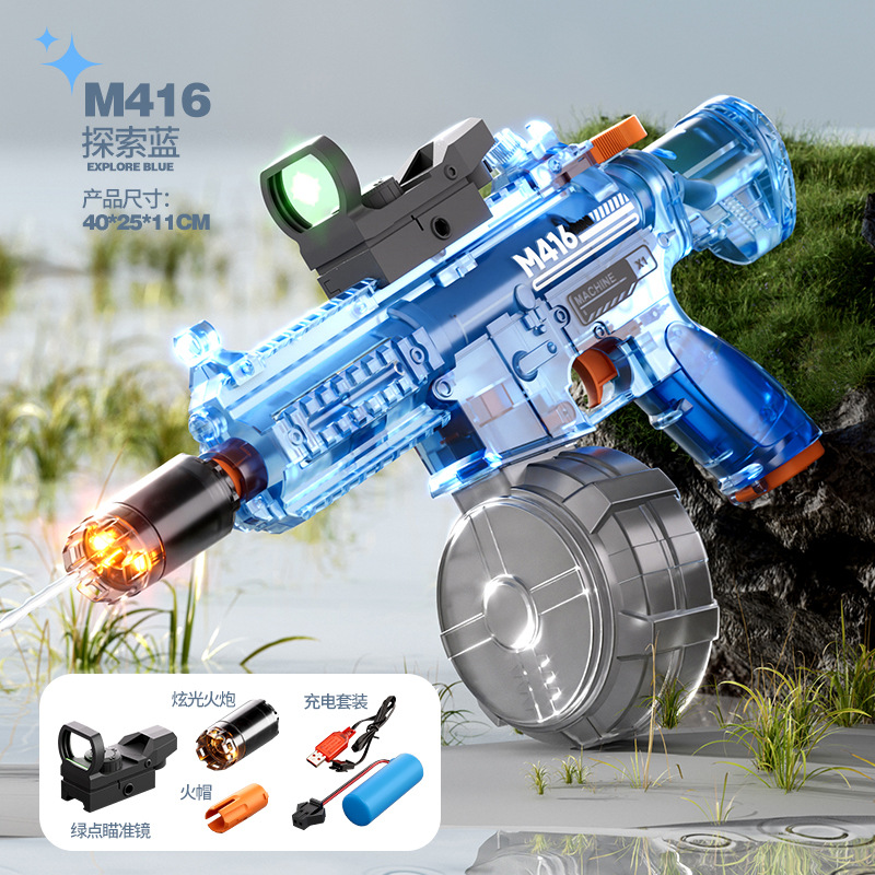 국경 간 M416 전기 물 총 고압 강한 물 스프레이 물 총 대용량 어린이 해변 물 장난감 잡아