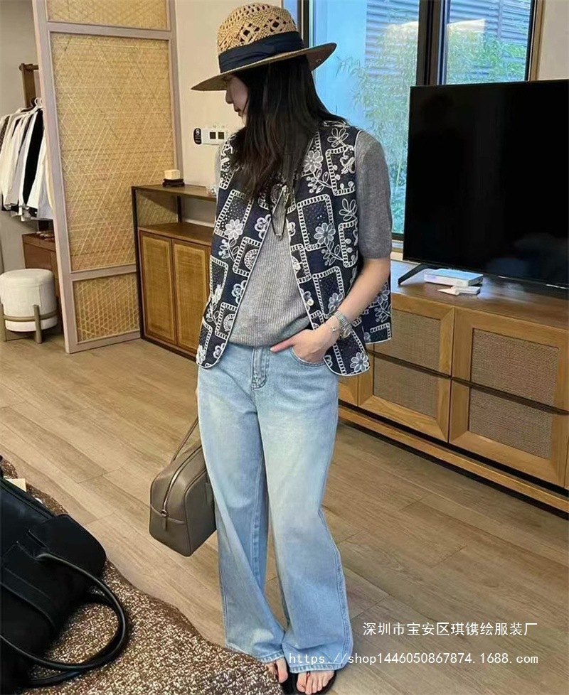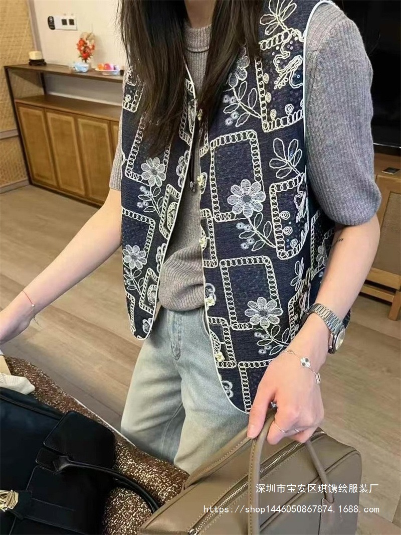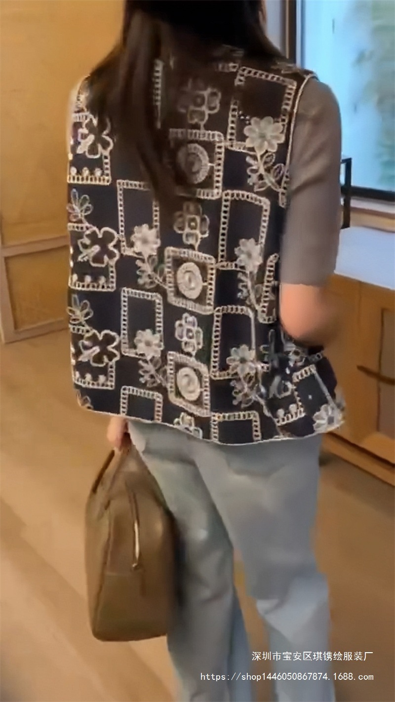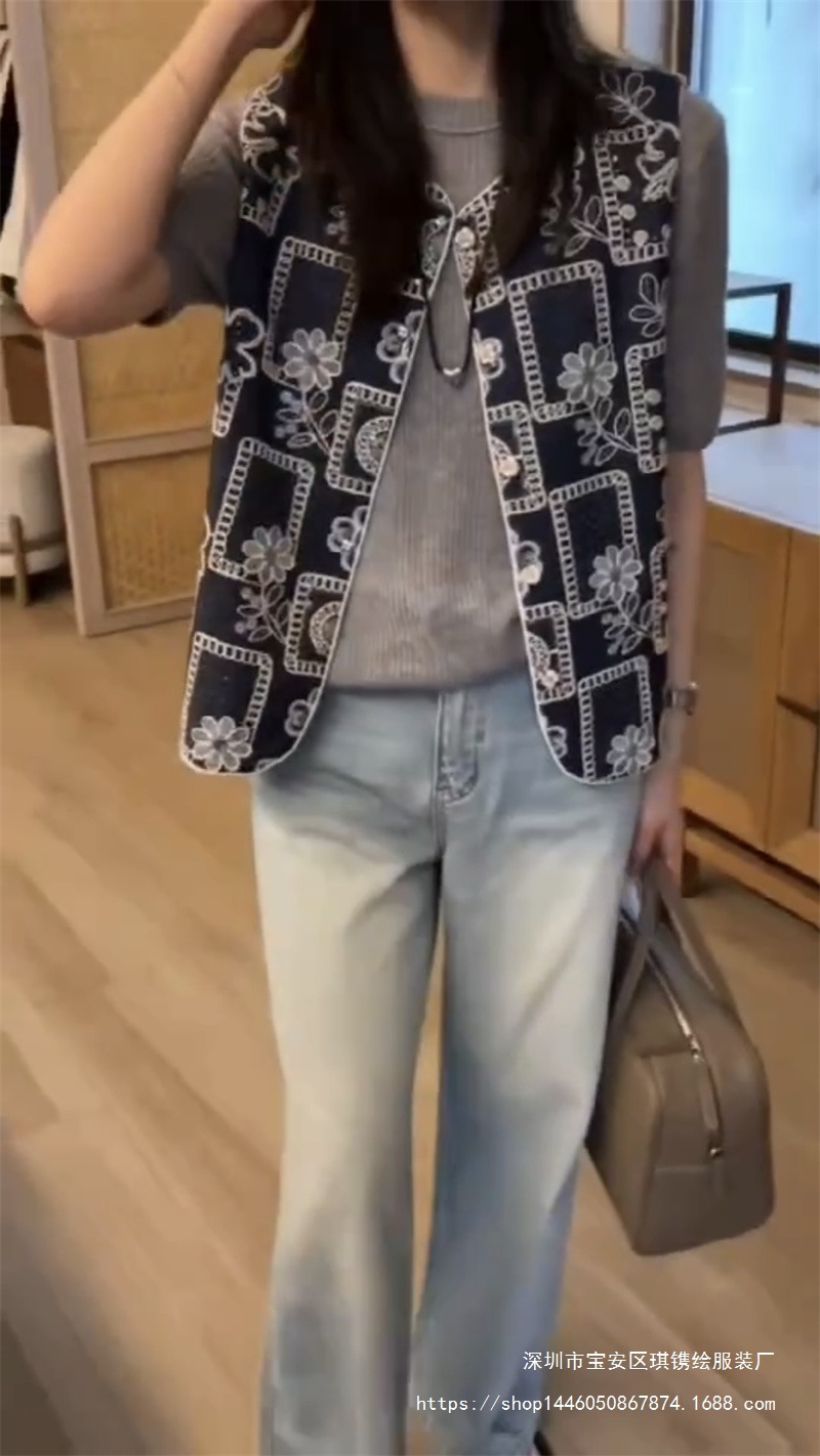 Qi는 중공업 데님 자수 꽃 조끼 재킷 코트 여성의 새로운 중국 스타일 국가 스타일 외부 물결 조끼 그리기