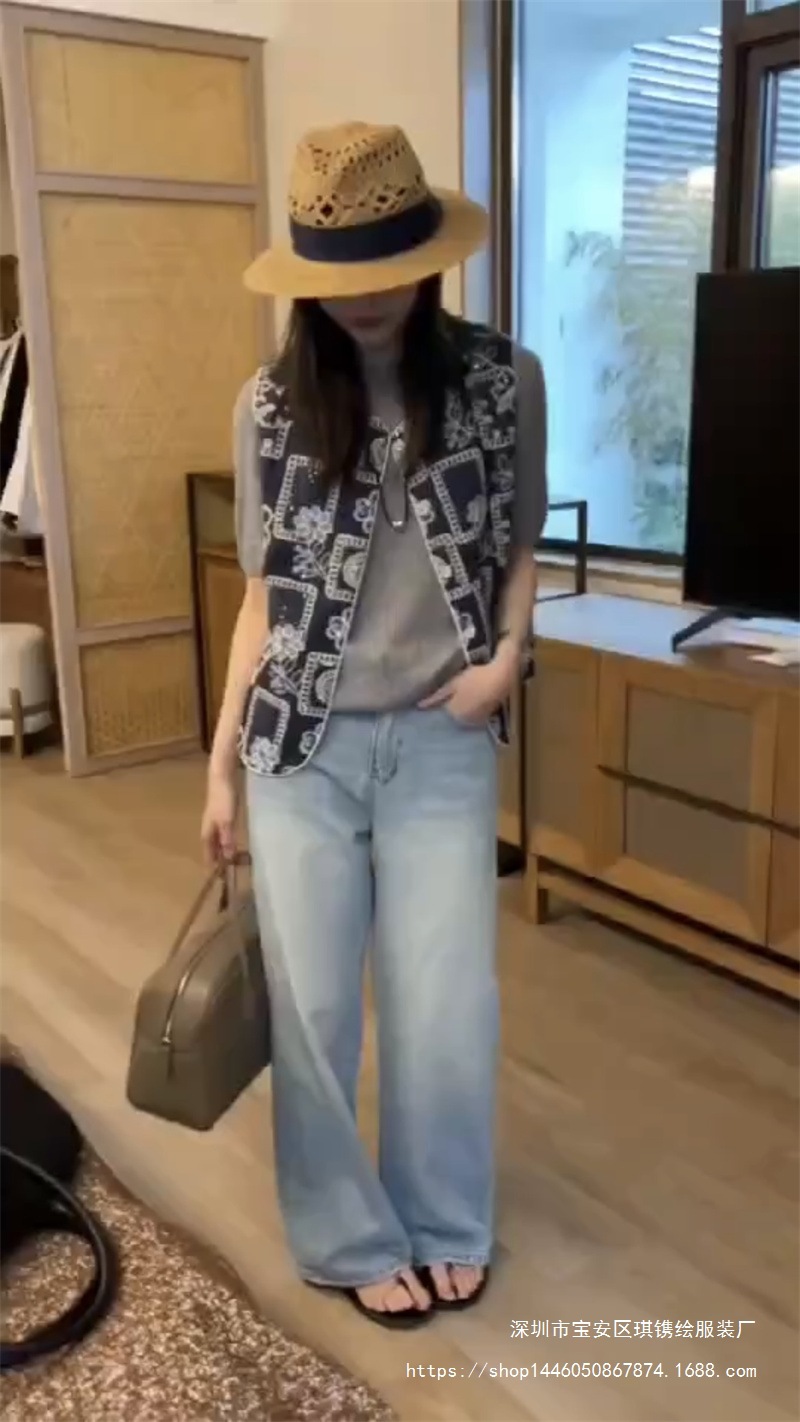 Qi는 중공업 데님 자수 꽃 조끼 재킷 코트 여성의 새로운 중국 스타일 국가 스타일 외부 물결 조끼 그리기스토어 가기