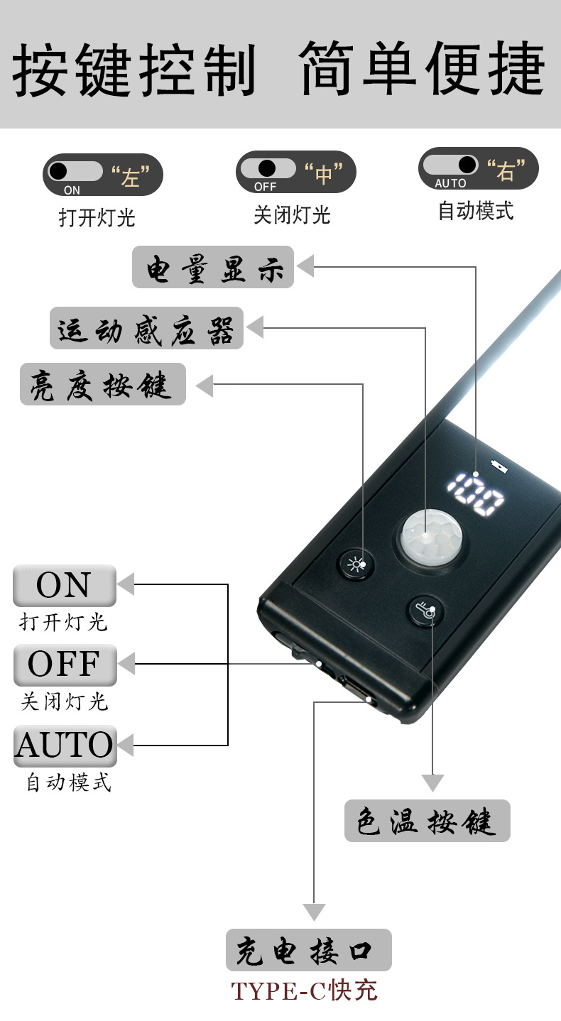 • [30CM 싱글 팩] 배터리 디스플레이 + 인체 유도 + 버튼 조정 + 3색 조명