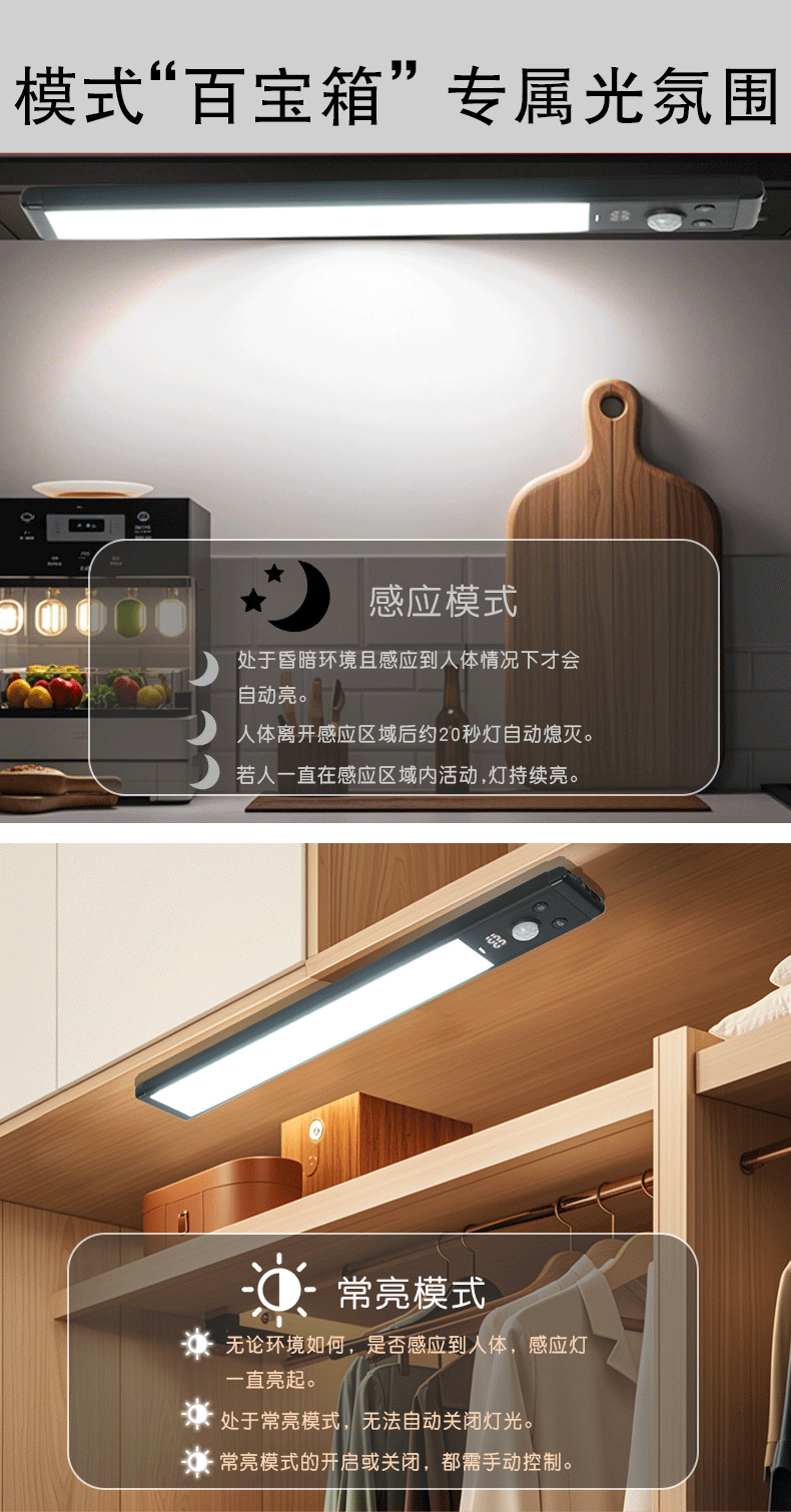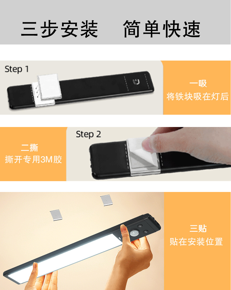 크로스보더 LED 인체감지 캐비닛 조명 USB 충전식 야간등 침실 테이블 램프 야외 조명 스트립 무타공 조명 테이프스토어 가기