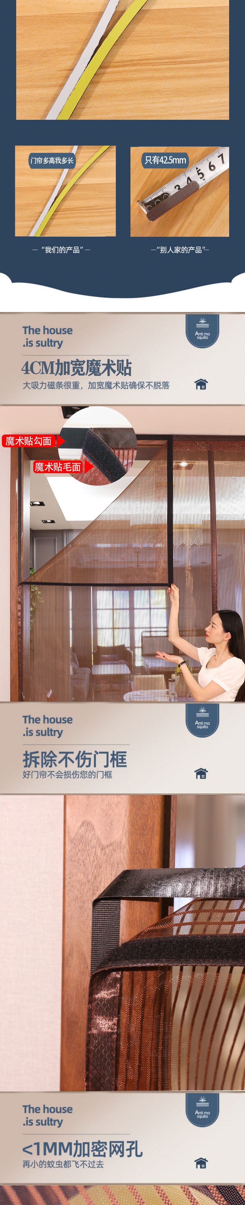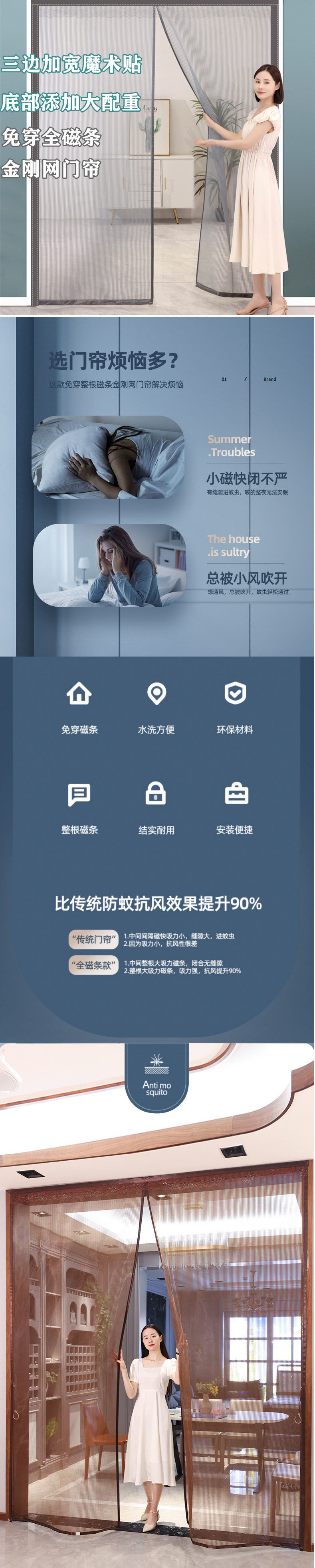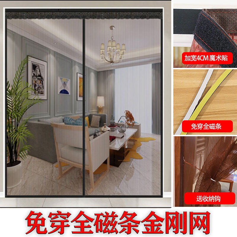 전체 마그네틱 스트립 벨크로 모기 방지 도어 커튼 모기장 스크린 도어 여름 비행 방지 스크린 창 가구 전체 파티션 자기 흡수 자기 스트립스토어 가기