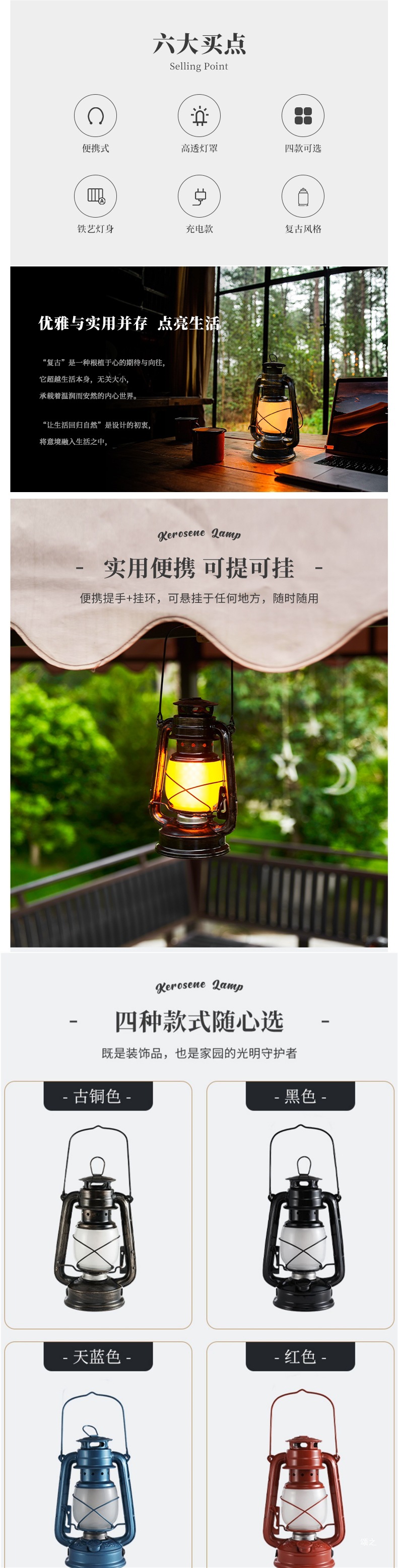 야외 충전 복고풍 랜턴 캠프 캠핑 분위기 등유 휴대용 마구간 텐트 램프 장식 불꽃스토어 가기