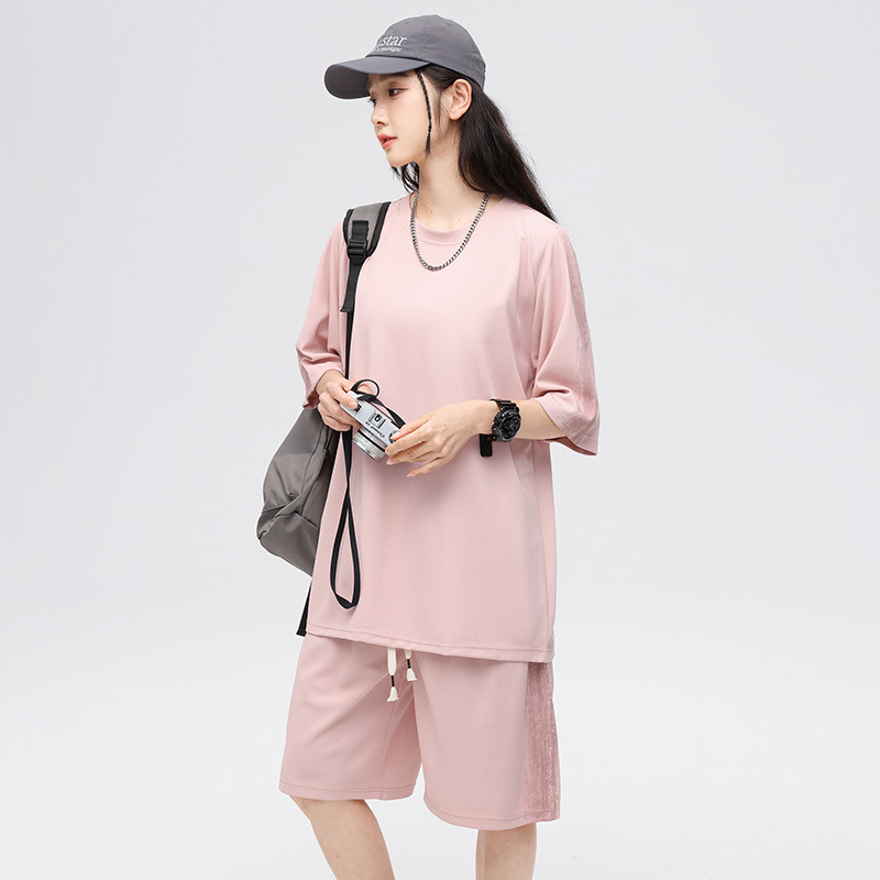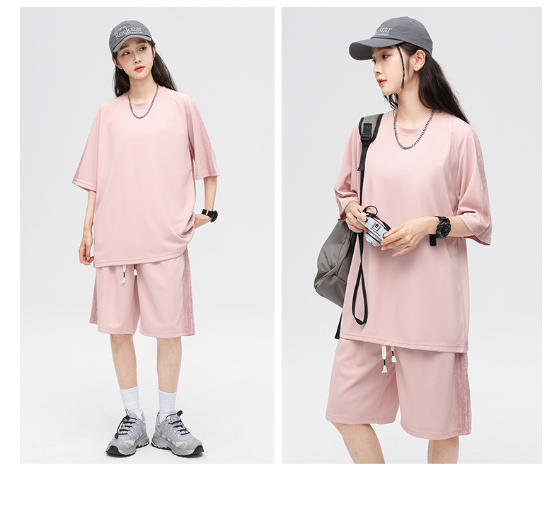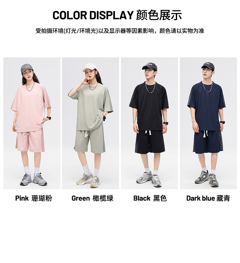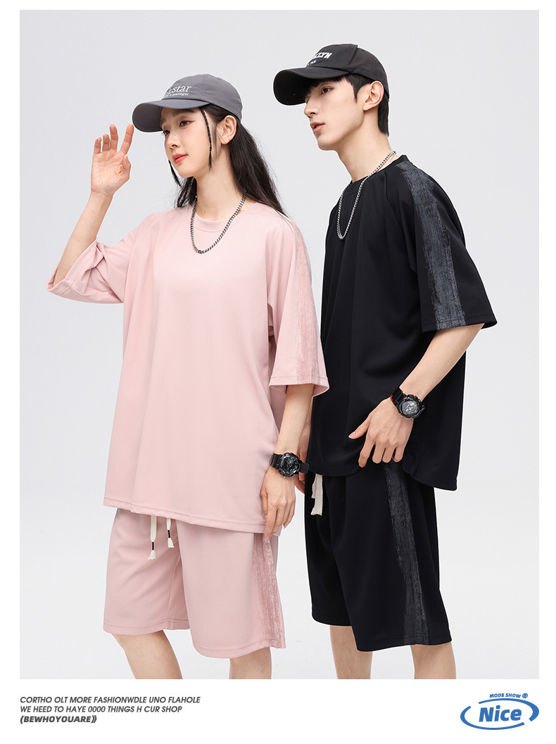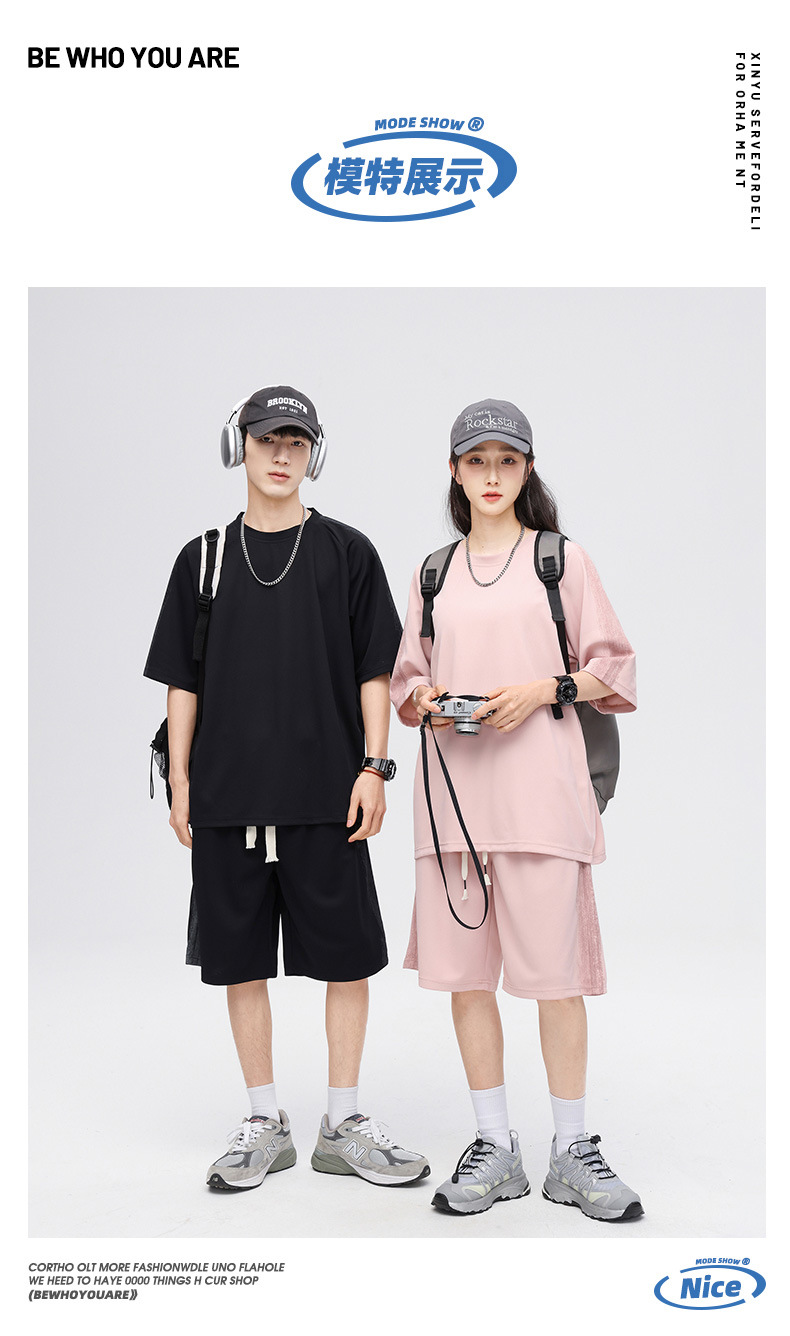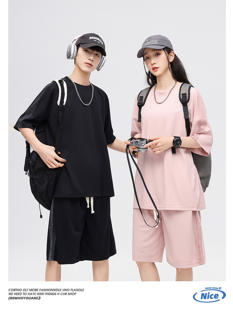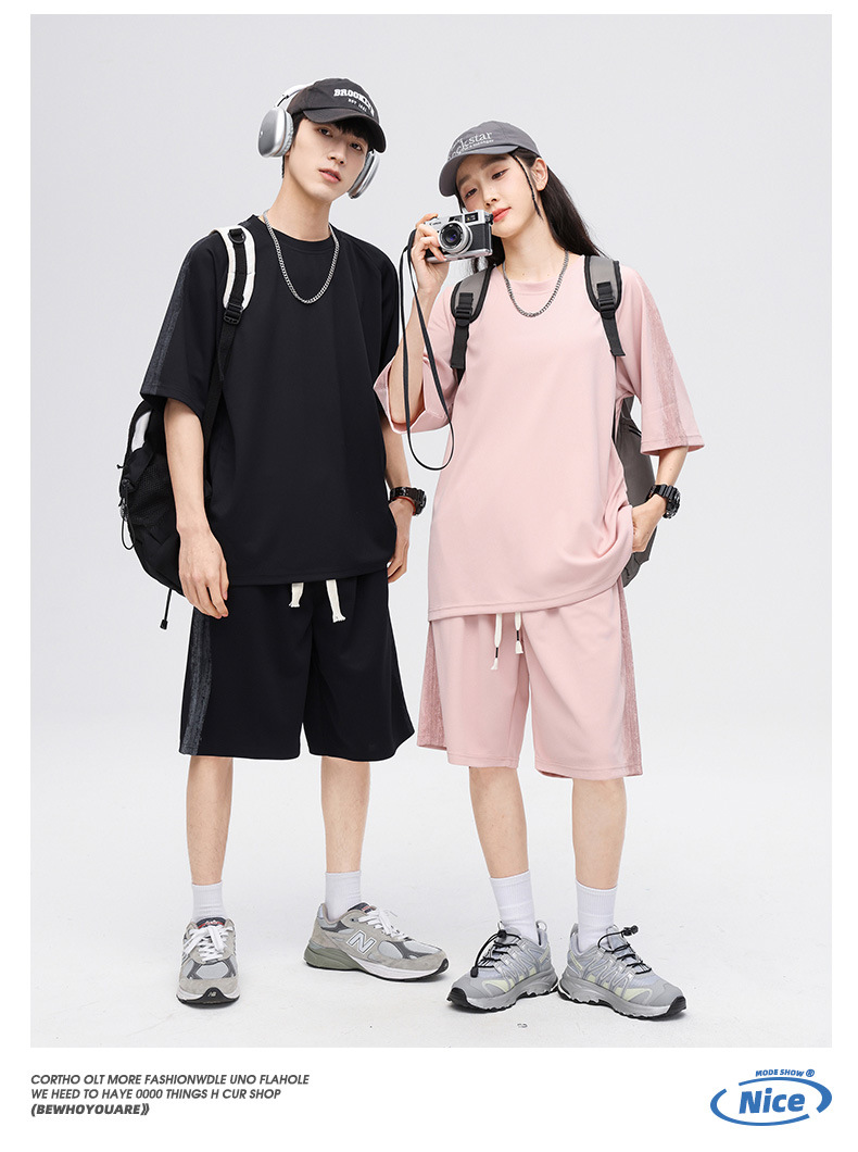 트렌디 한 브랜드 반팔 티셔츠 세트 남성 여름 아이스 실크 캐주얼 니트 세척 탄성 빠른 건조 남성 반바지 투피스 세트스토어 가기