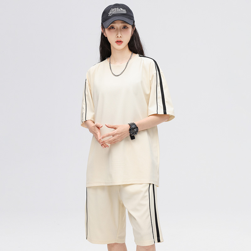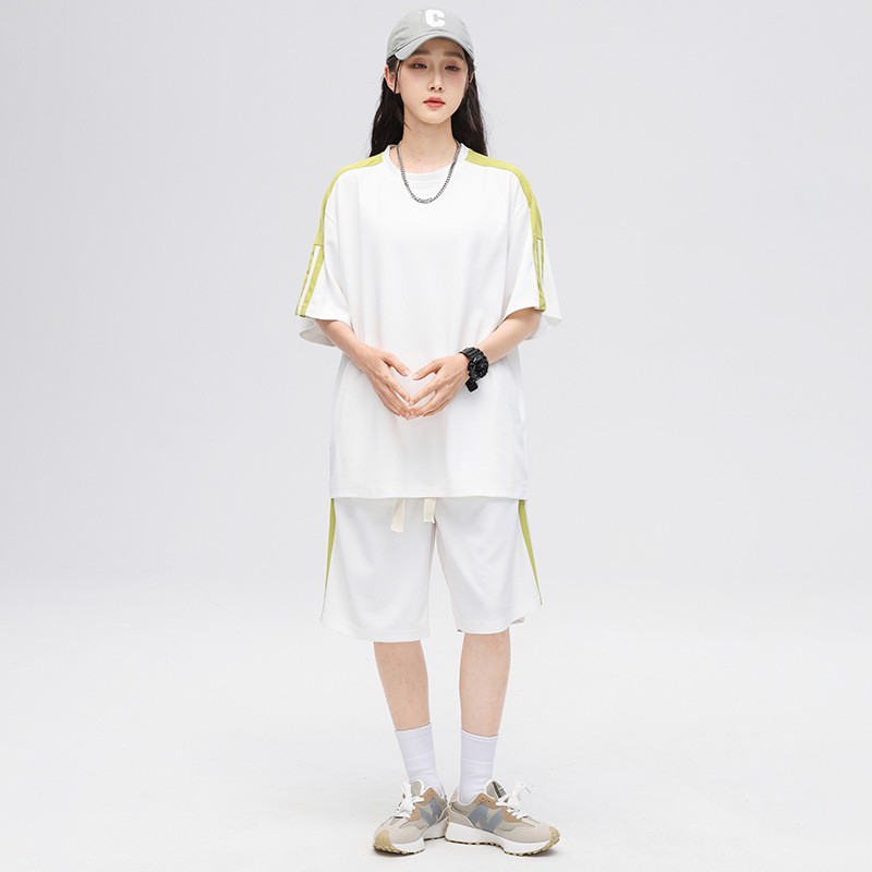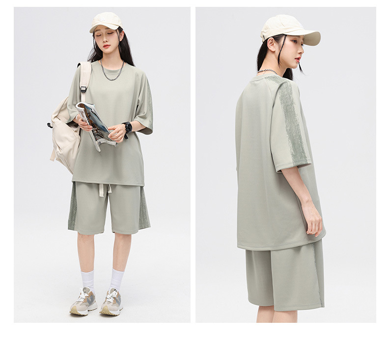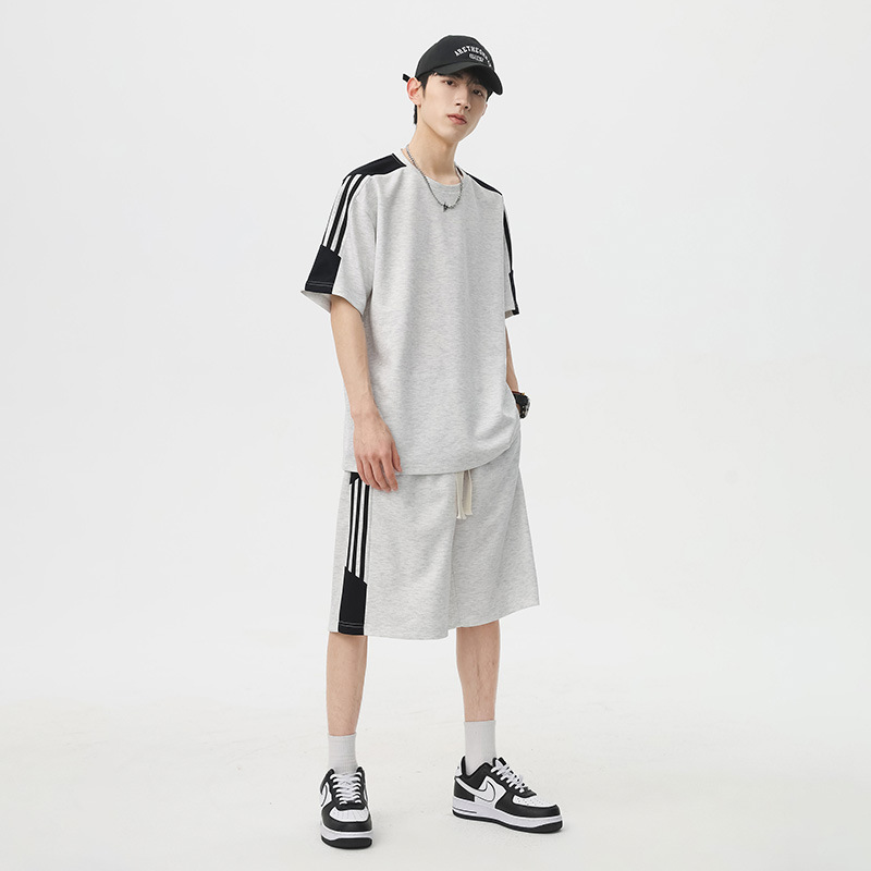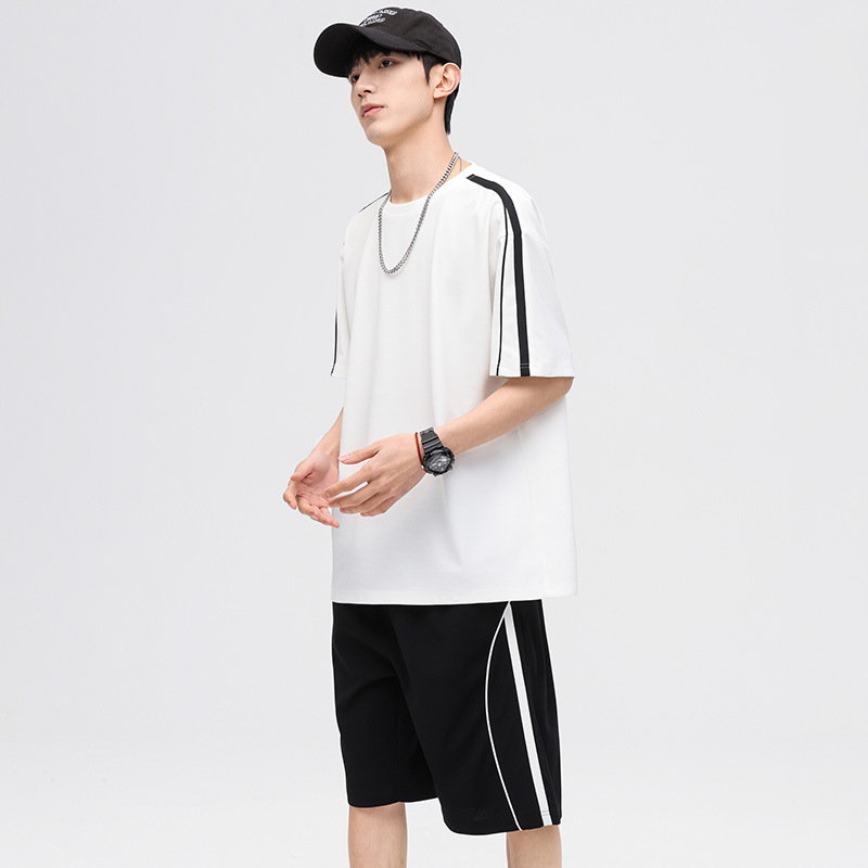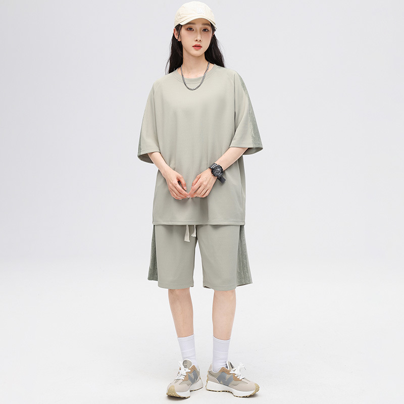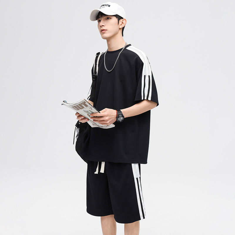 트렌디 한 브랜드 반팔 티셔츠 세트 남성 여름 아이스 실크 캐주얼 니트 세척 탄성 빠른 건조 남성 반바지 투피스 세트