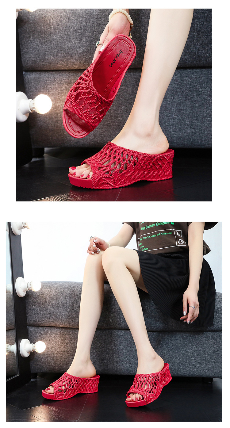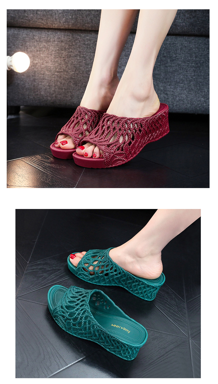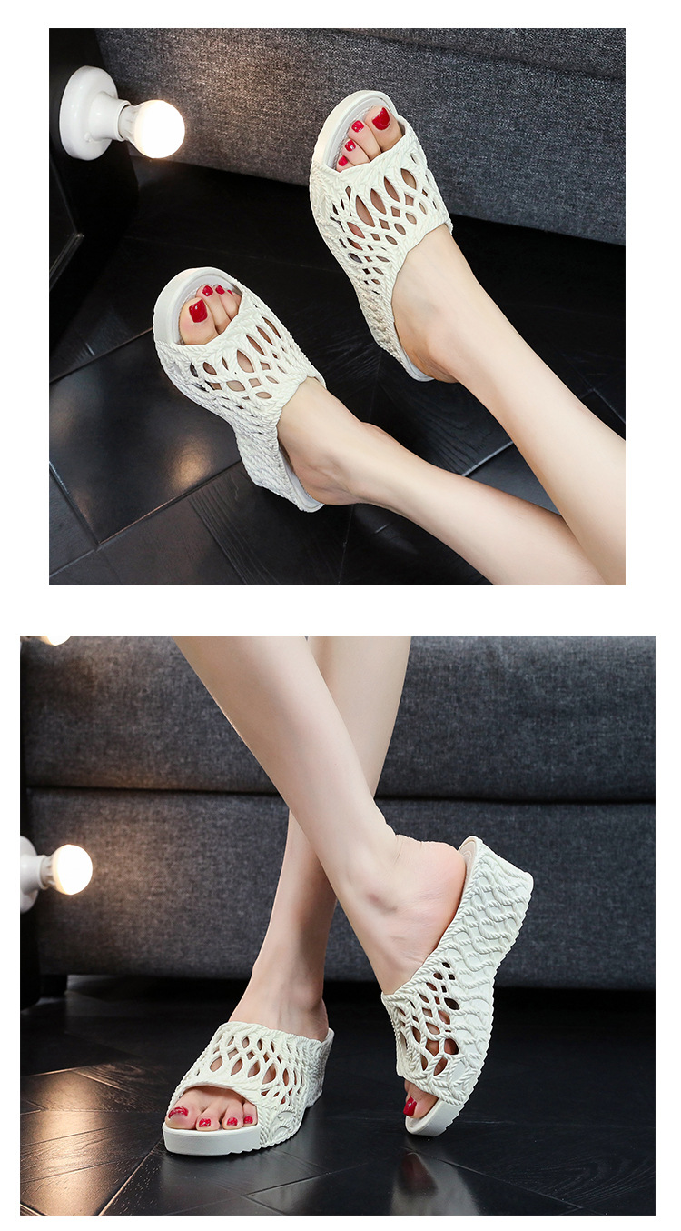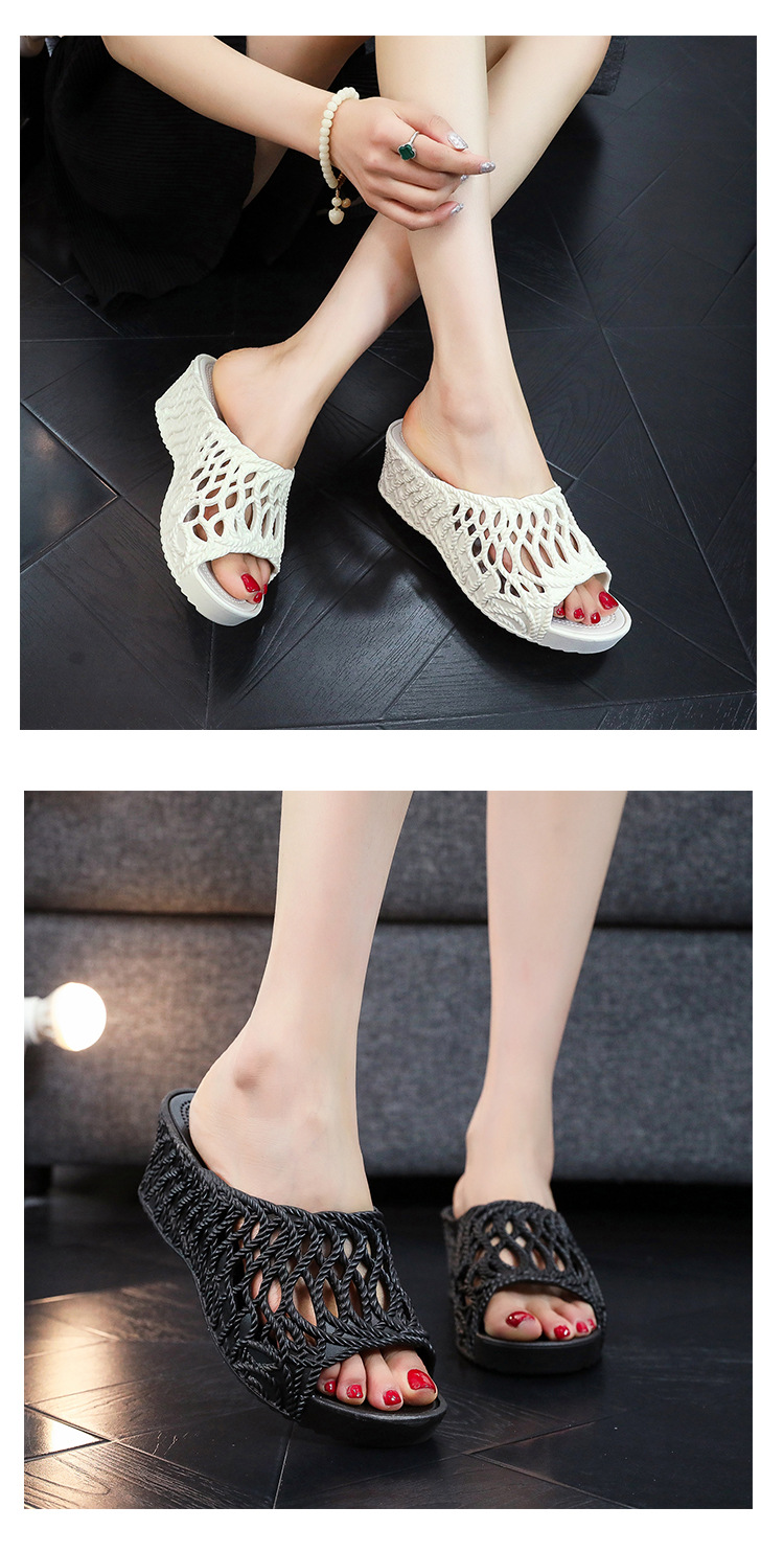 두꺼운 슬리퍼 여자 2025 새로운 패션 올 매치 여름 할로우 아웃 하이 슬립 편안한 샌들스토어 가기
