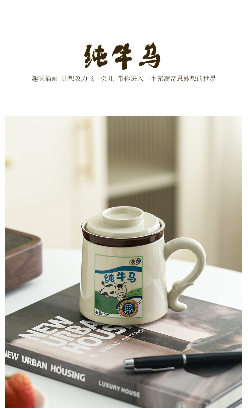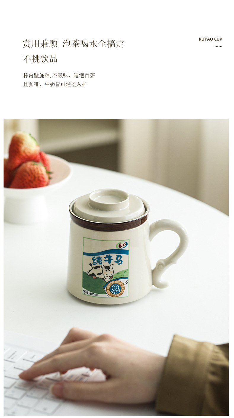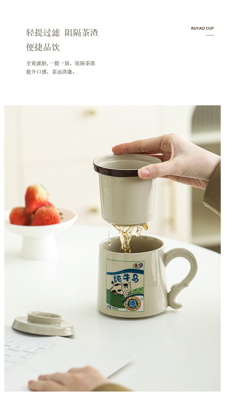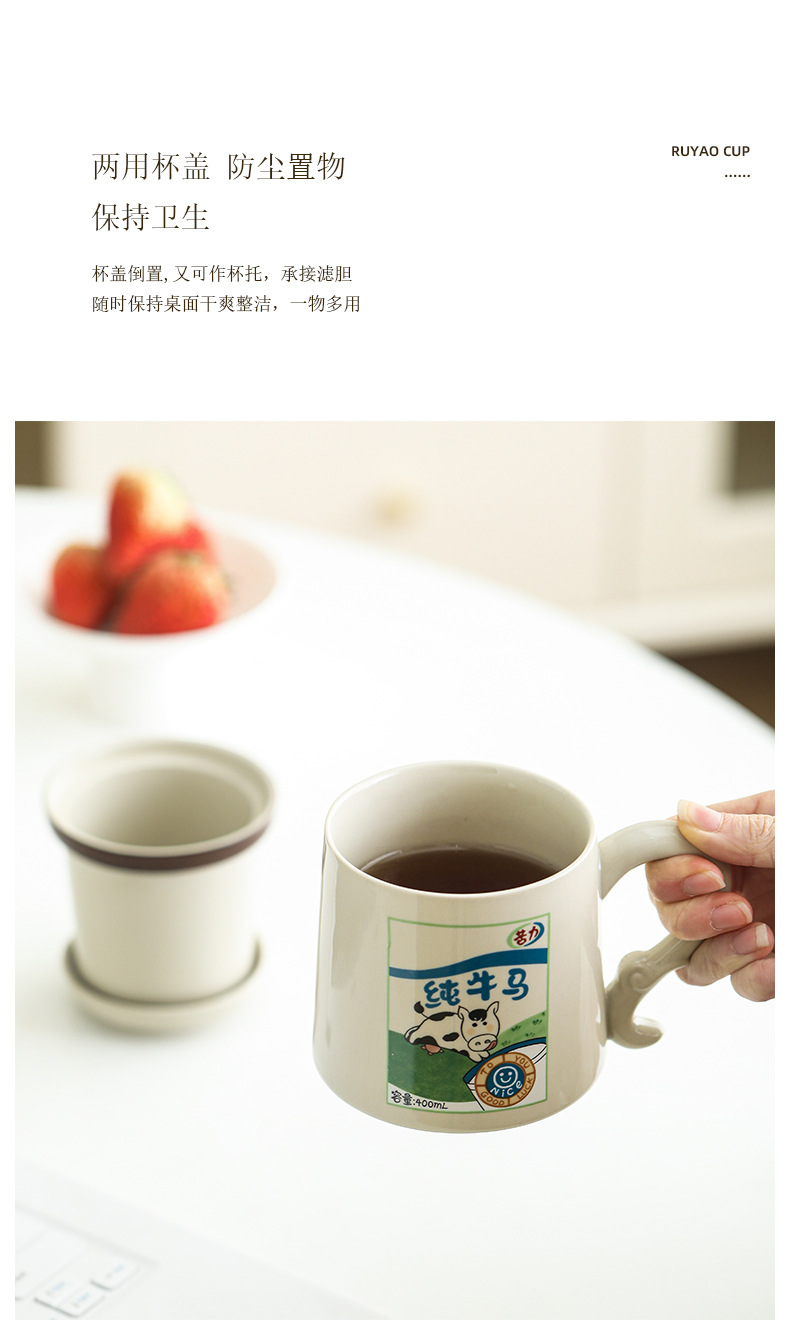 Ru Kiln 순수한 소와 말 차 컵 사무실 대용량 창조적 인 세라믹 찐 차 컵 마시는 컵스토어 가기
