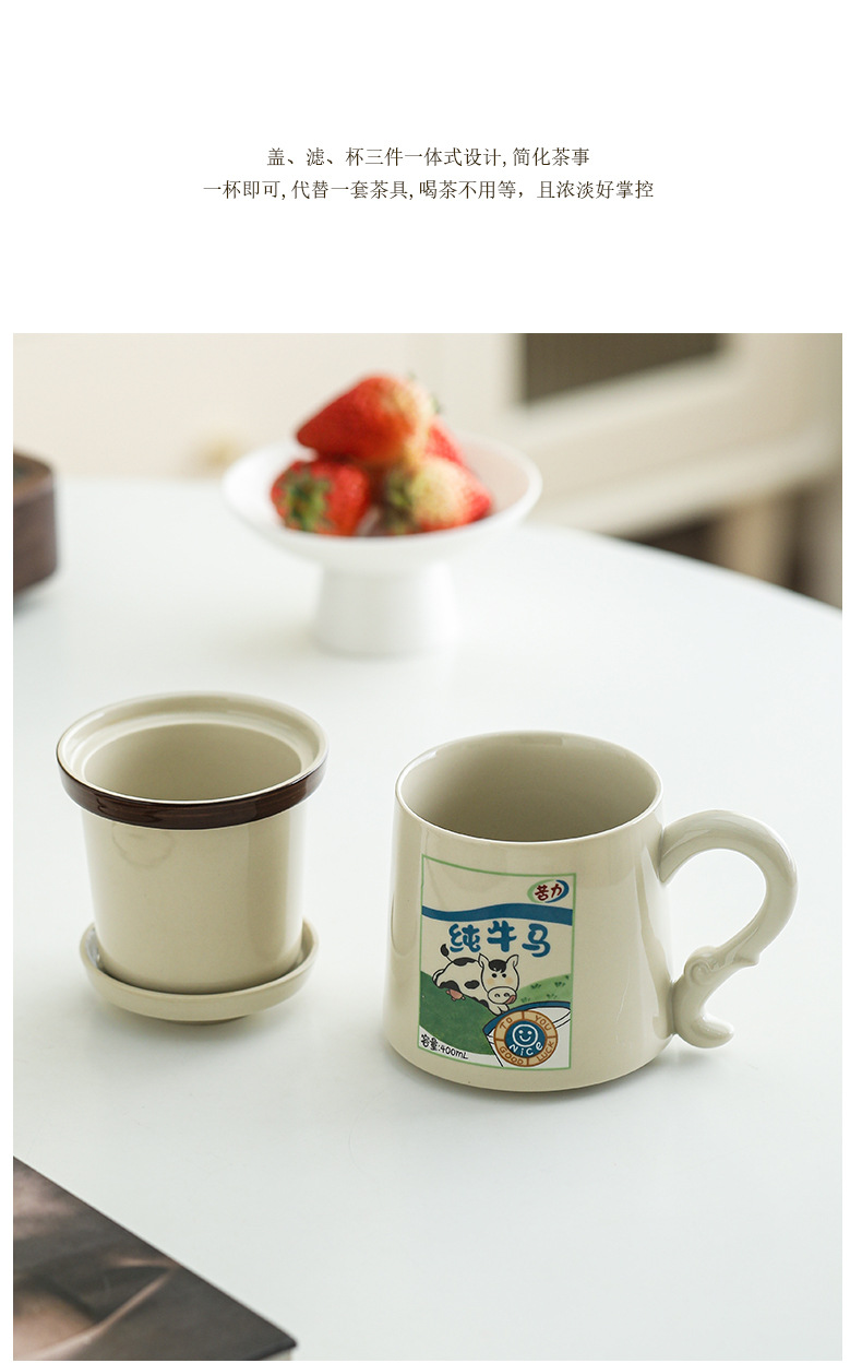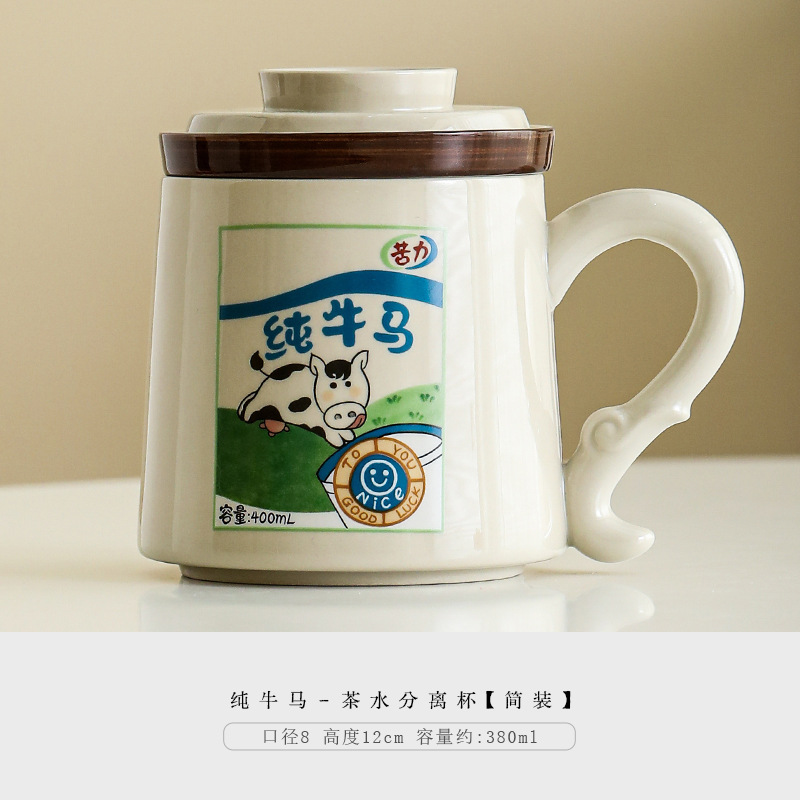 Ru Kiln 순수한 소와 말 차 컵 사무실 대용량 창조적 인 세라믹 찐 차 컵 마시는 컵