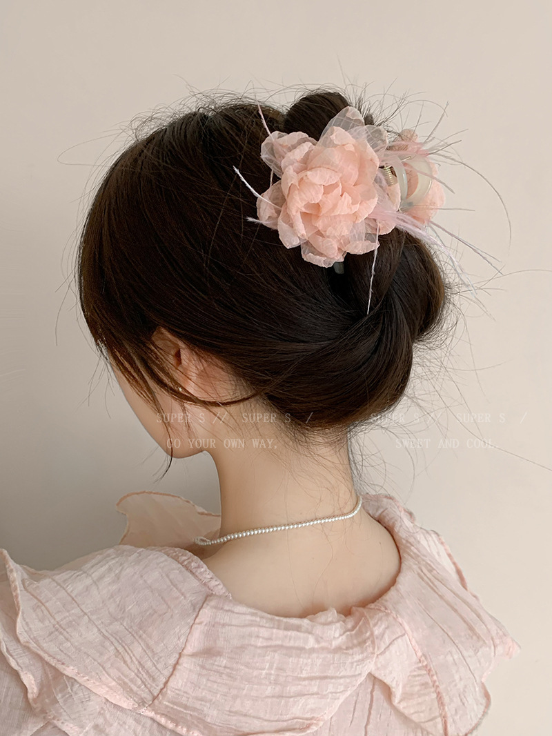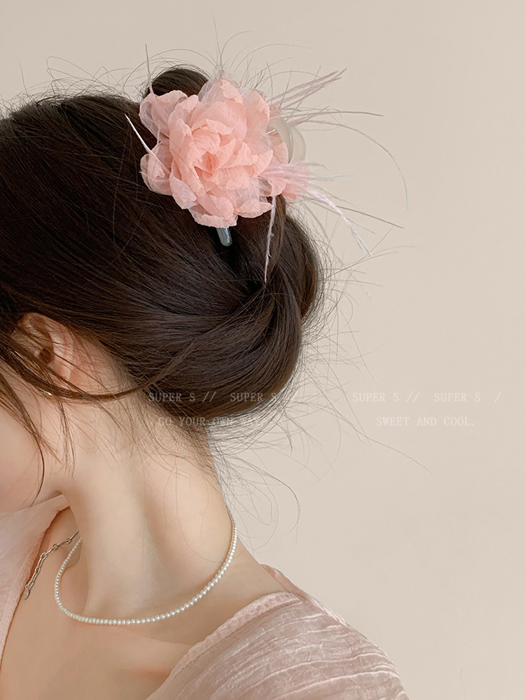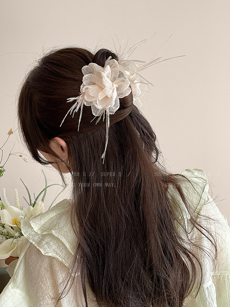 2025 봄 레이스 메쉬 꽃 깃털 클립 여성의 여름 신선한 상어 클립 우아한 올 매치 헤드웨어 헤드 플라워